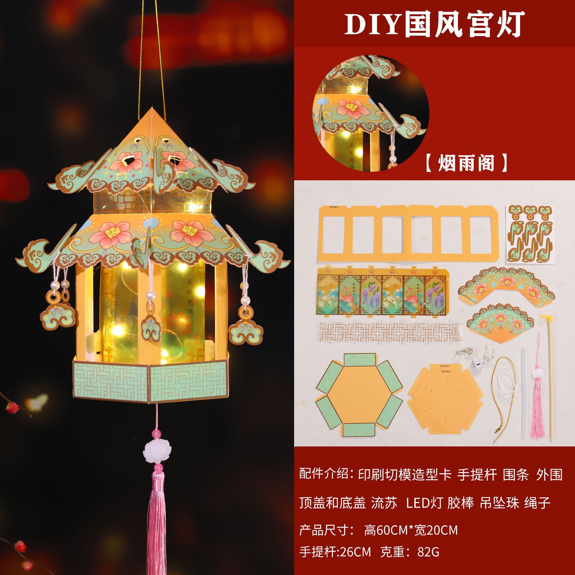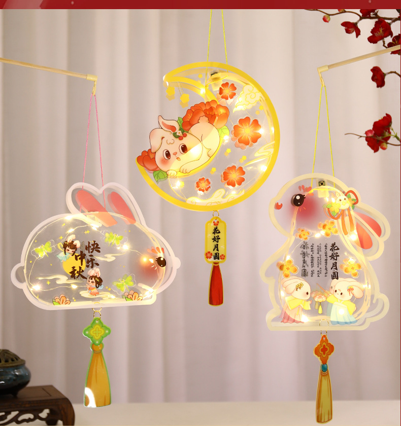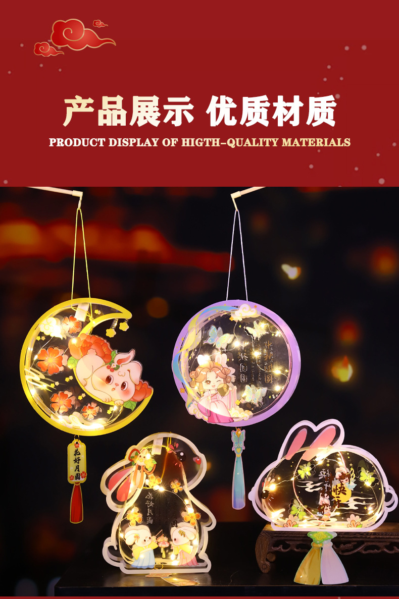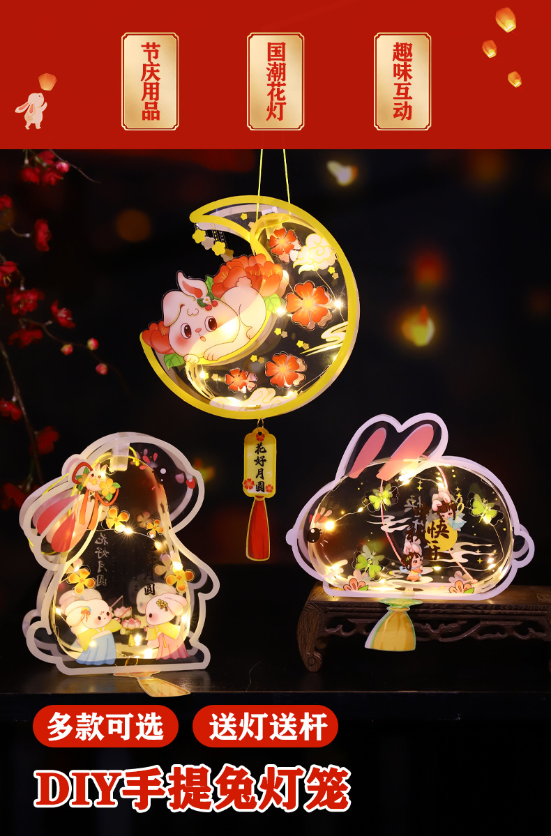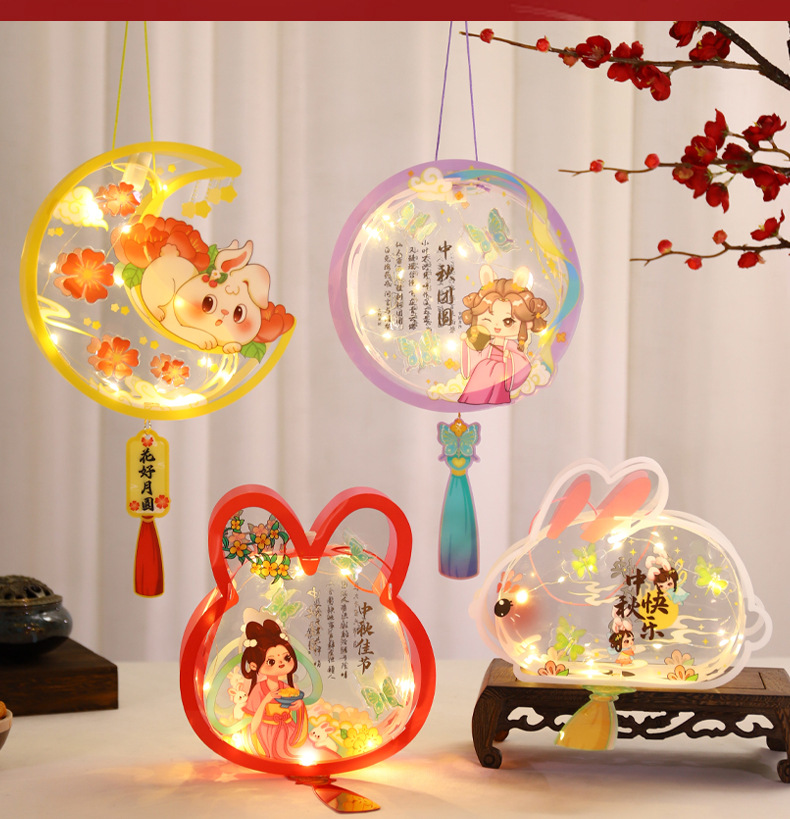 中秋节灯笼儿童手提灯笼diy材料包中秋节花灯宫灯走马灯兔子灯笼
