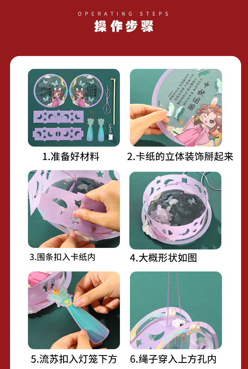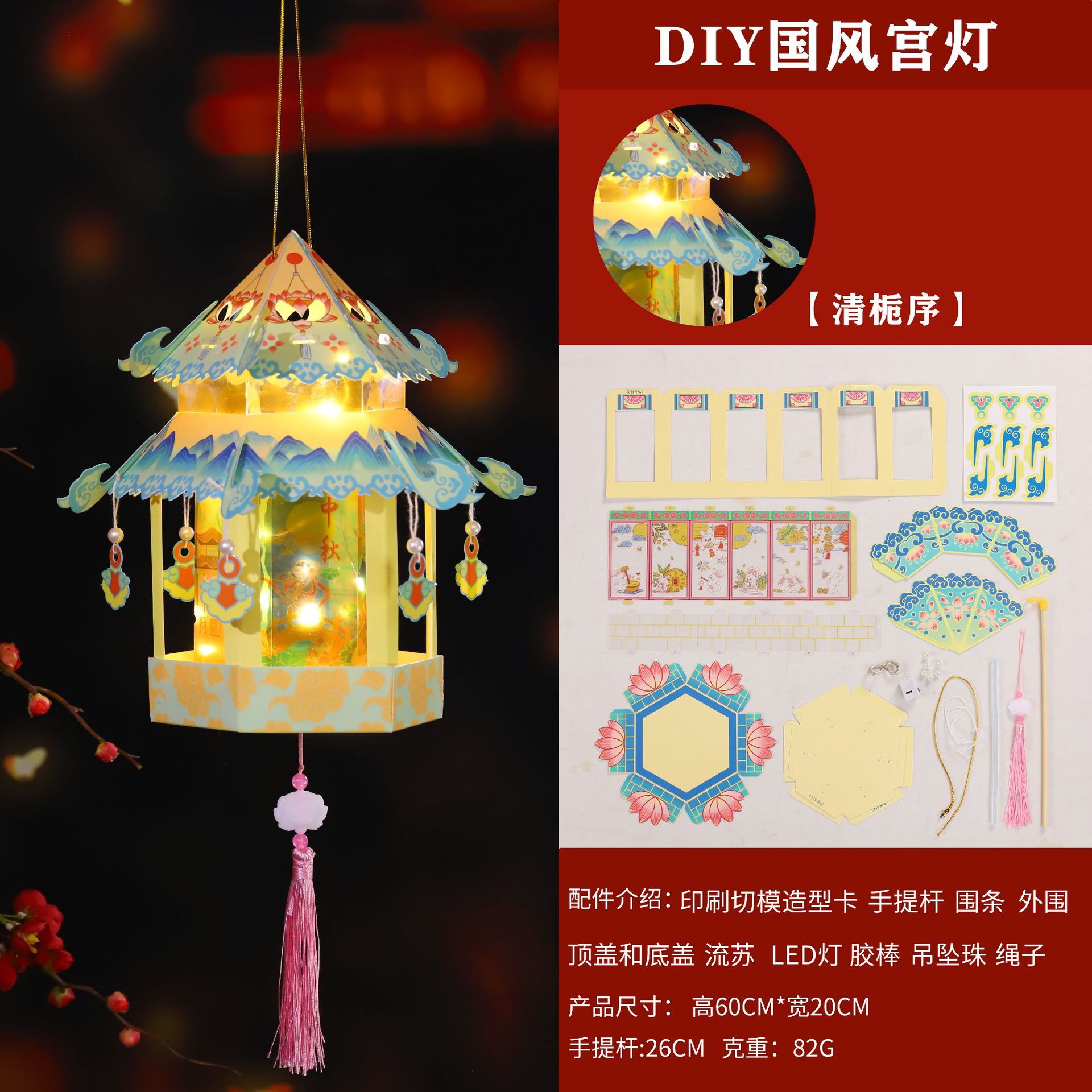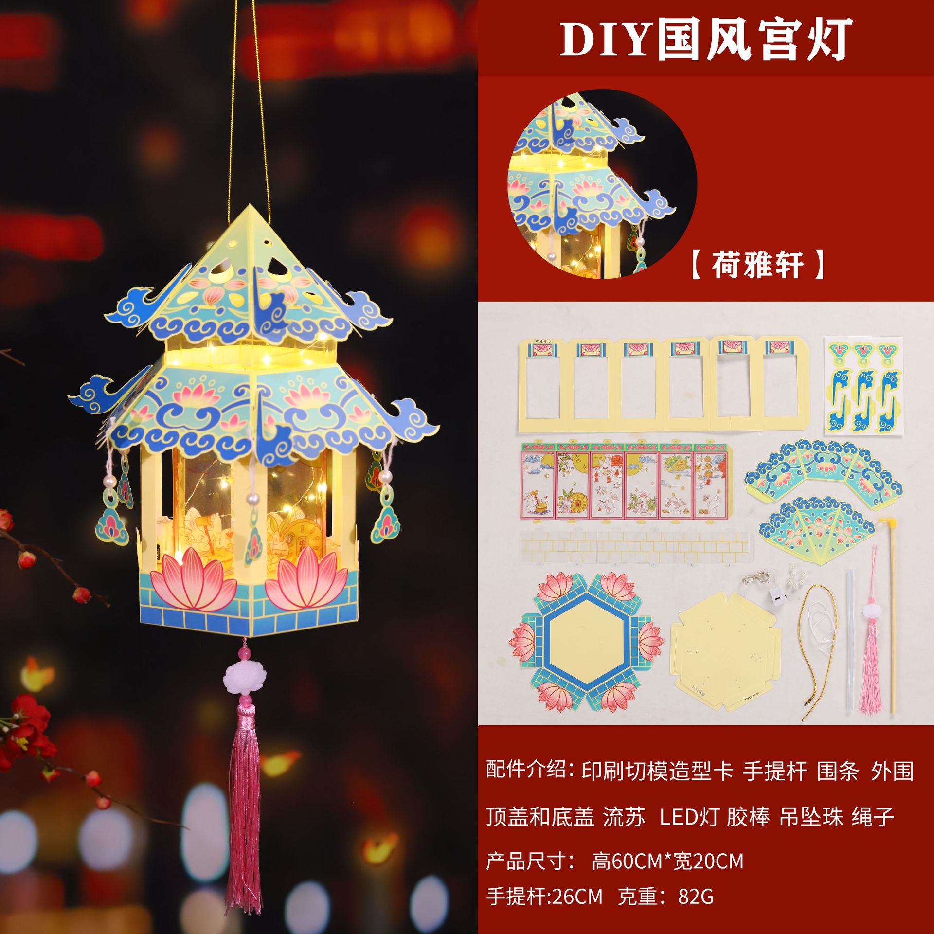中秋节灯笼儿童手提灯笼diy材料包中秋节花灯宫灯走马灯兔子灯笼