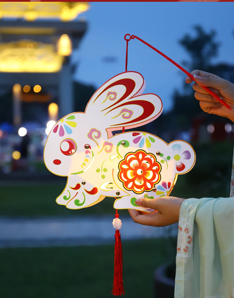 中秋节灯笼儿童diy制作材料包兔子灯笼幼儿园手提发光花灯纸灯笼