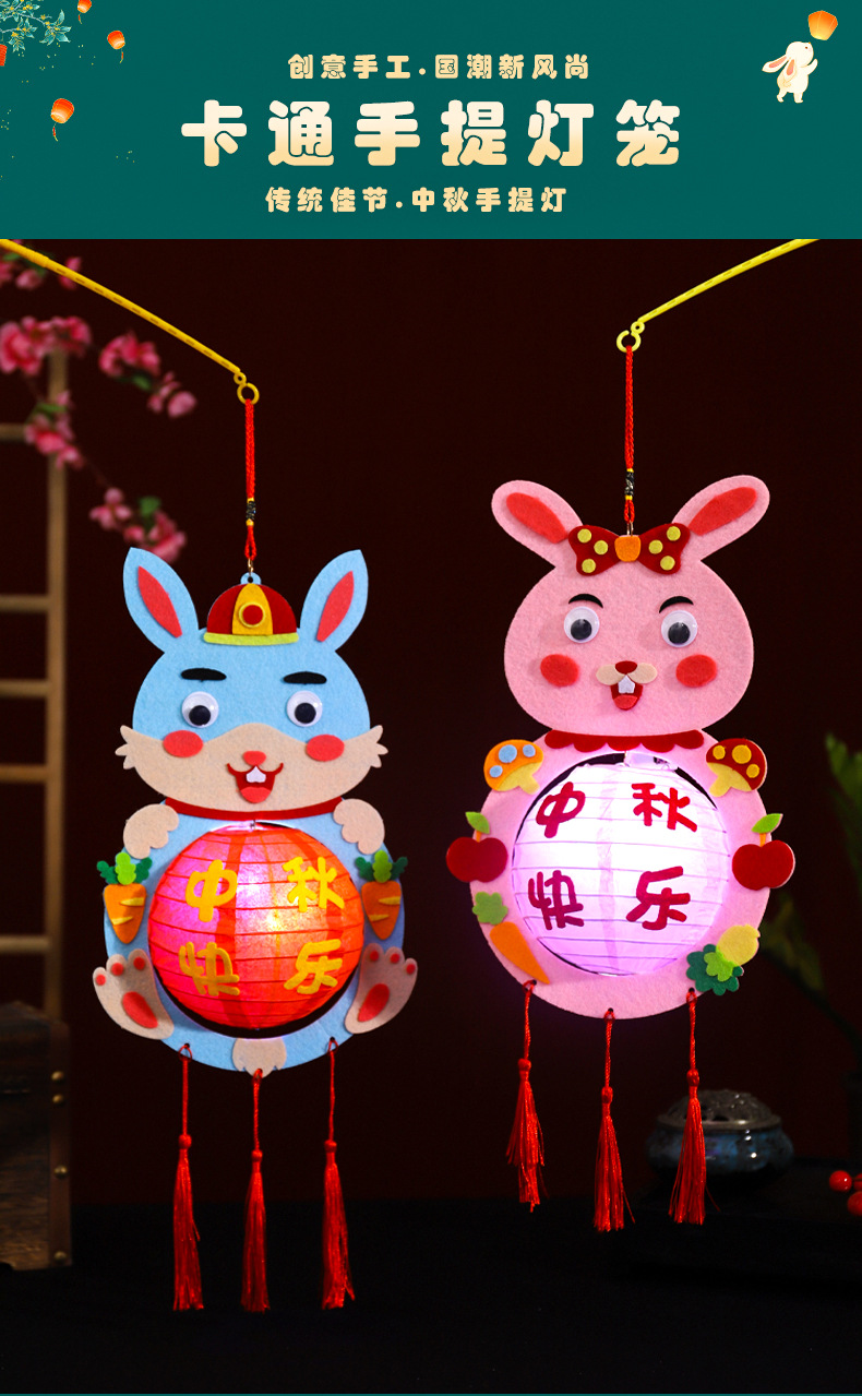 中秋节灯笼儿童发光卡通手工diy材料包手提灯笼幼儿园跳舞蹈花灯
