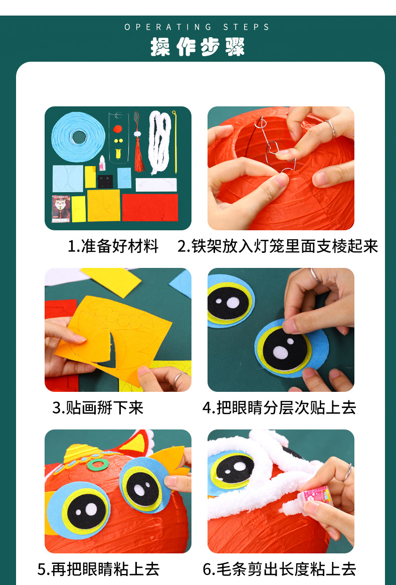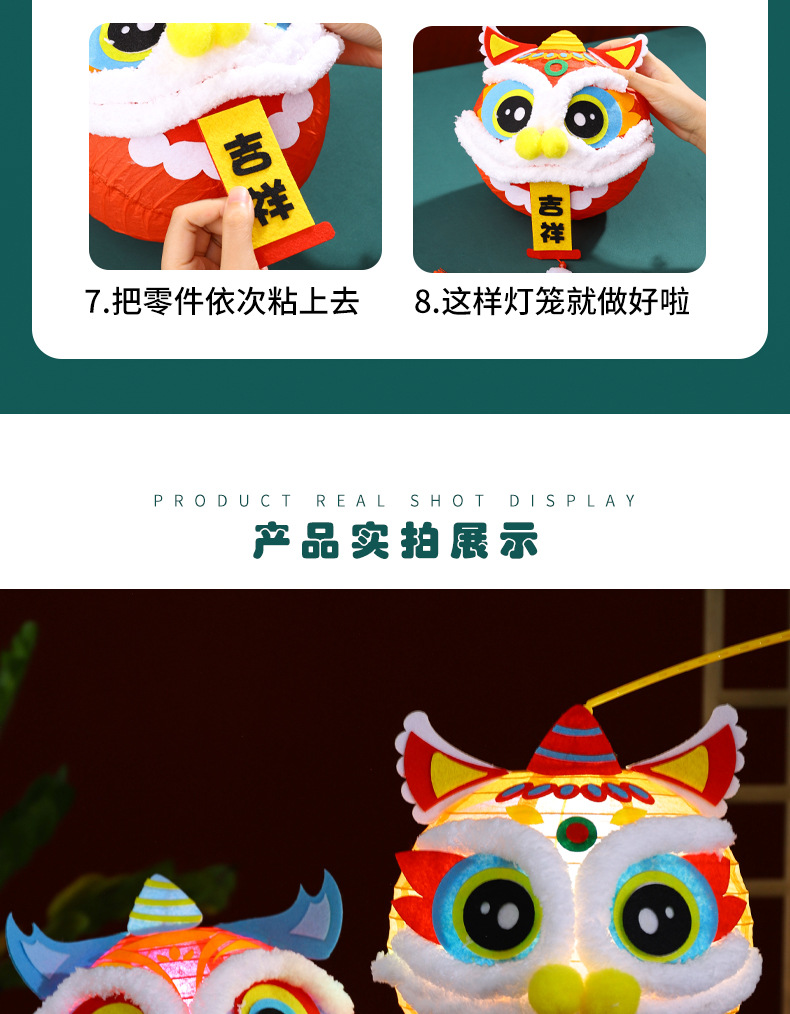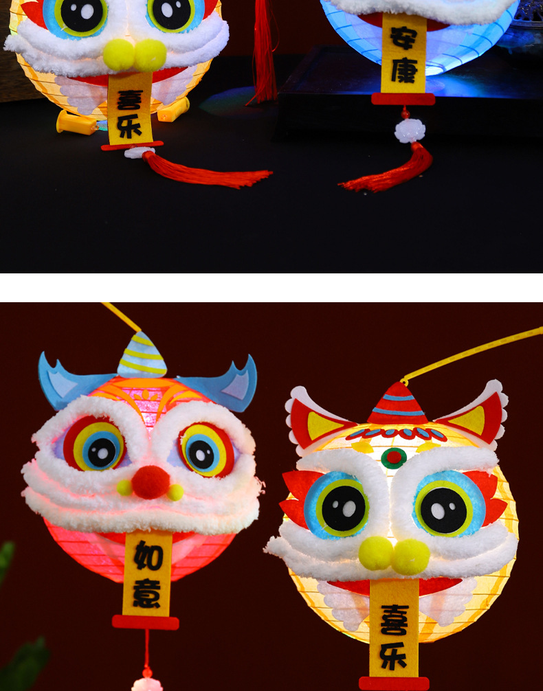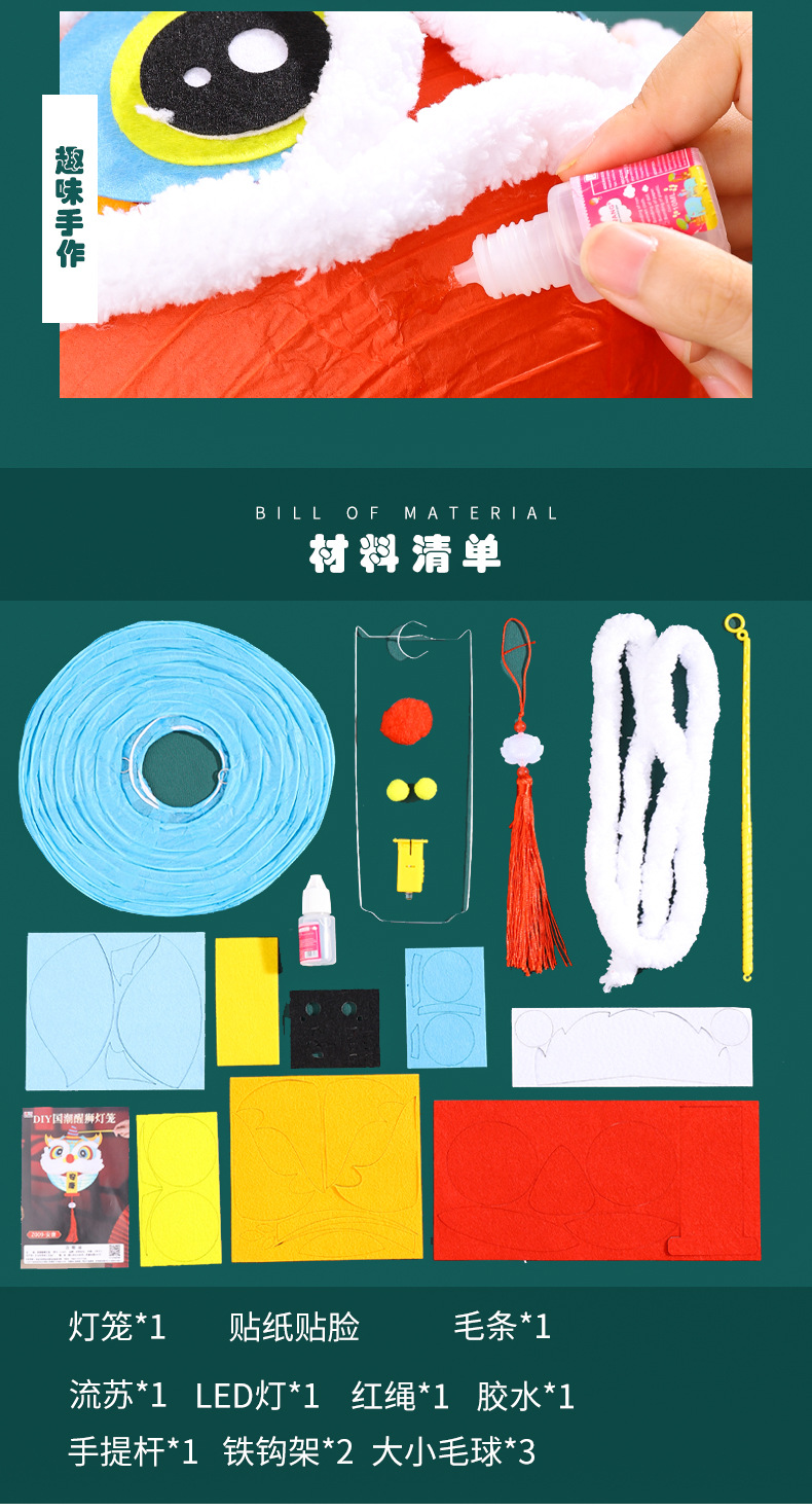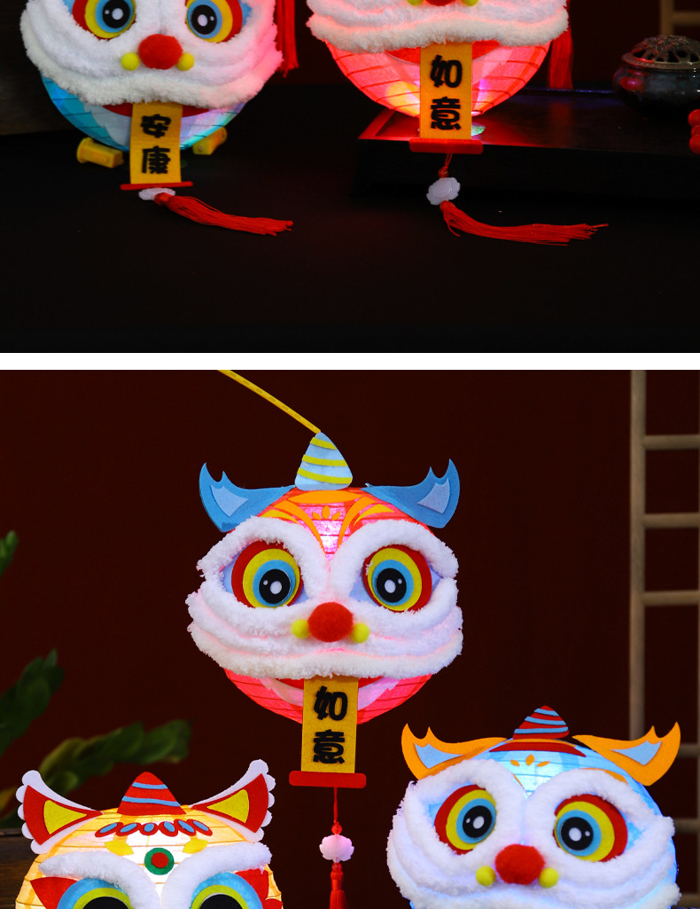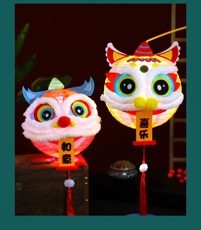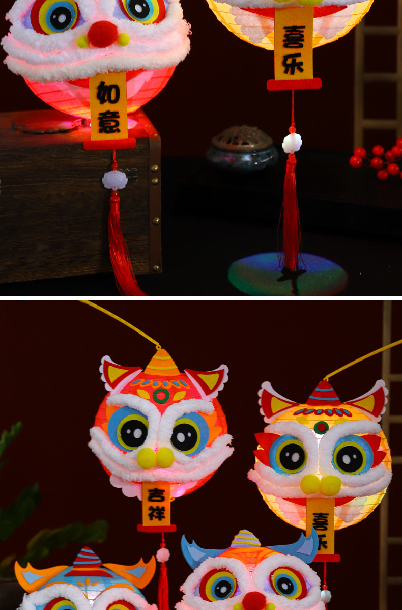 龙年新年灯笼卡通灯笼手工制作diy材料包幼儿园儿童手提发光花灯
