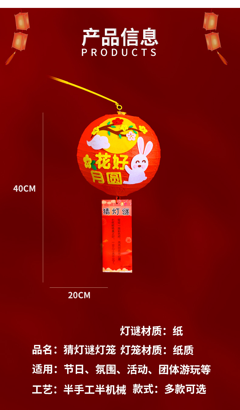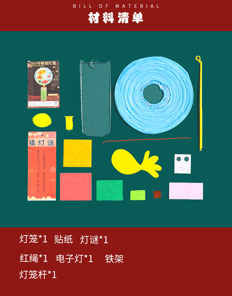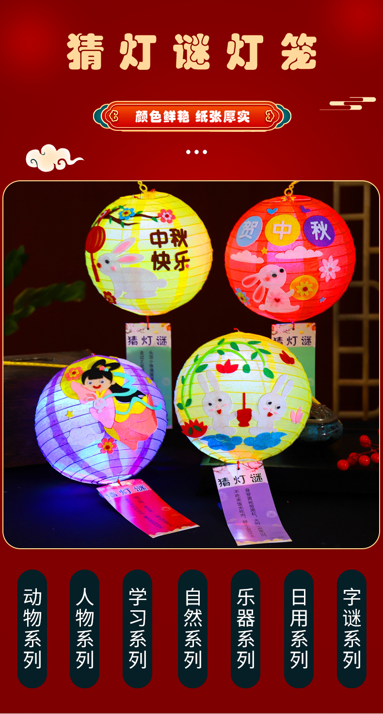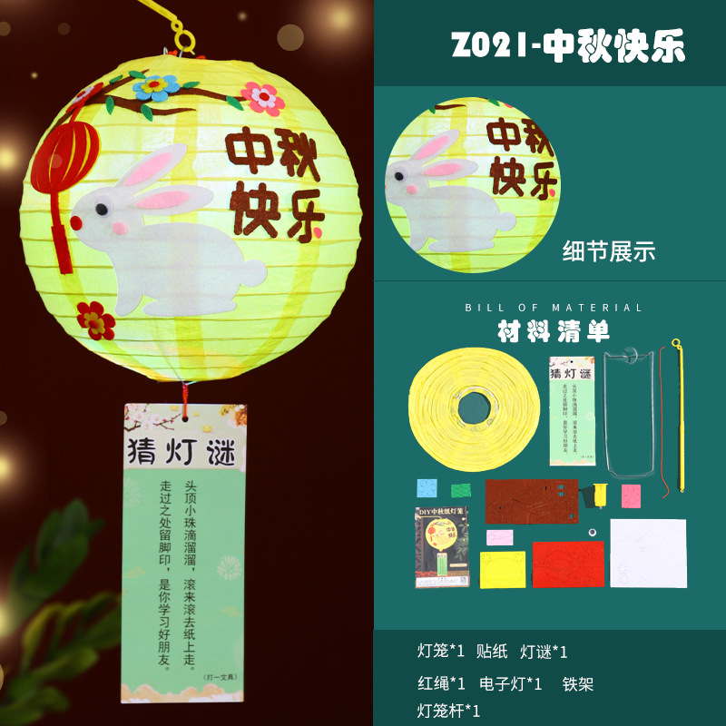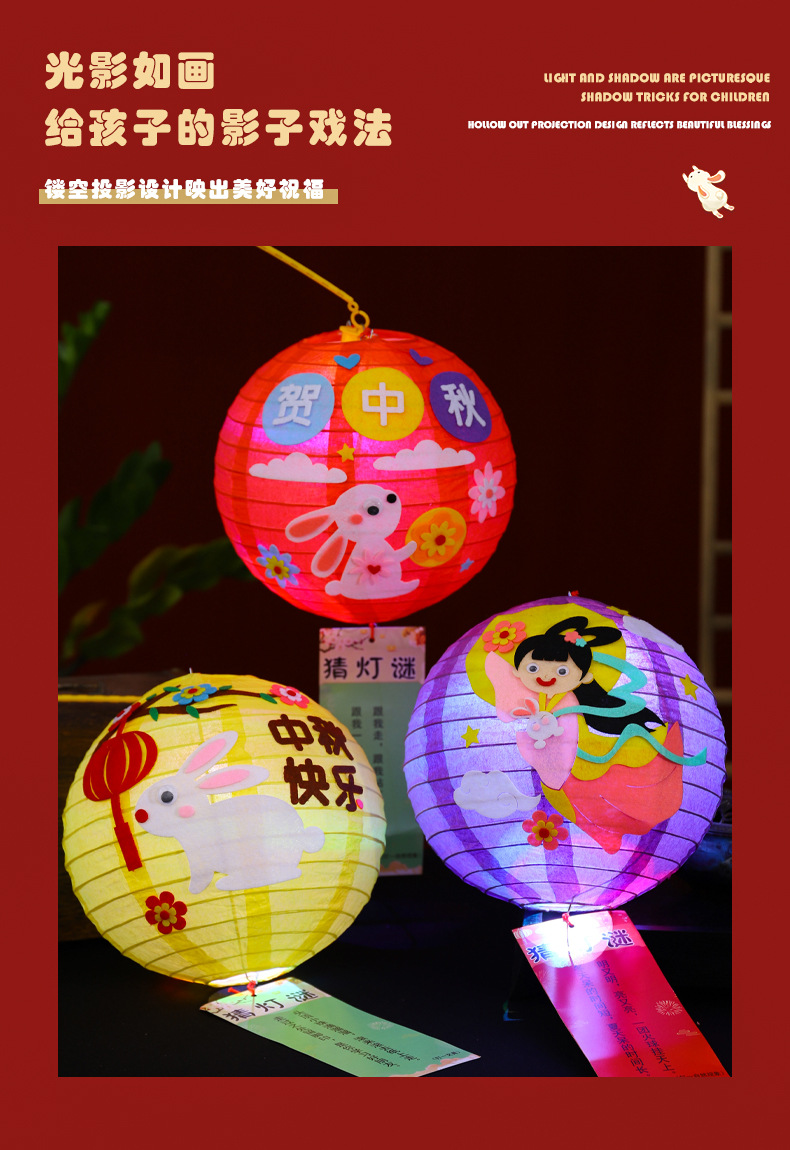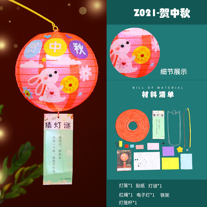 中秋节灯笼小兔子花灯幼儿园灯笼手工diy制作材料包中秋手提灯笼