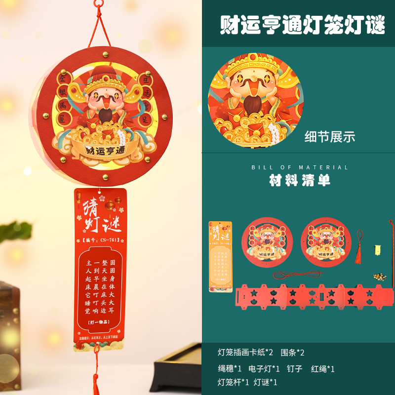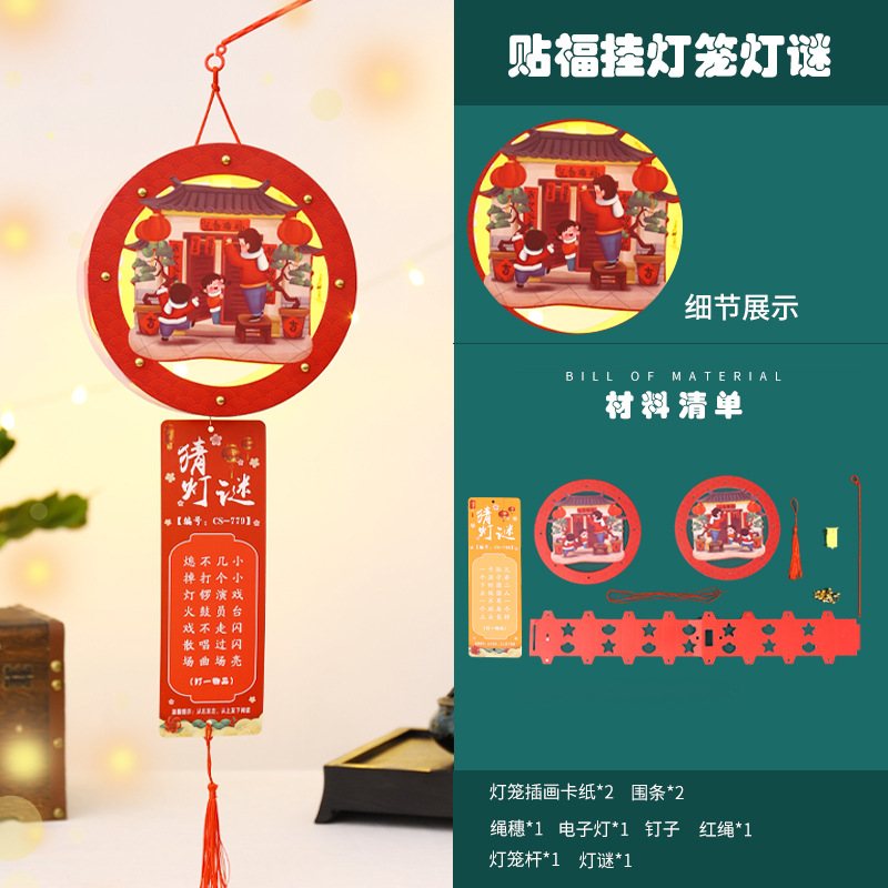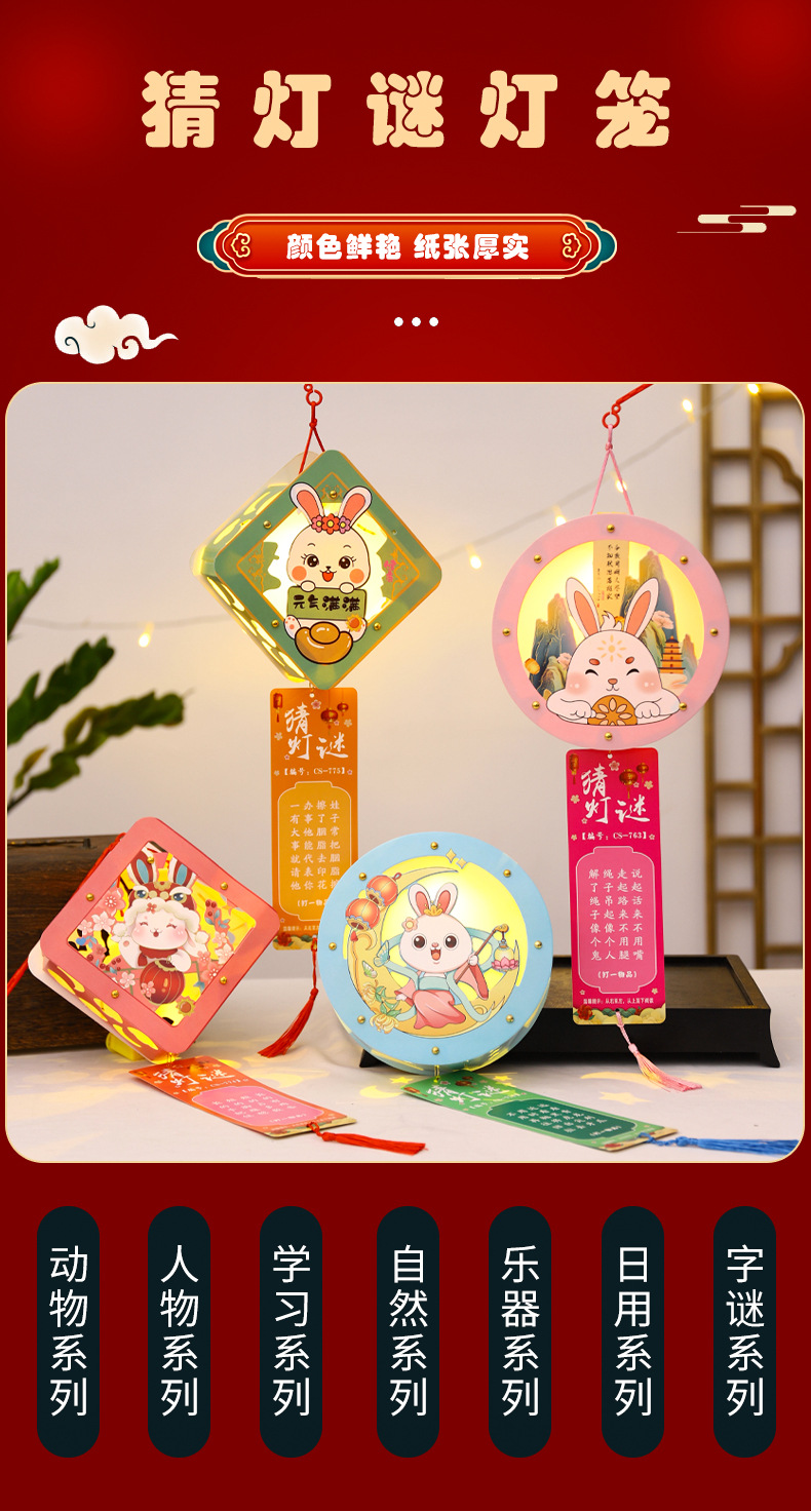 中秋节灯笼猜灯谜兔子灯笼手工diy材料包儿童手提发光纸灯笼宫灯