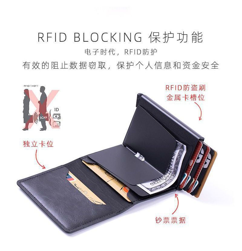 防盗刷RFID自动弹信用卡包铝合金属盒男士多卡位银包卡片套卡片夹