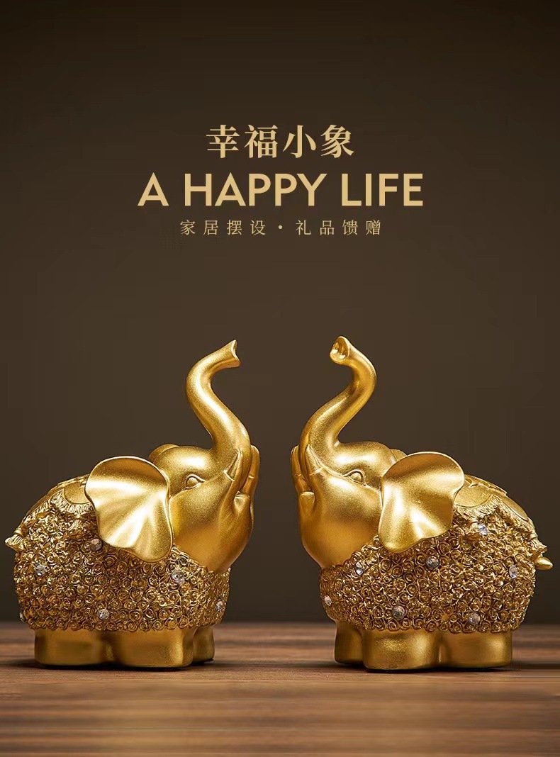 新中式大象摆件家居客厅玄关装饰树脂工艺品摆设乔迁开业礼物