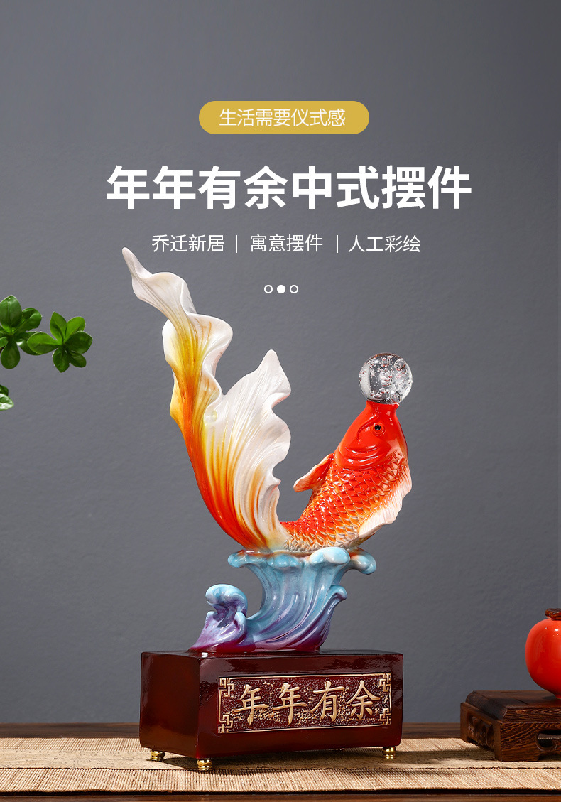 新中式年年有鱼锦鲤摆件客厅玄关酒柜家居装饰品乔迁新居礼物