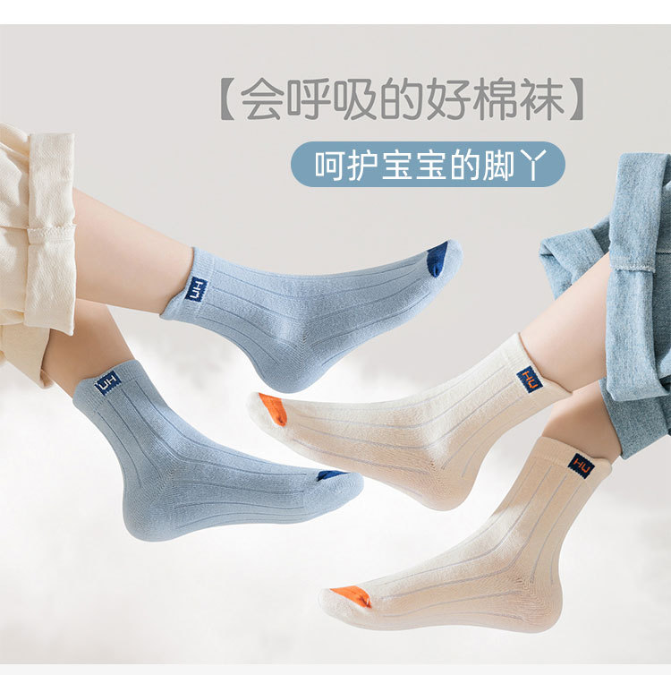 2024秋季男童袜子运动棉袜秋冬立体后跟儿童袜子中筒字母潮袜批发