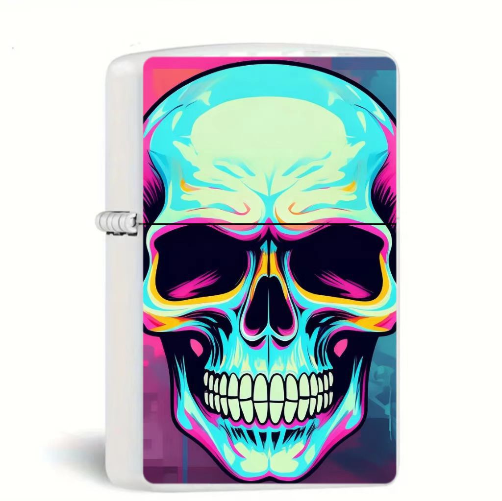外贸跨境货源老式滑轮火石煤油打火机 创意骷髅金属防风火机批发