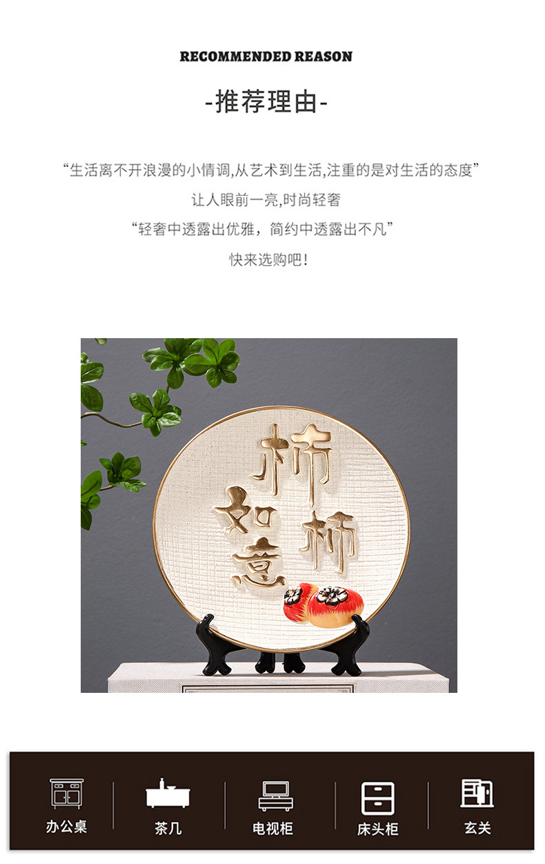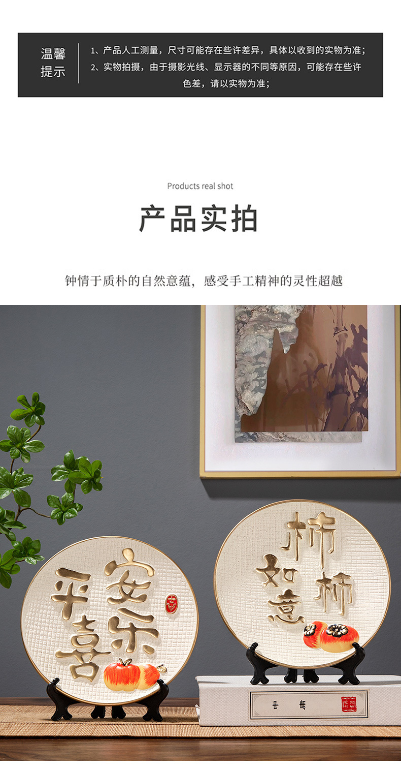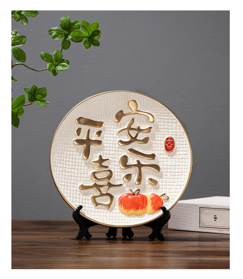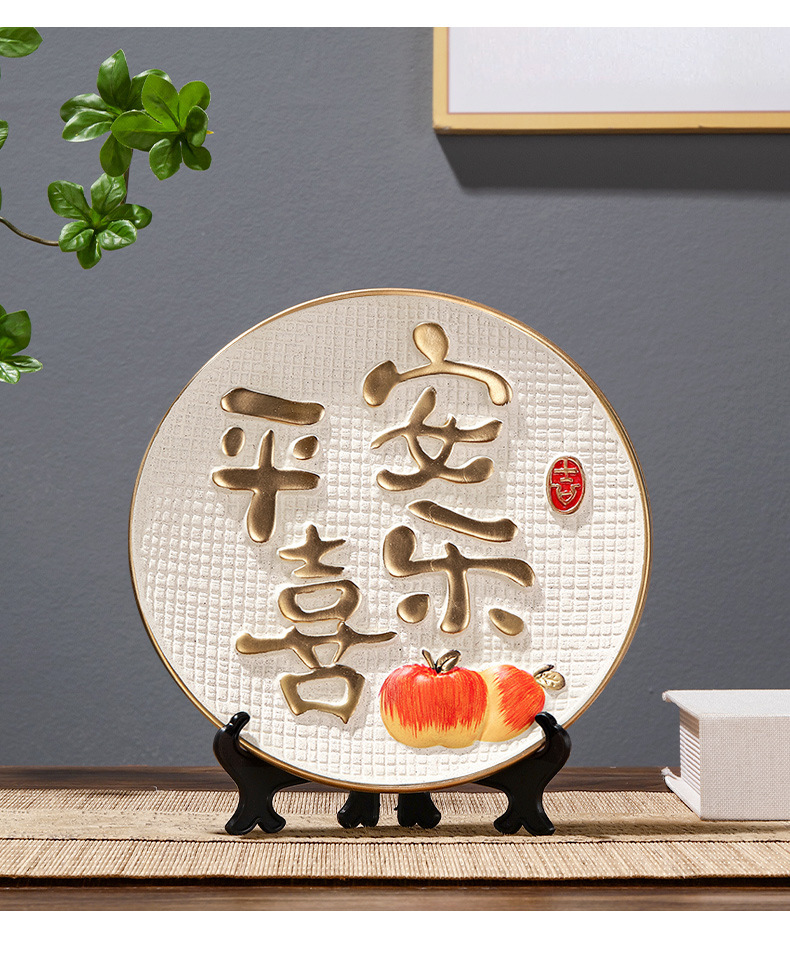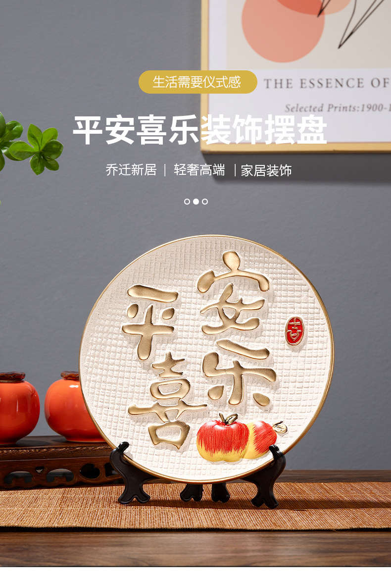 平安喜乐桌面陶瓷摆盘客厅电视酒柜展示柜装饰品摆件乔迁新居礼品