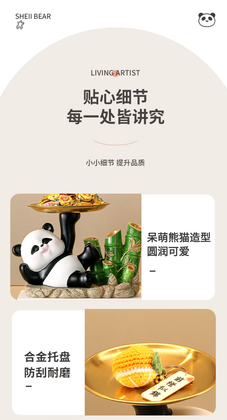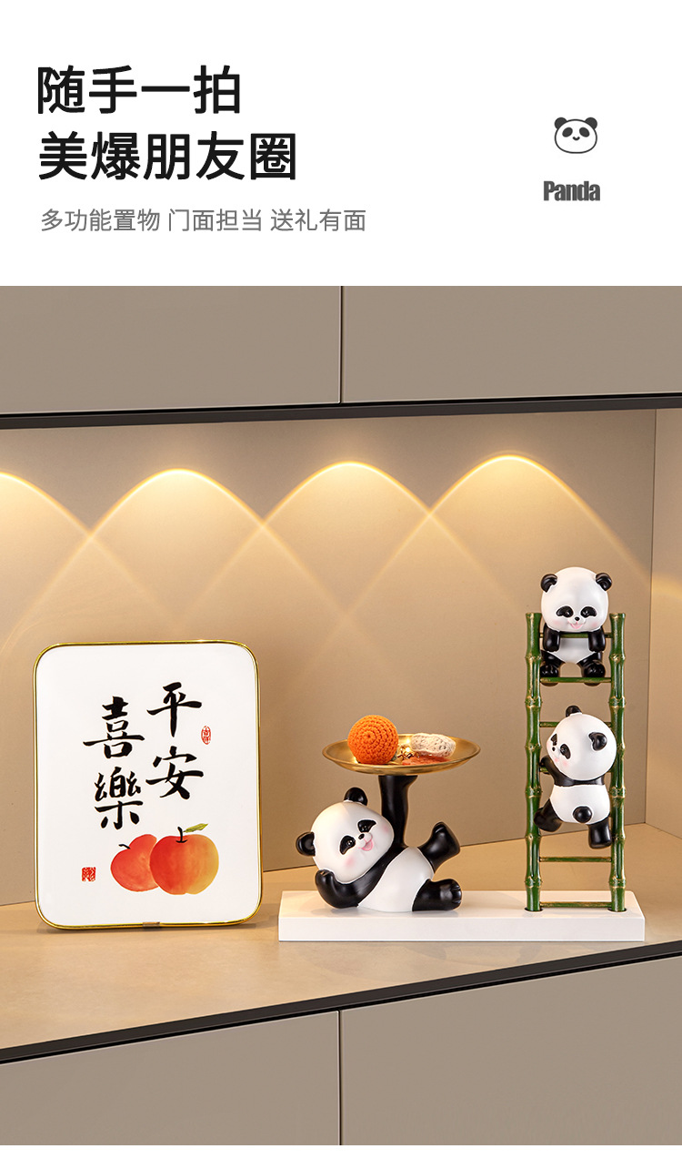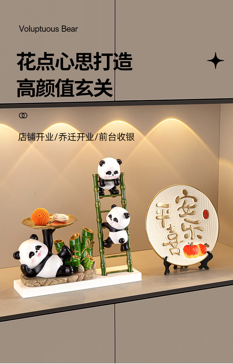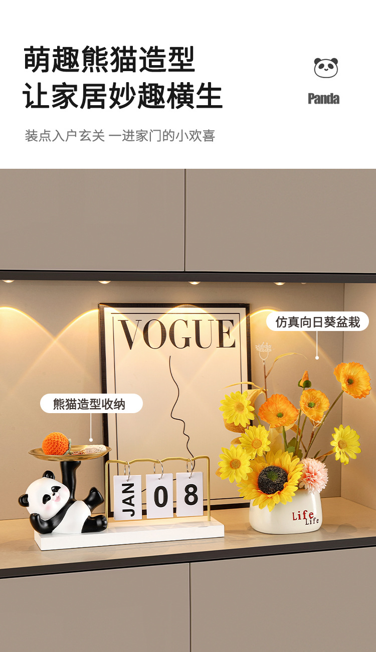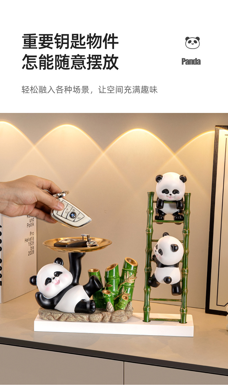创意卡通熊猫入户玄关匙收纳摆件客厅家居装饰品摆设乔迁新居礼品