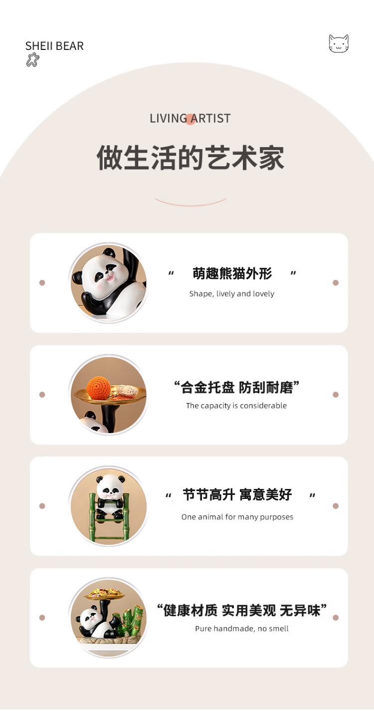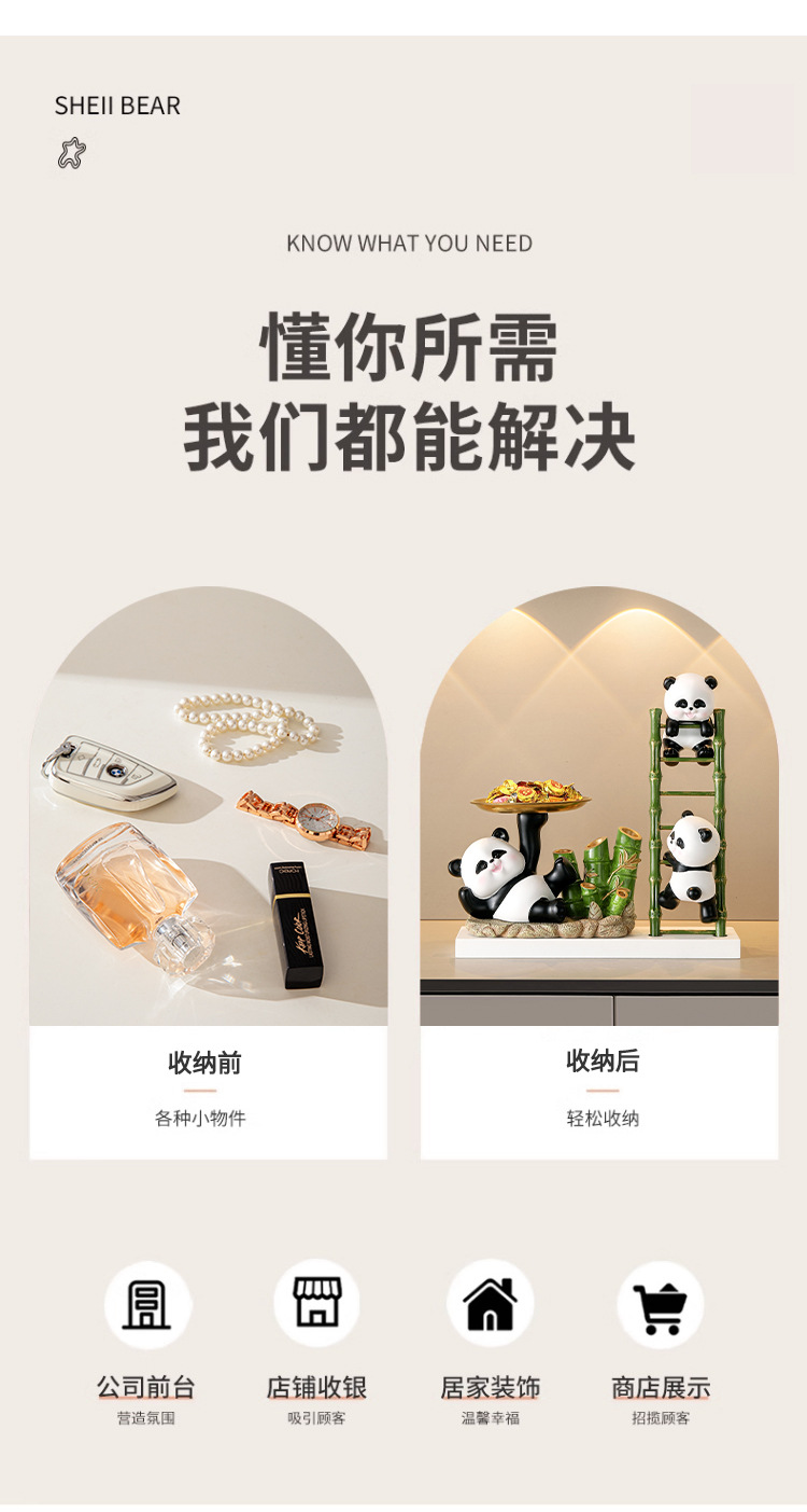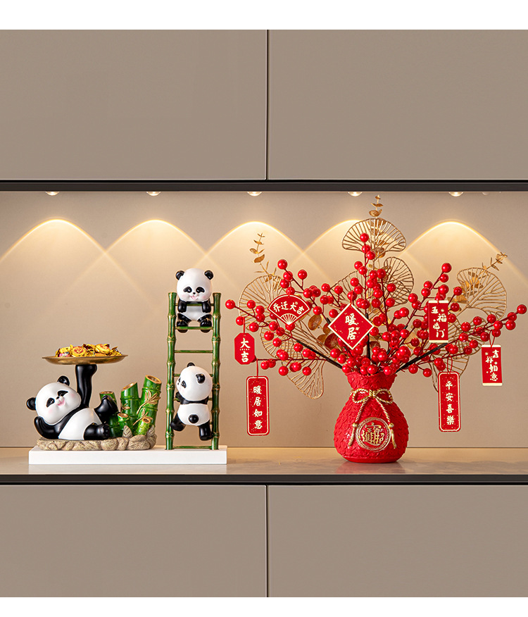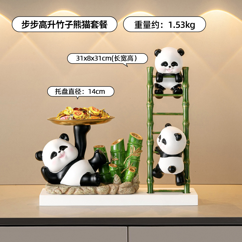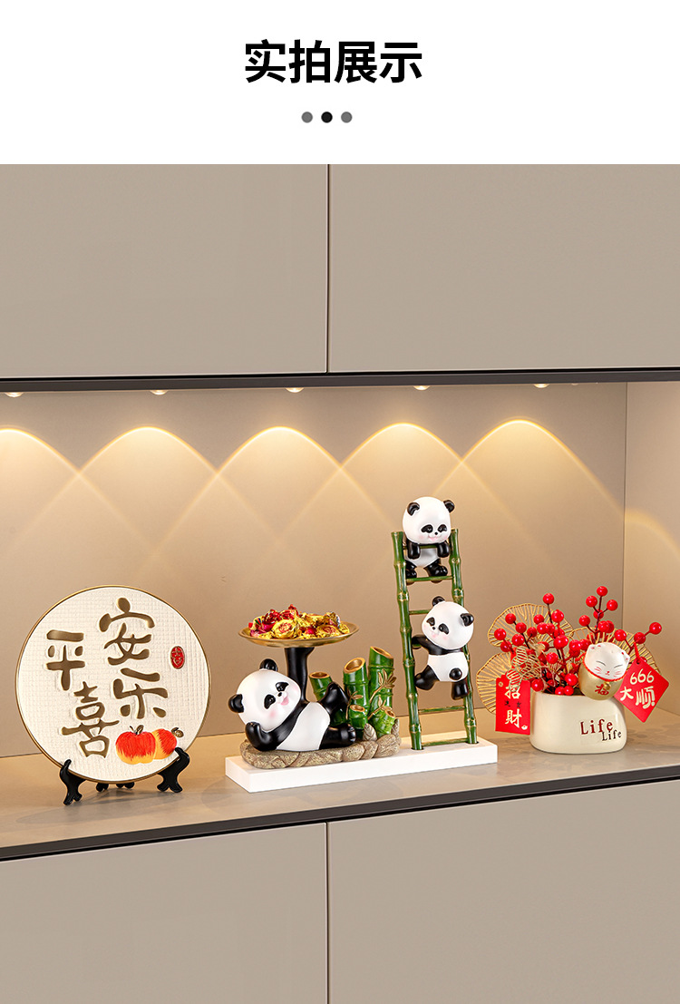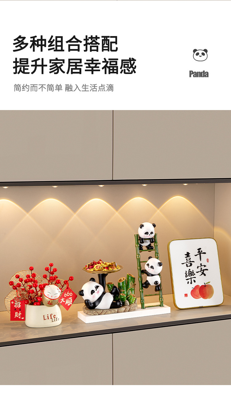 创意卡通熊猫入户玄关匙收纳摆件客厅家居装饰品摆设乔迁新居礼品