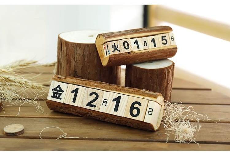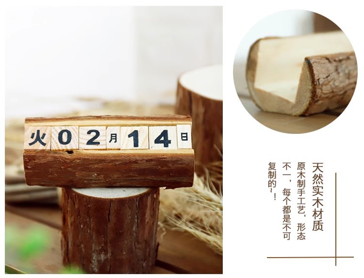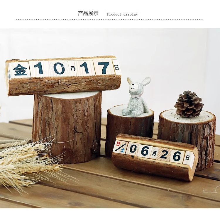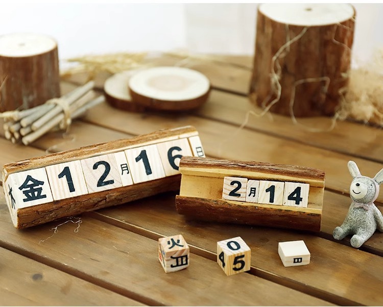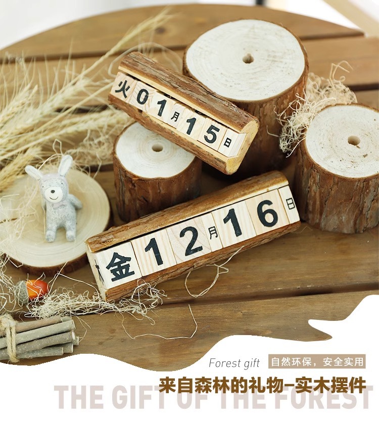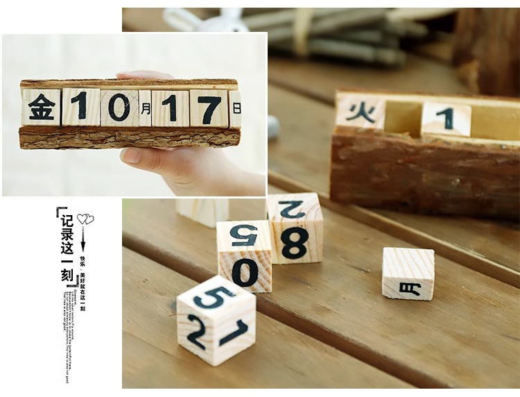 实木雕刻手动创意小木块台日历万年历小摆件木质工艺品家居装饰品