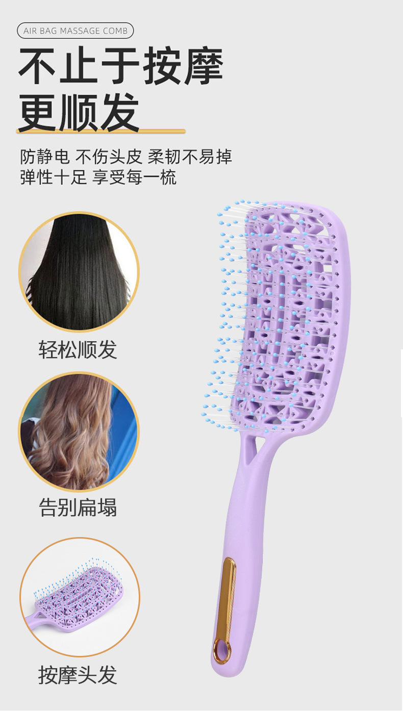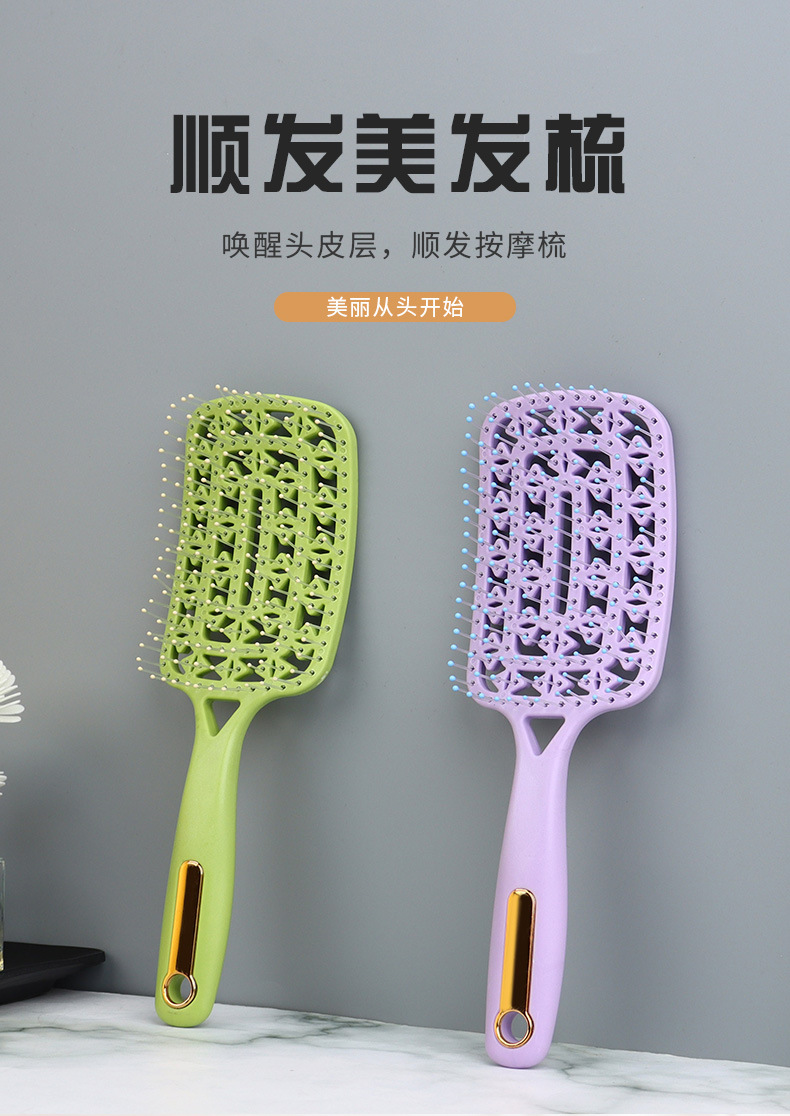 hot sale vent comb macaron comb anti-knotting massage comb tangle teezer hollow plastic hairdressing styling square comb