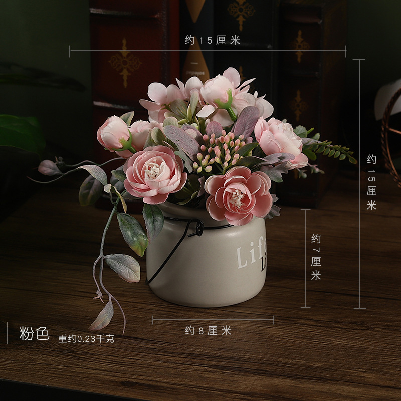 厂家批发陶瓷盆绢花仿真花盆栽家居装饰品客厅办公桌面假花摆件
