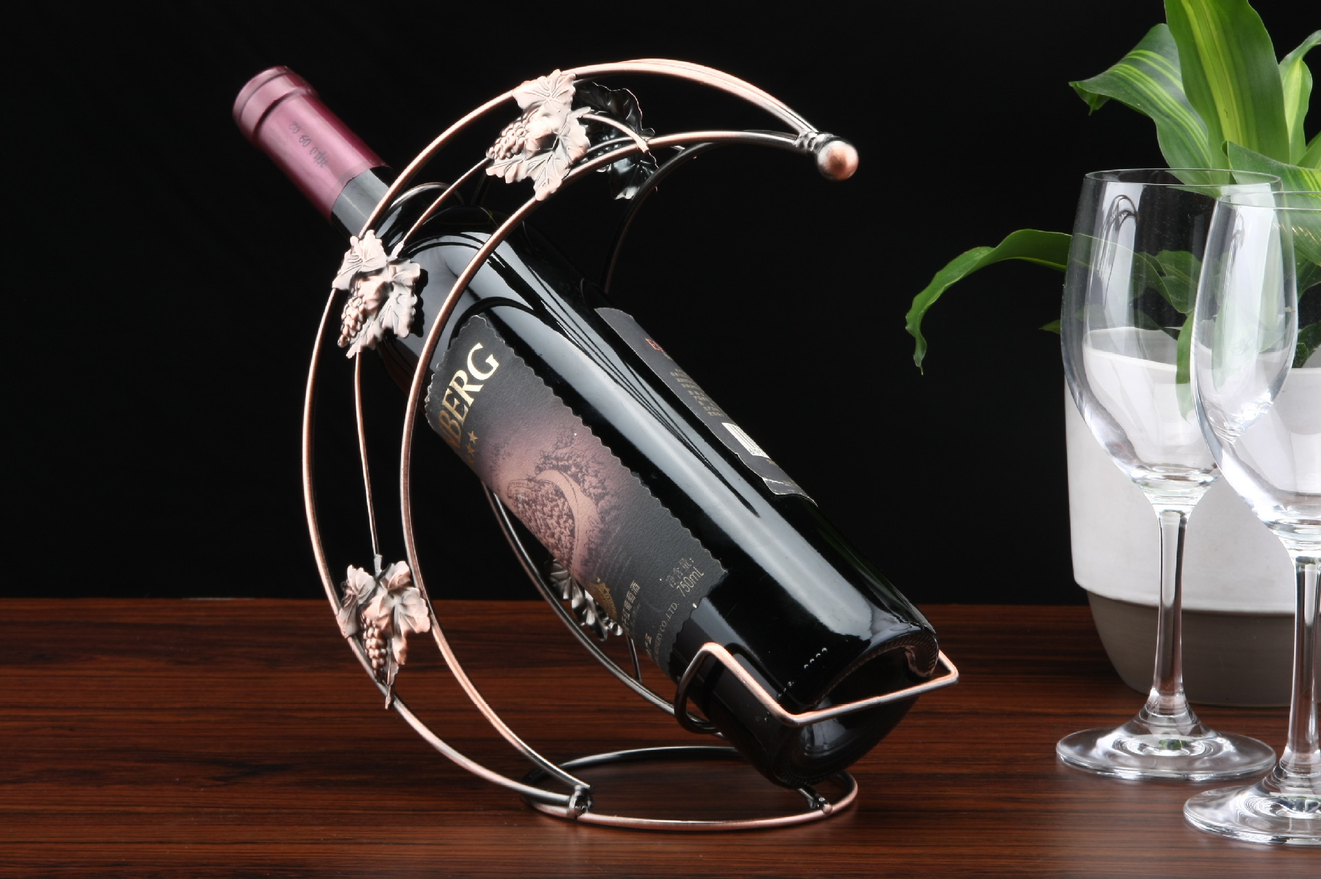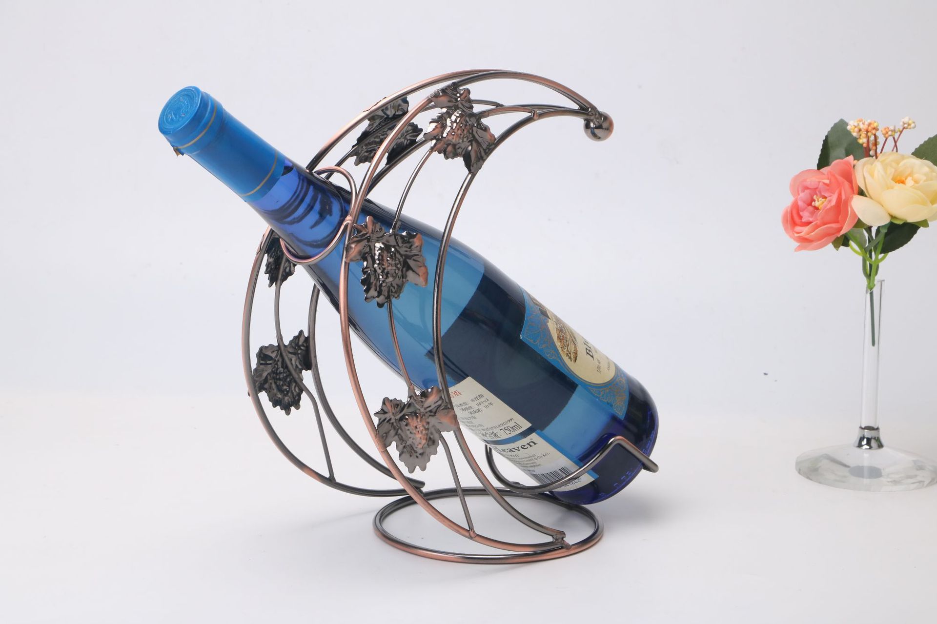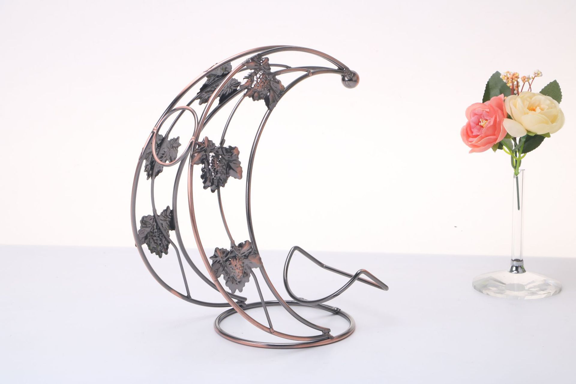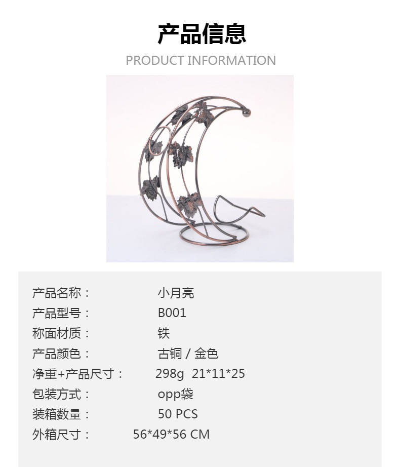 小月亮船红酒架摆件 欧式铁艺酒瓶架子 创意半月葡萄酒架子批发