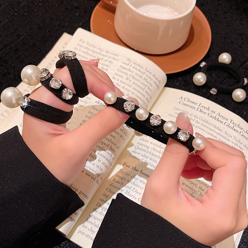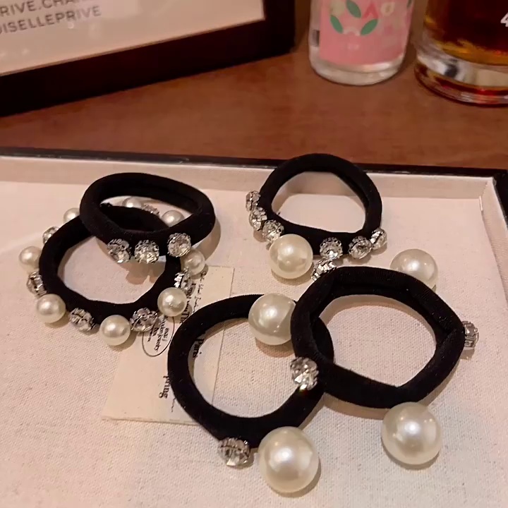 百搭气质高马尾丸子头扎发绳发圈头饰韩系高级感超闪水钻珍珠头绳
