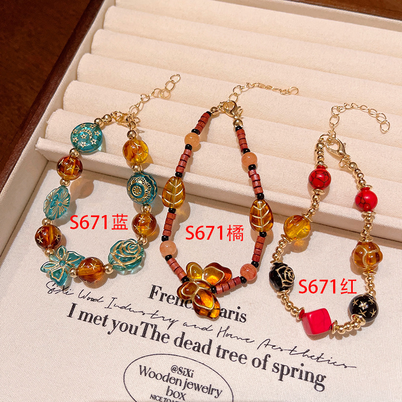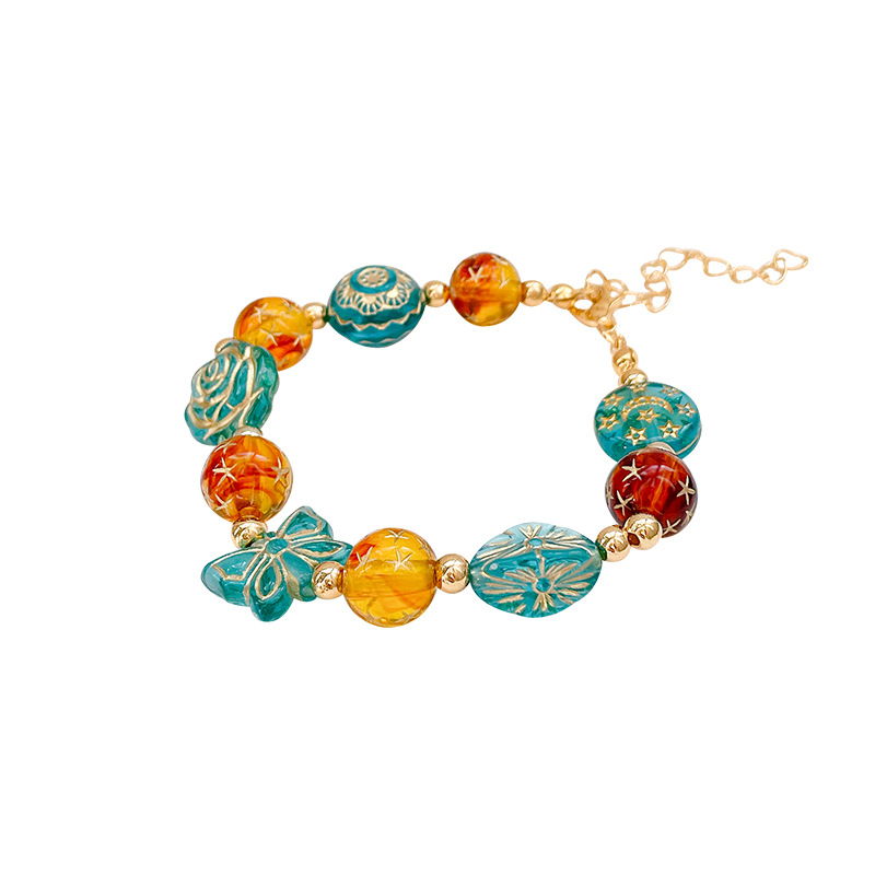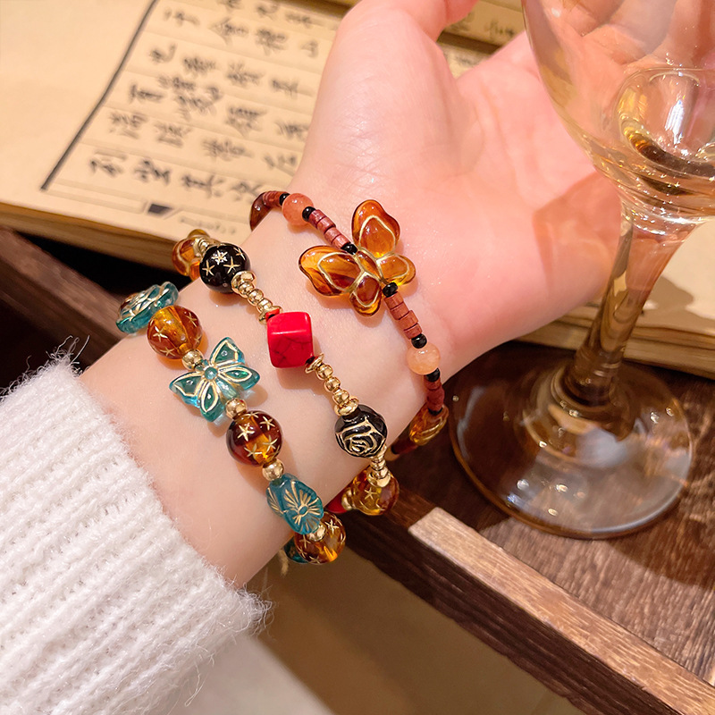 民族风复古琉璃手链网红手饰新中式中古金色文艺复古彩色串珠批发