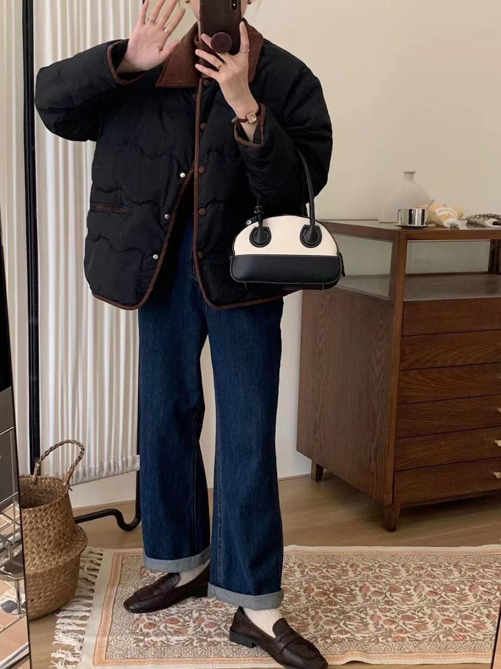 韩国ins灯芯绒翻领东大门轻薄羽绒服女短款小香风时尚休闲外套冬