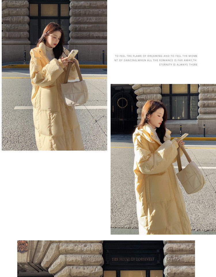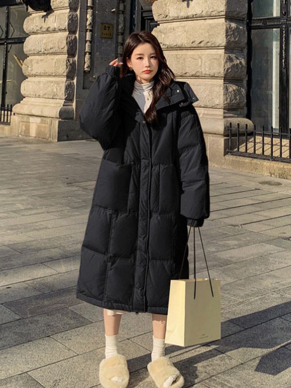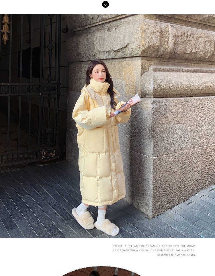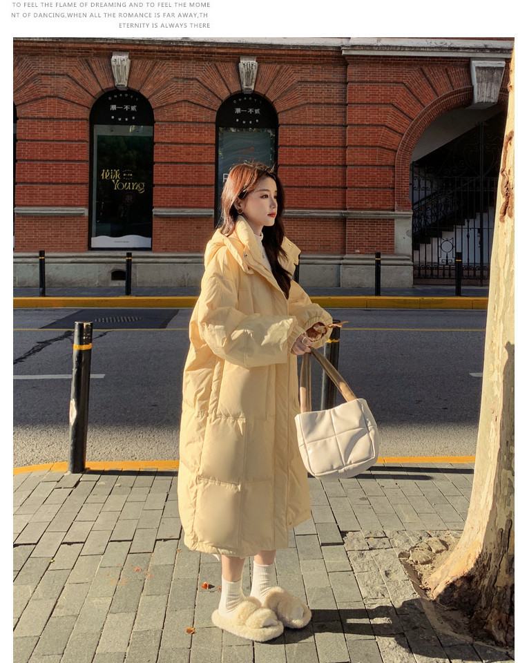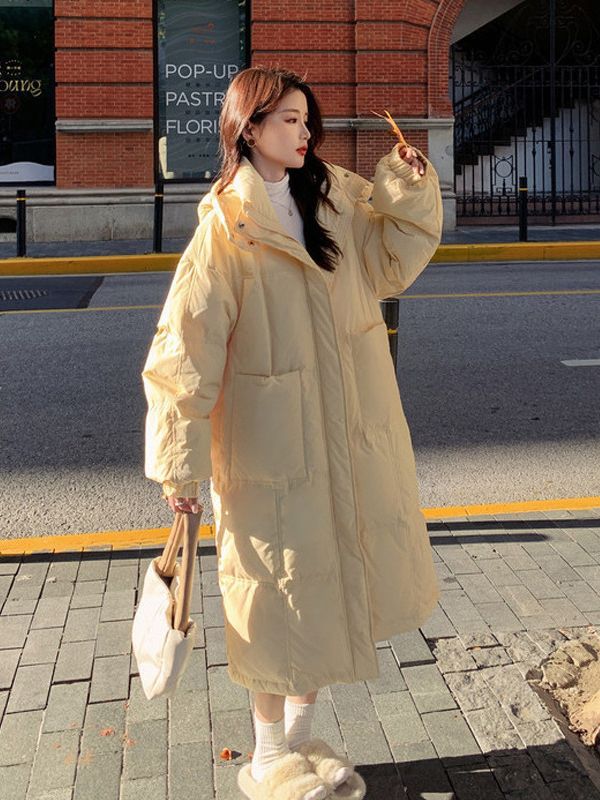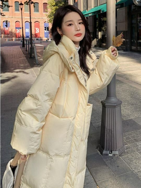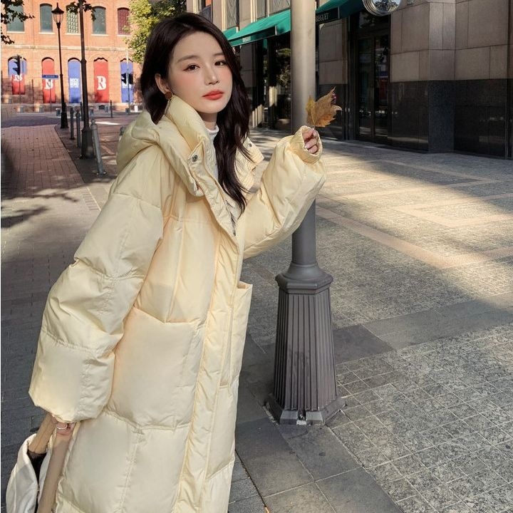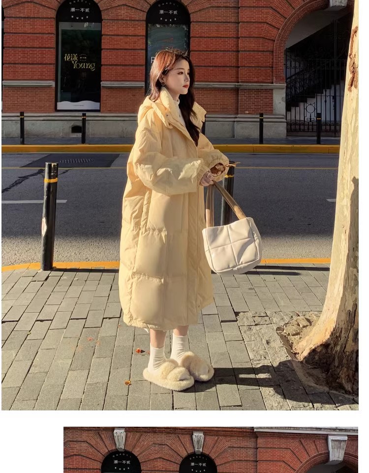 长款羽绒棉服女2024冬季新款优雅连帽加厚过膝小个子棉衣外套女士