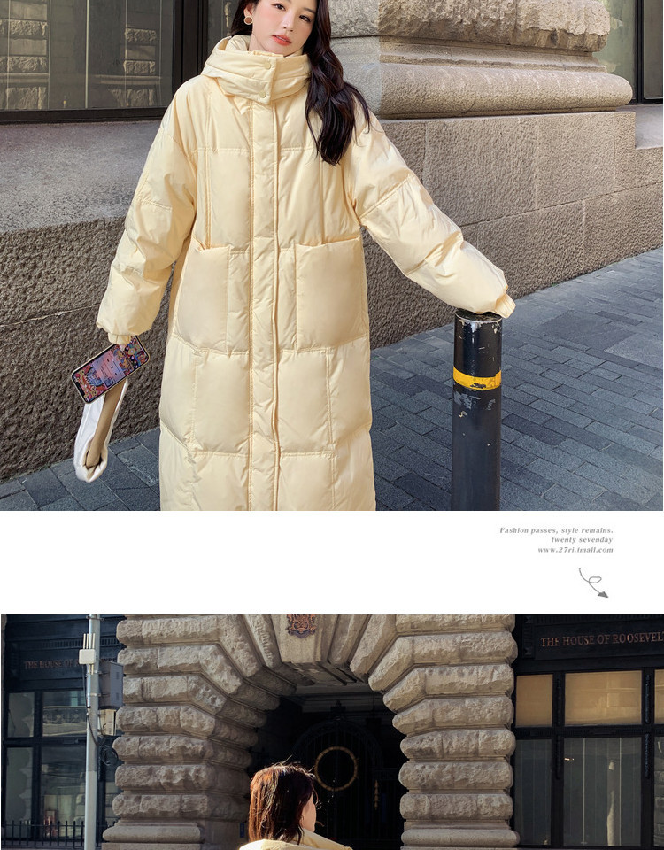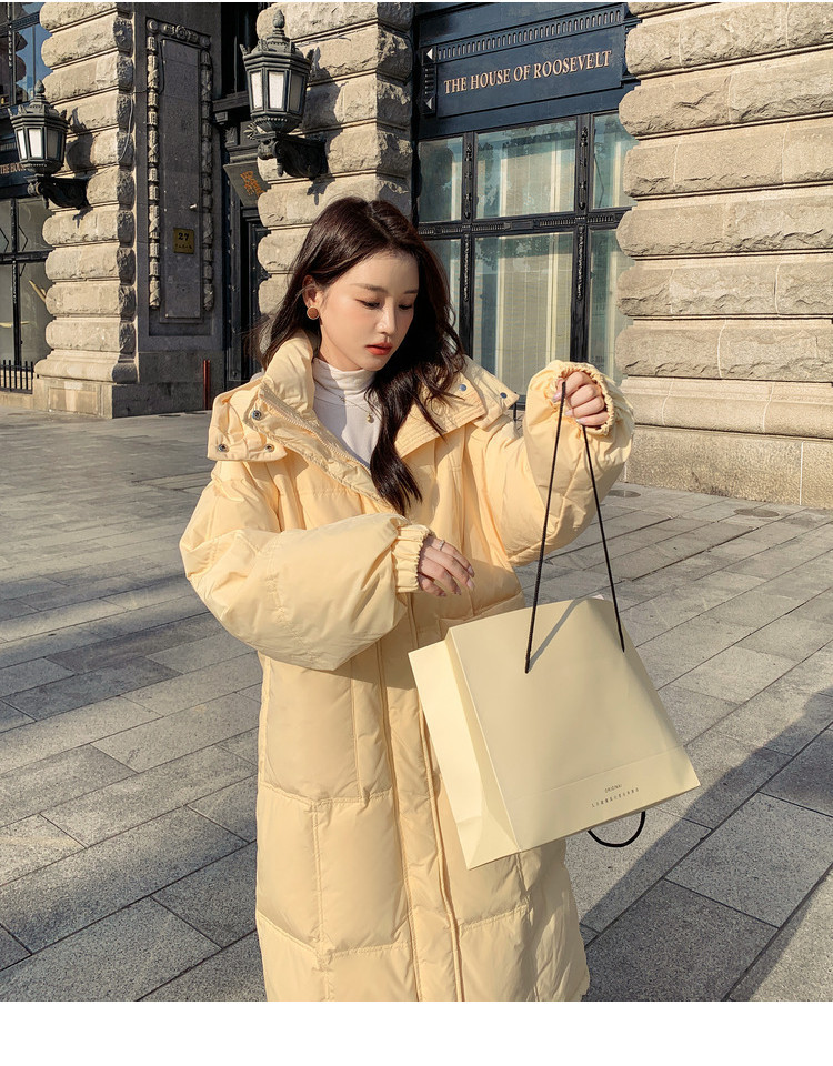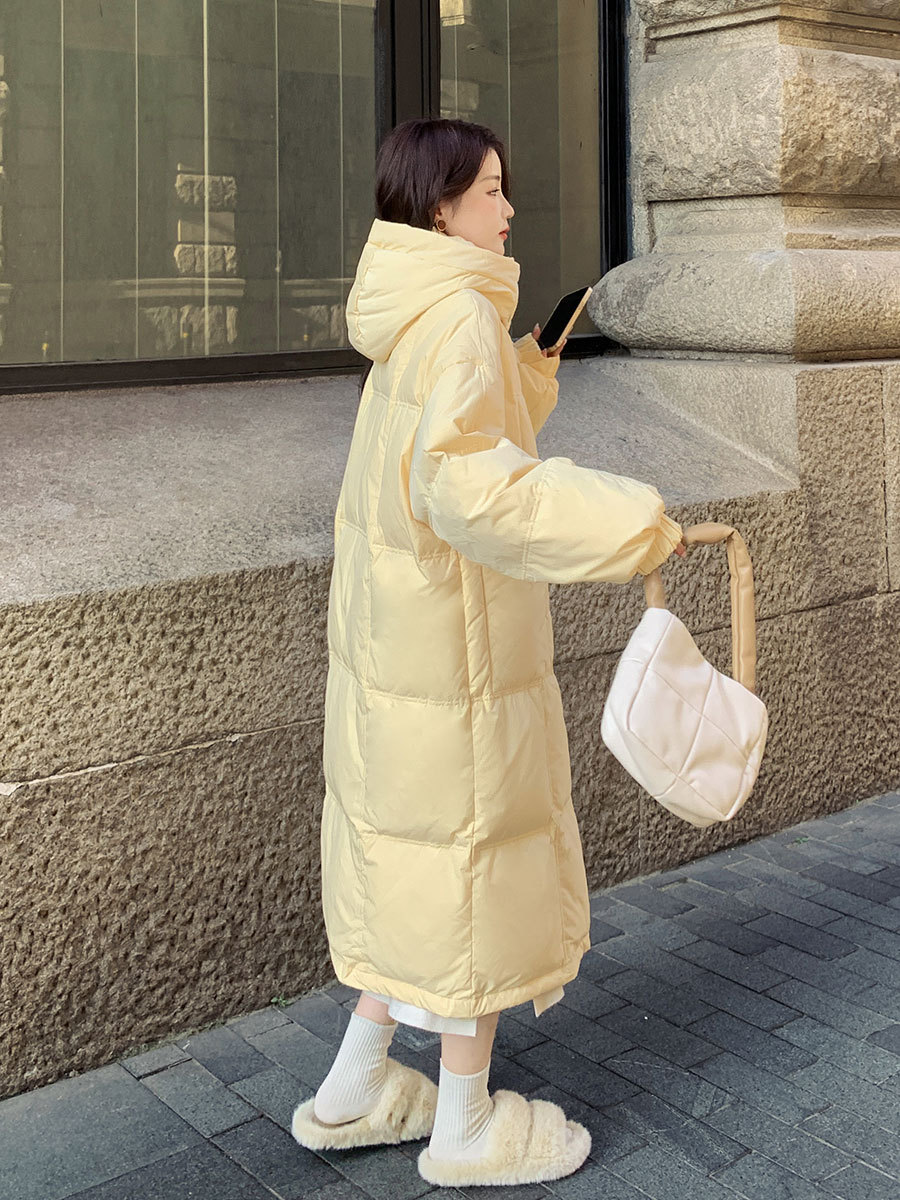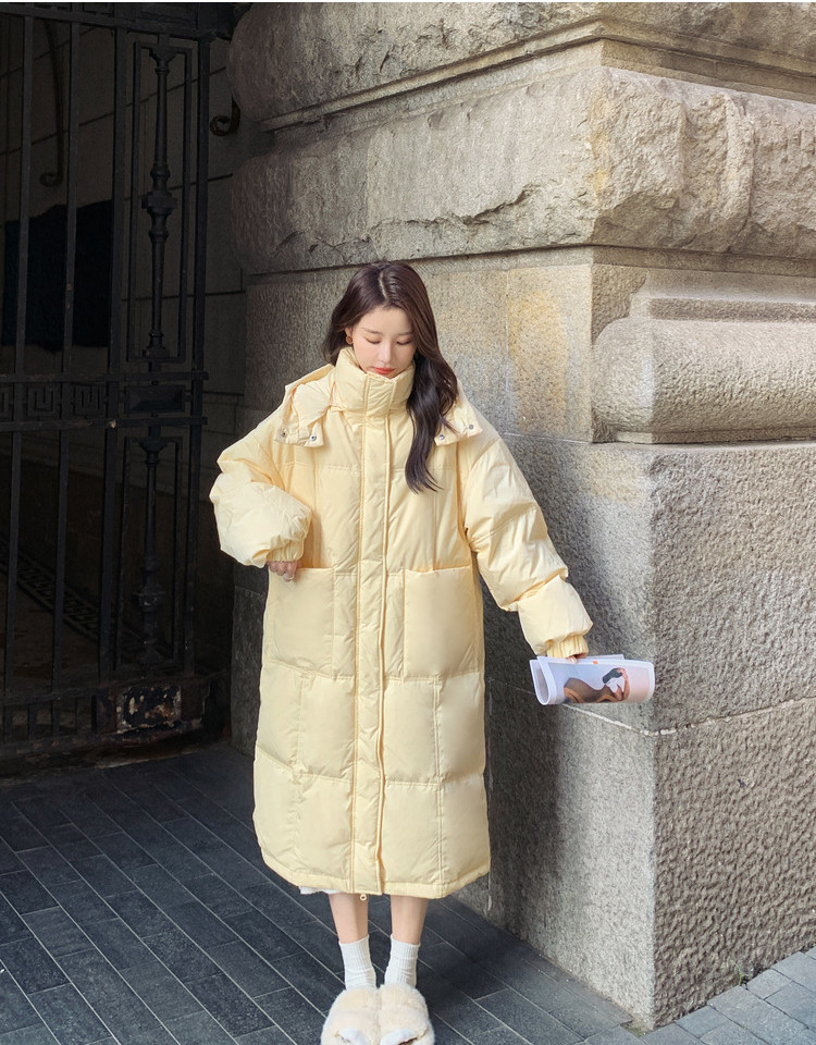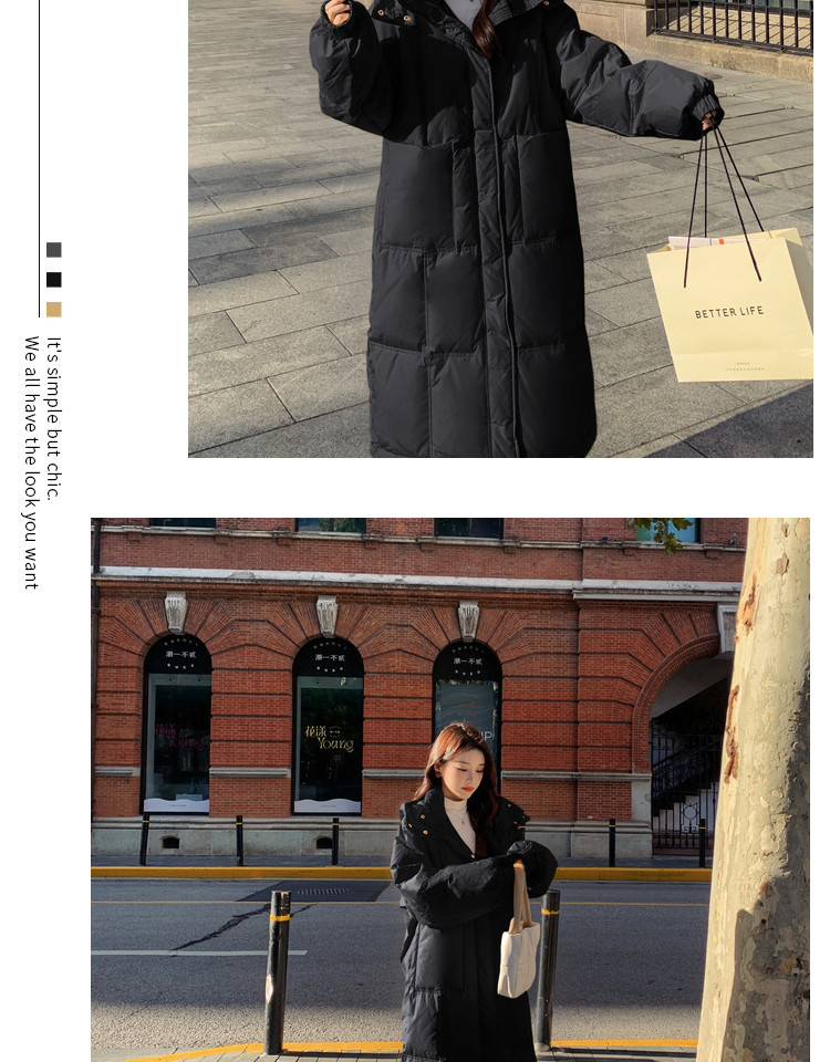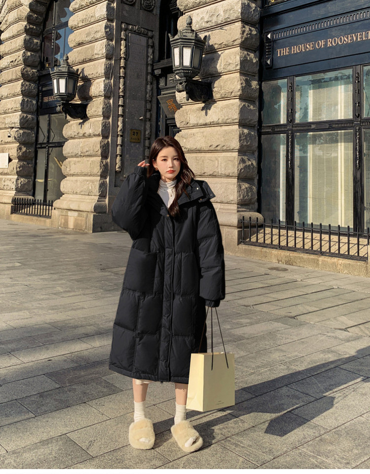 长款羽绒棉服女2024冬季新款优雅连帽加厚过膝小个子棉衣外套女士