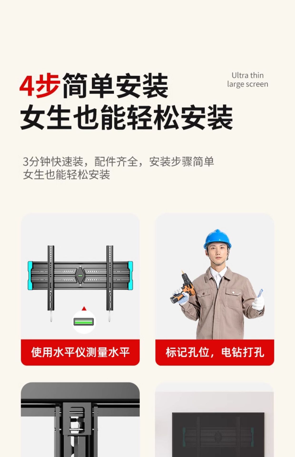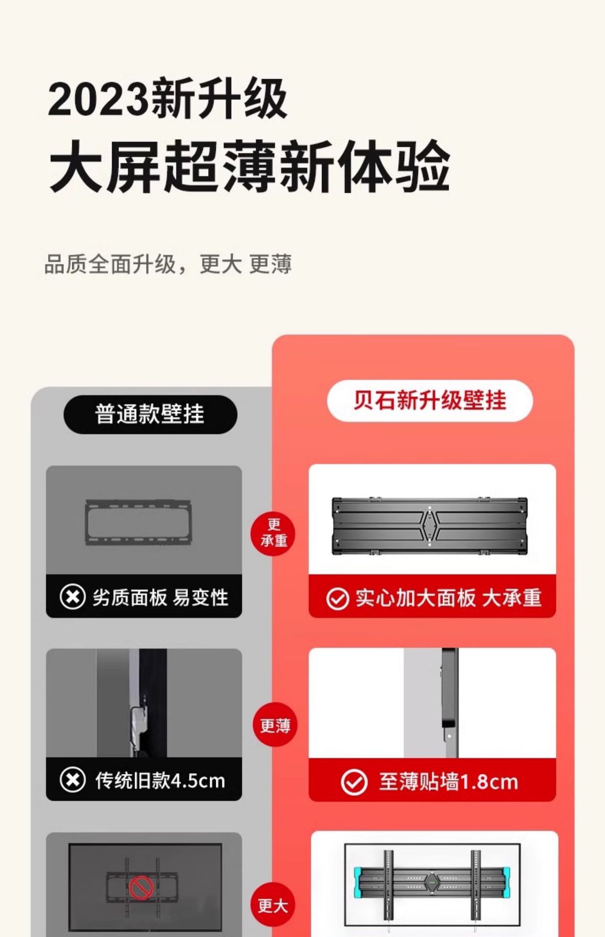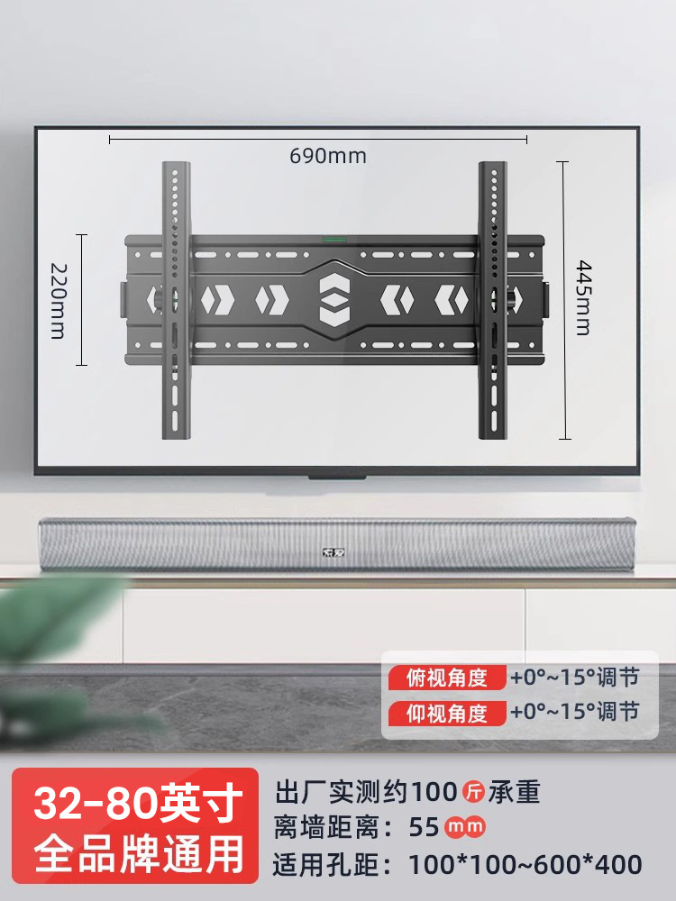 通用电视机支架超薄挂架电视挂架壁挂墙架子55/65/75/85/100寸