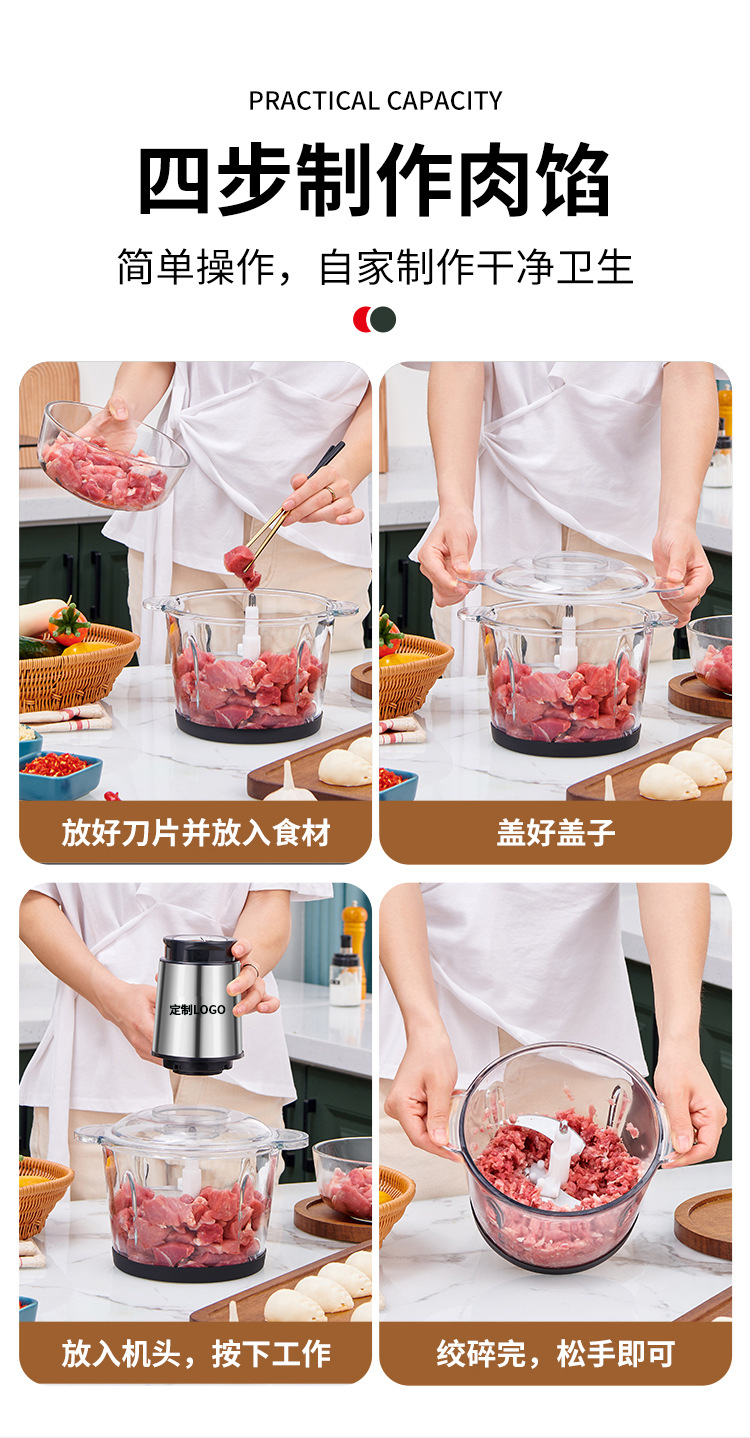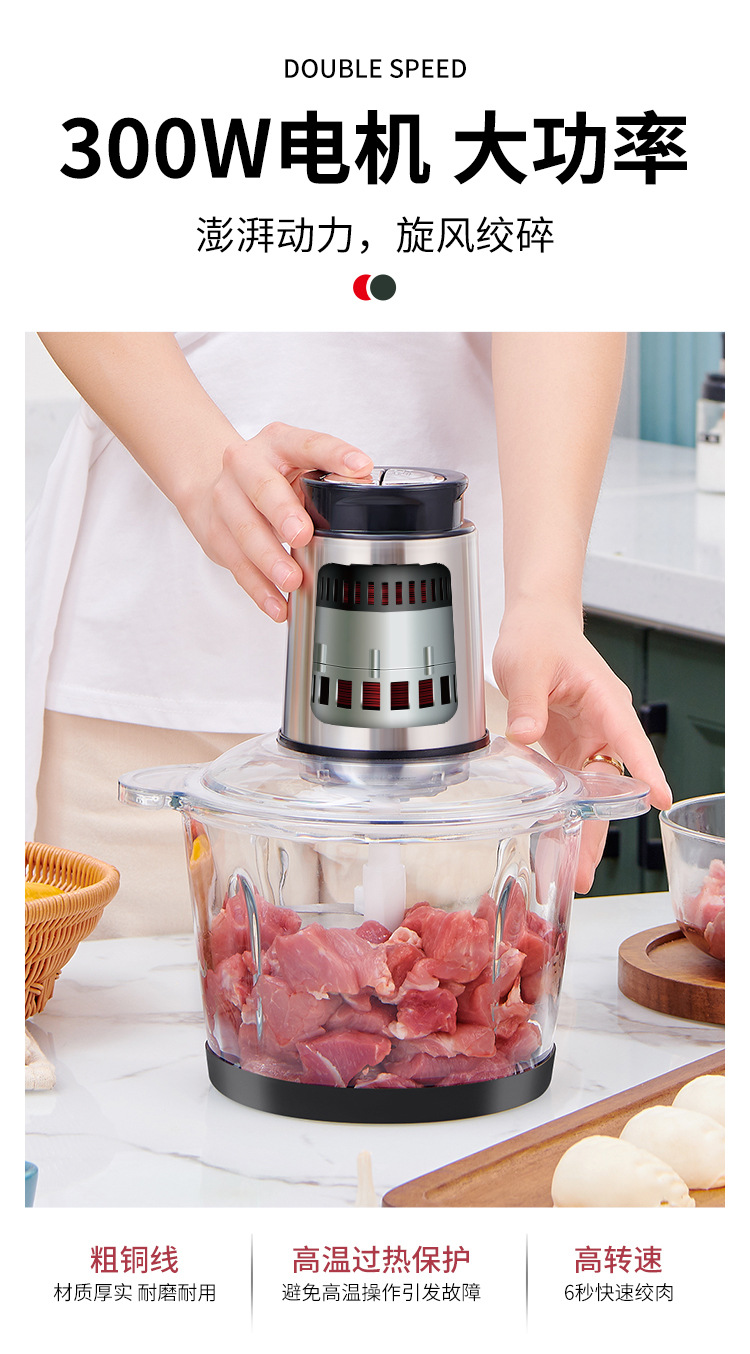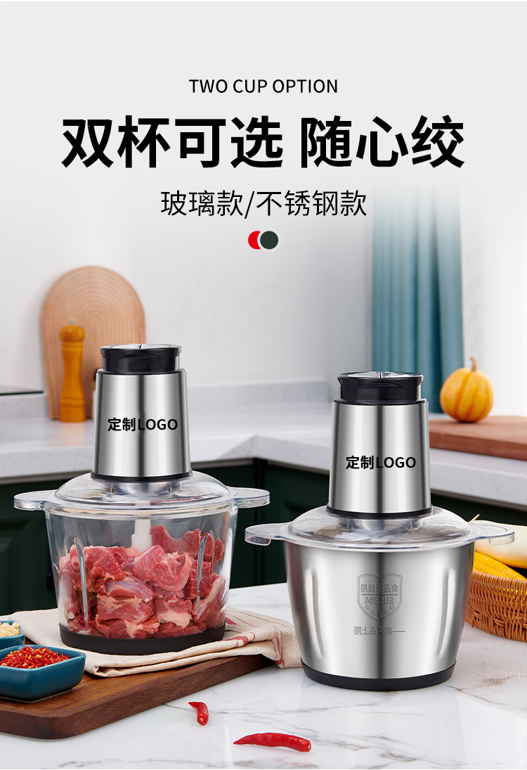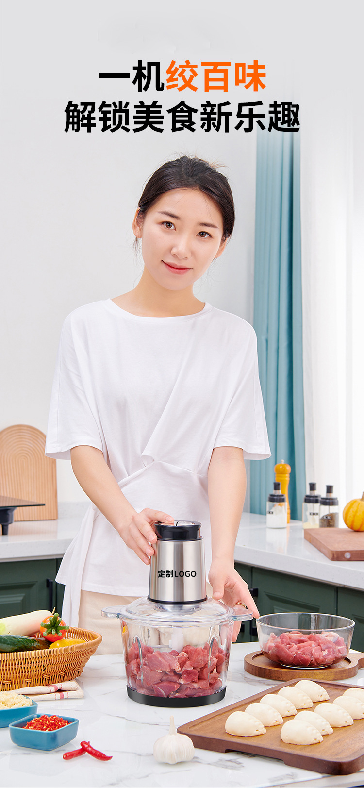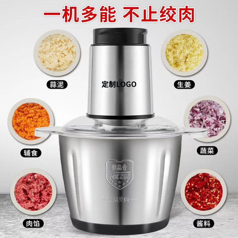 跨境家用电动绞肉机不锈钢多功能搅拌机料理机碎肉辅食小型大容量