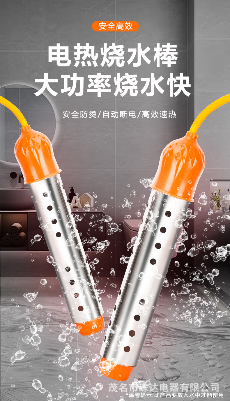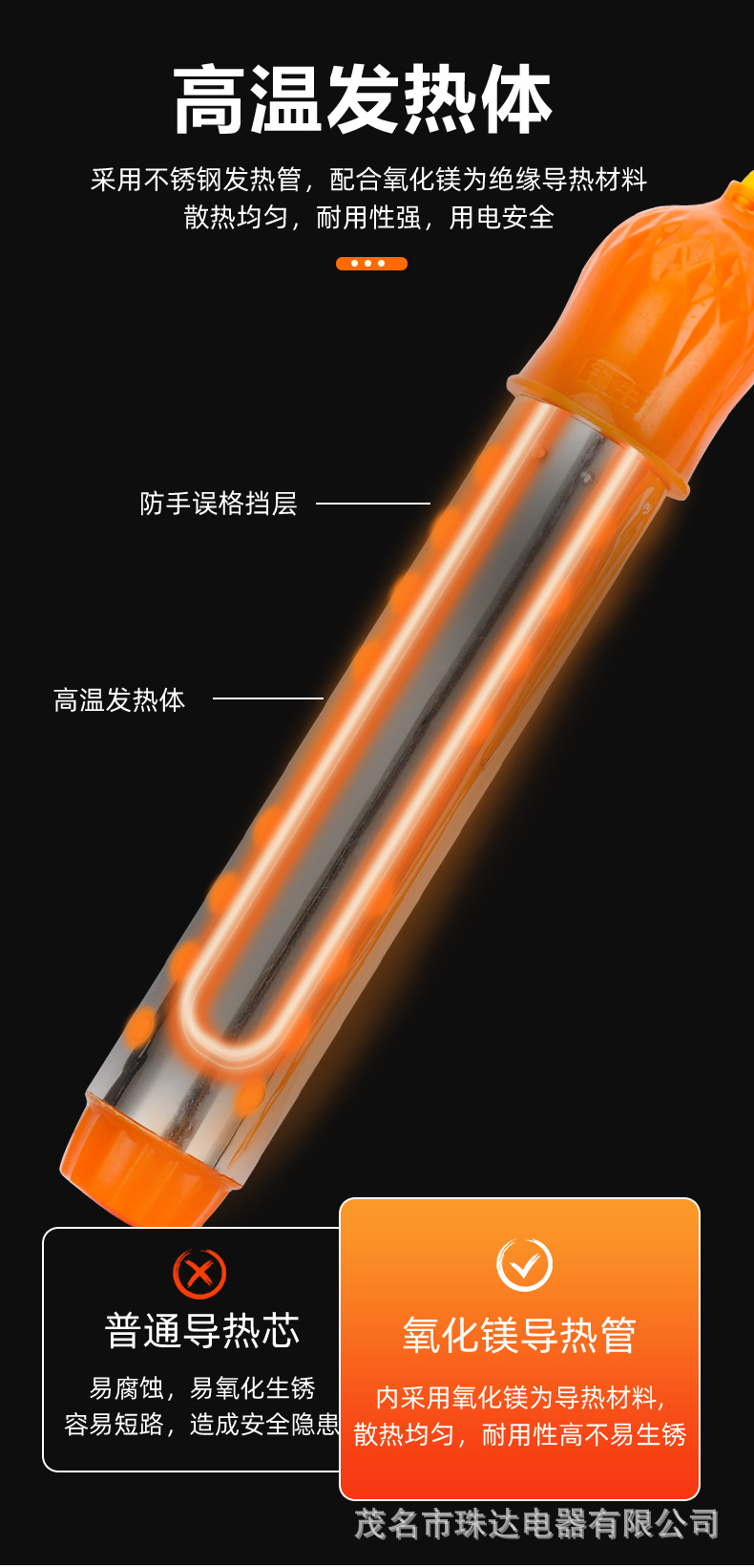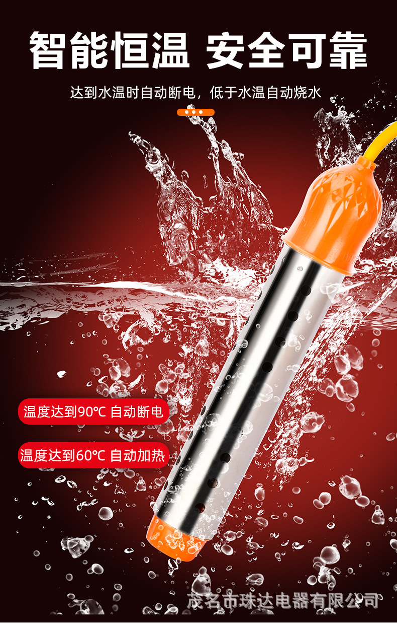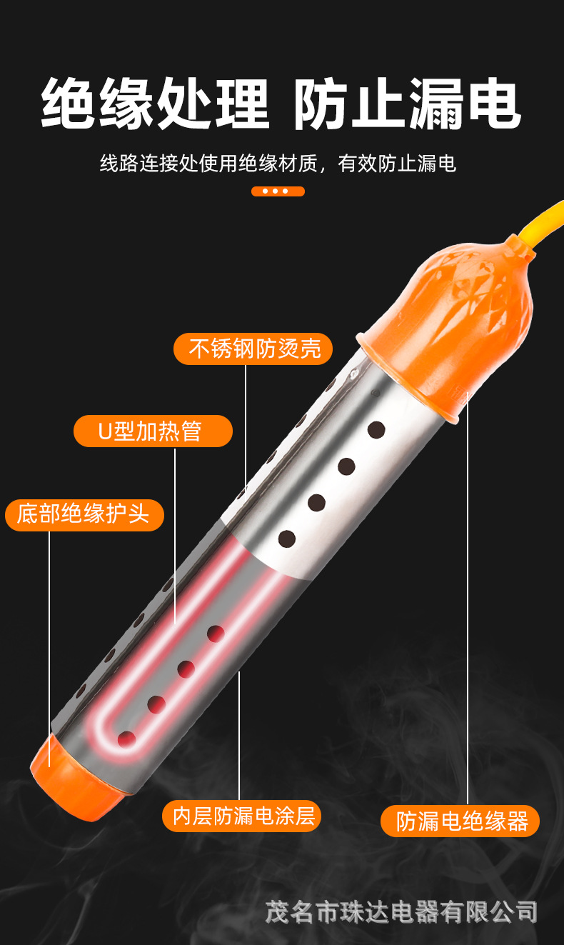 珠达2500W自动断电不锈钢热得快烧水棒大功率工地桶烧电热烧水器