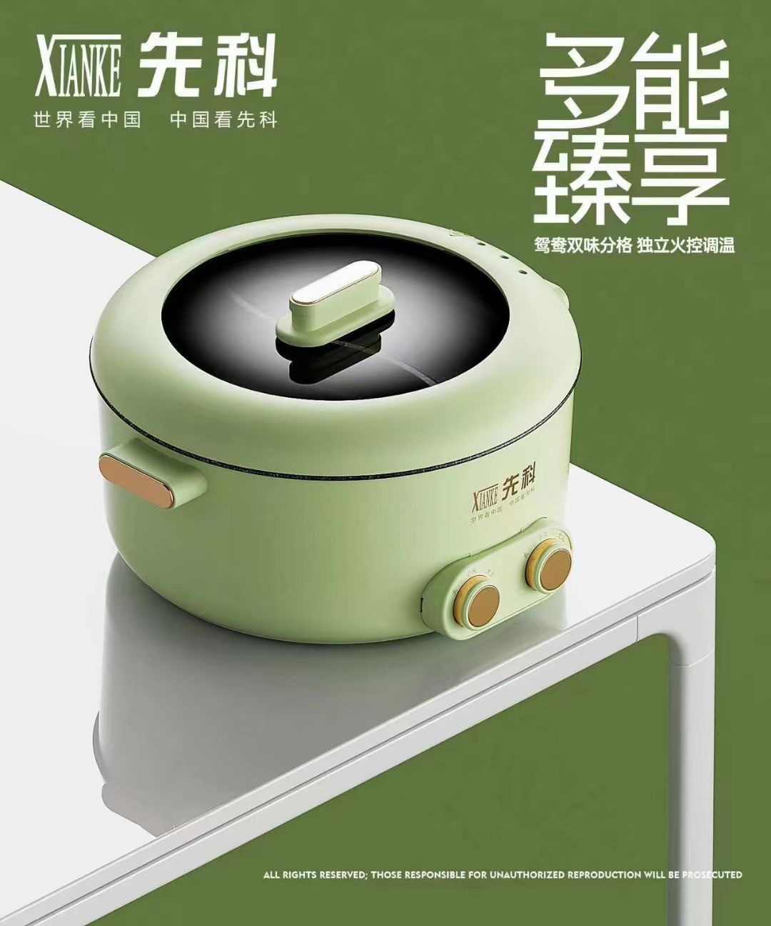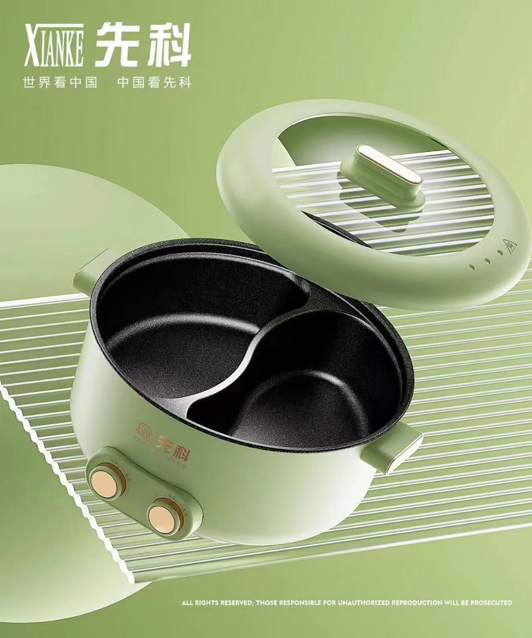 先科家用鸳鸯火锅大功率电火锅电热锅多功能不粘锅韩式煎烤锅礼品
