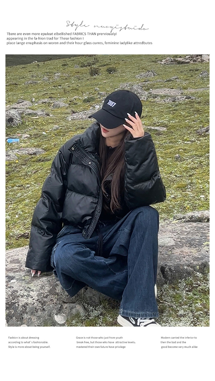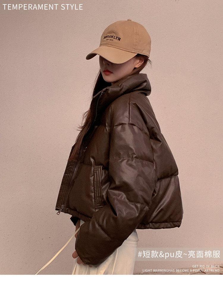 PU皮羽绒棉服女2024冬季新款短款立领加厚小个子面包服皮衣外套潮