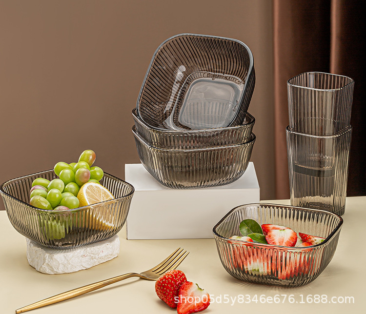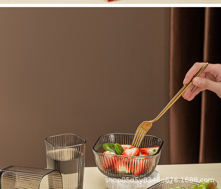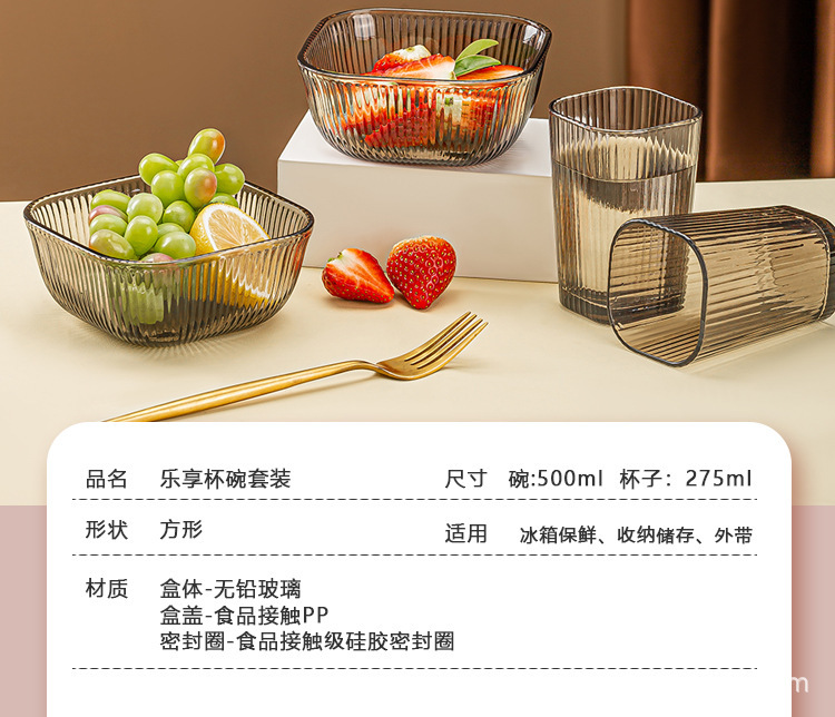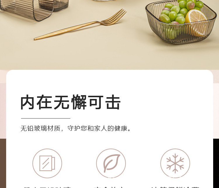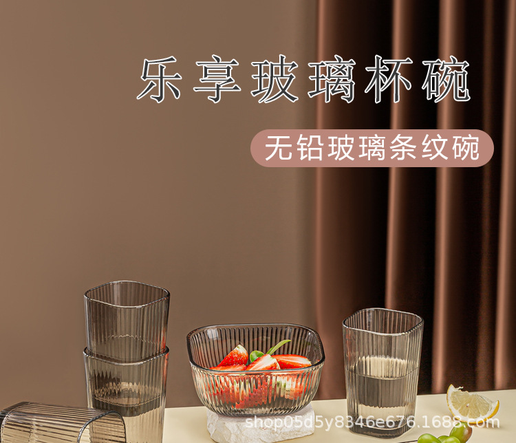 玻璃碗开业活动礼品促销竖纹玻璃杯碗家用水杯甜品沙拉碗两件套