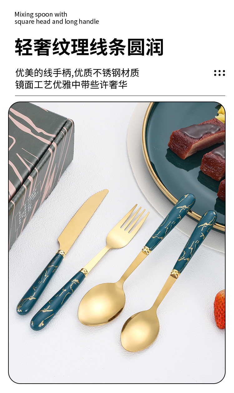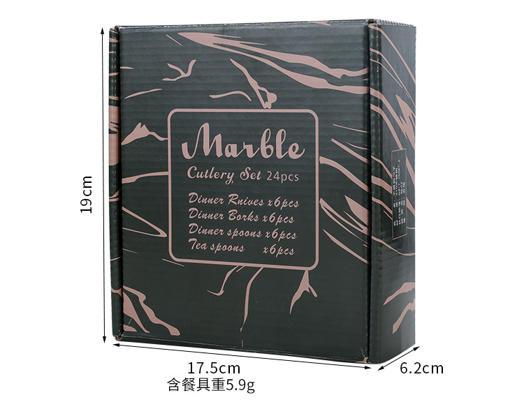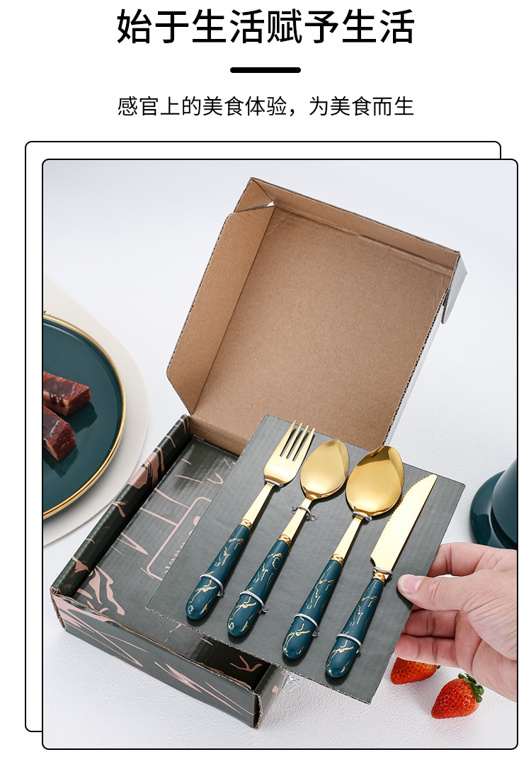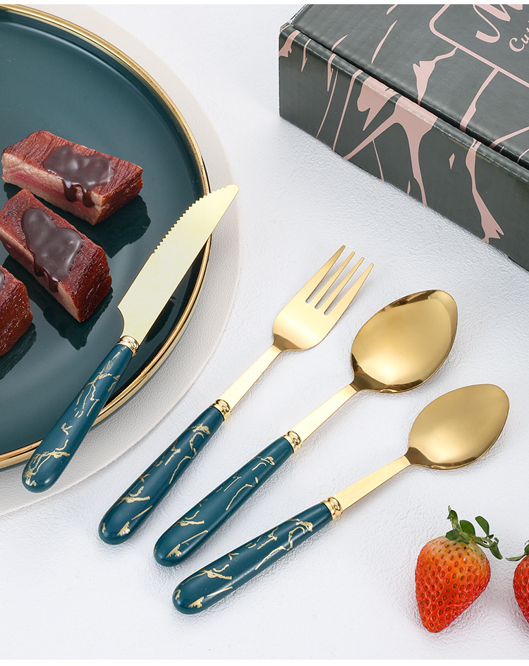 不锈钢刀叉勺24件套礼盒装酒店大理石纹手柄牛排刀叉甜品勺水果叉