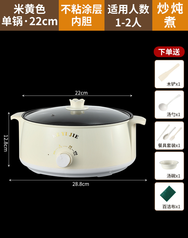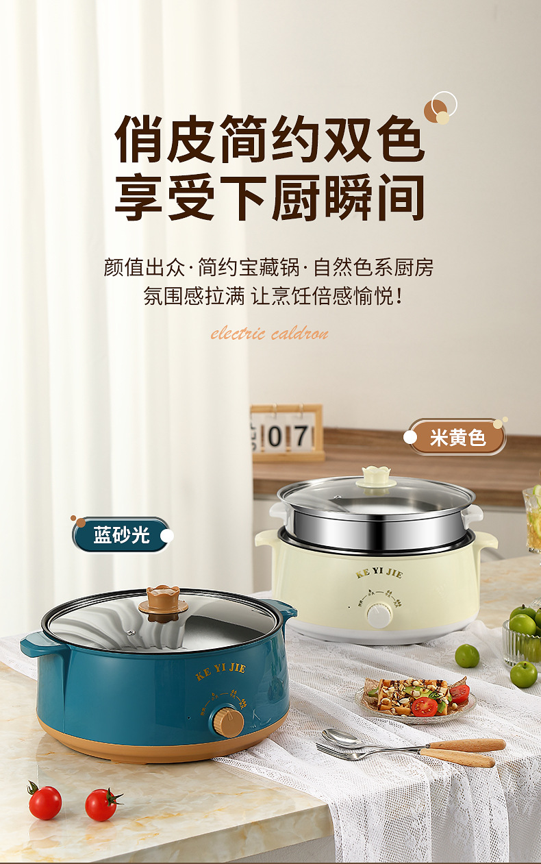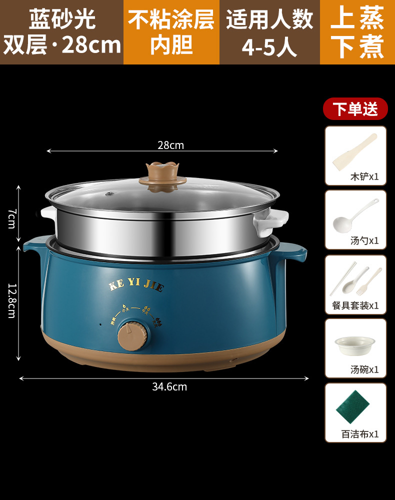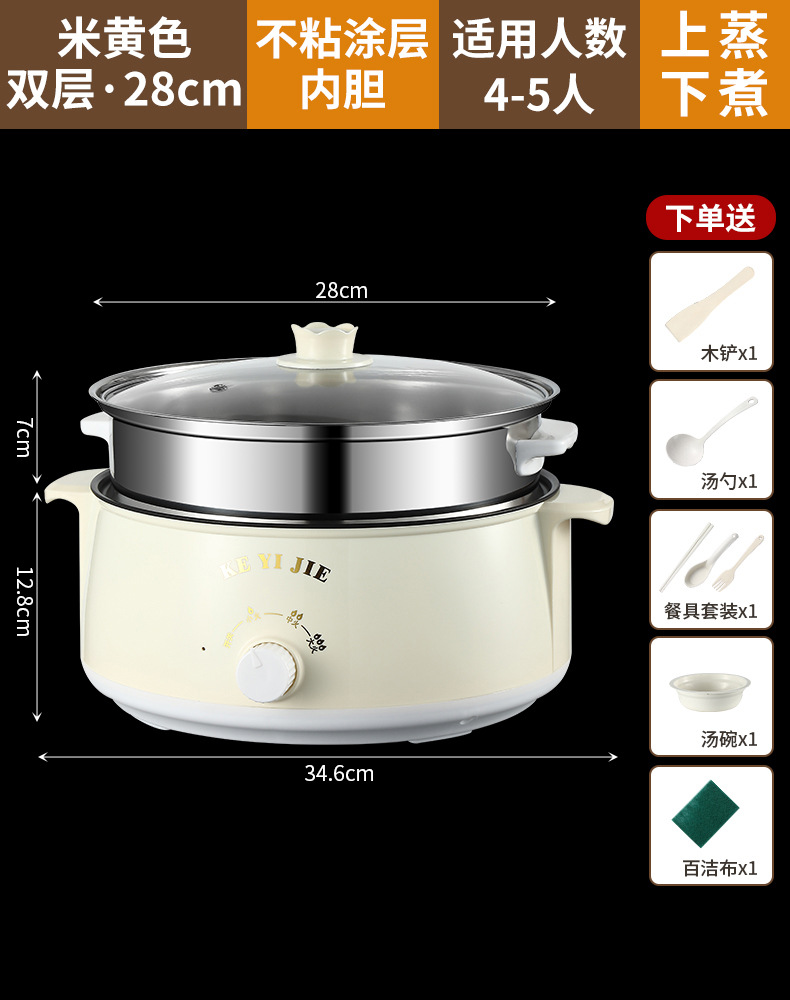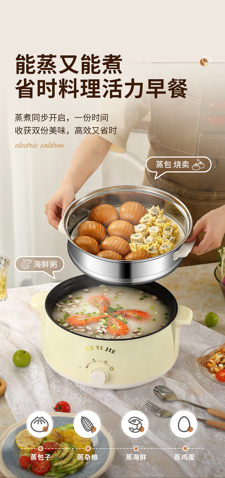 电煮锅宿舍学生锅家用小电锅多功能蒸锅多层电炒菜炒锅一体煮面锅