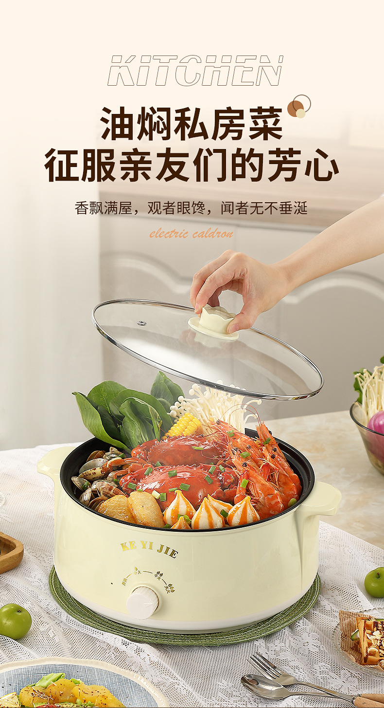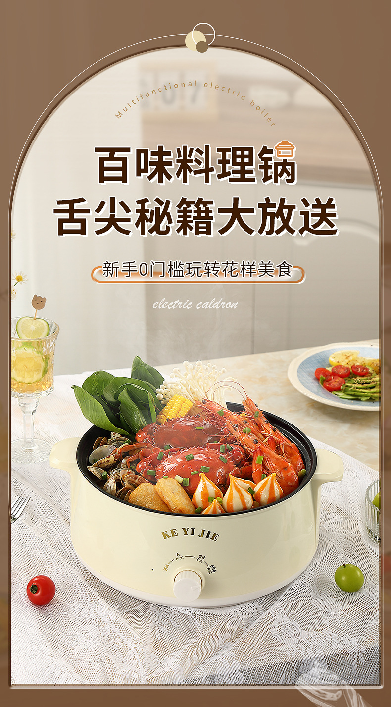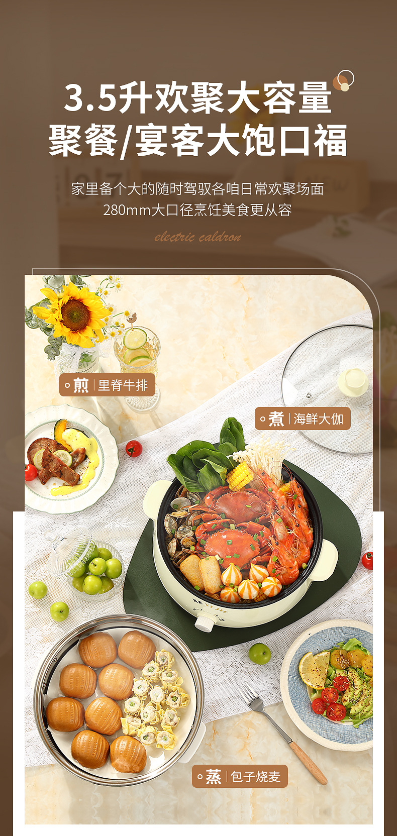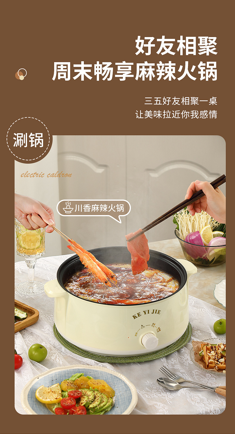 电煮锅宿舍学生锅家用小电锅多功能蒸锅多层电炒菜炒锅一体煮面锅