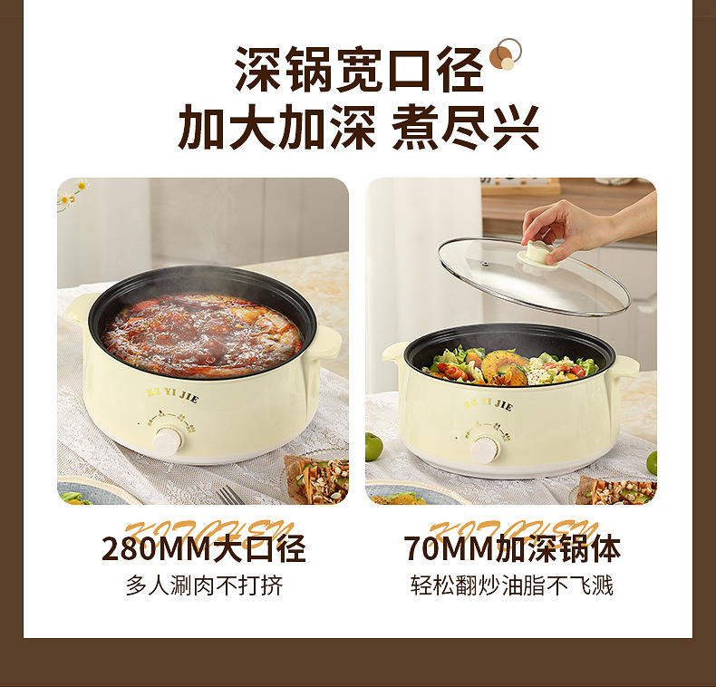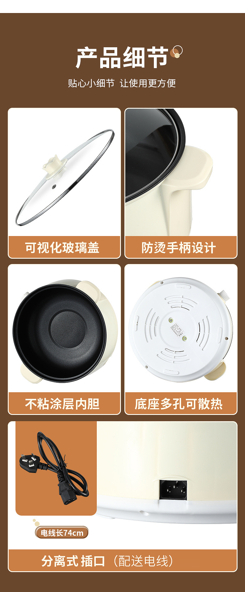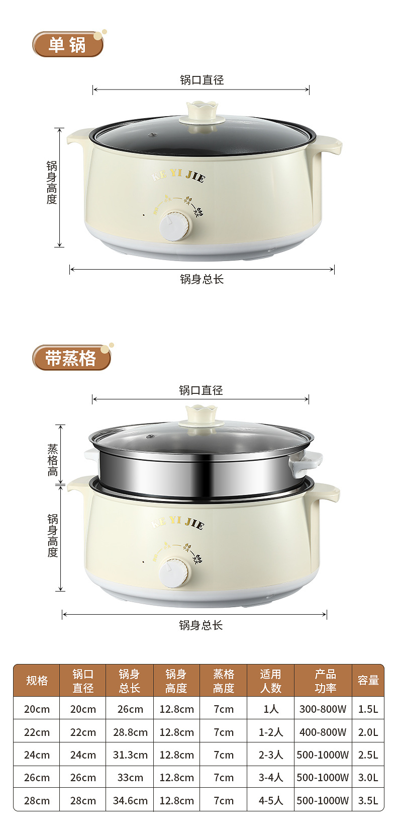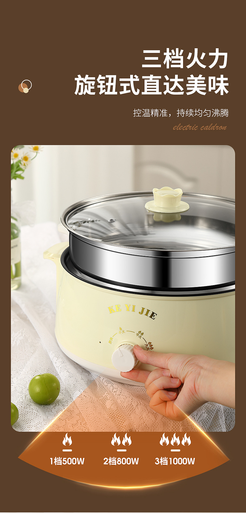 电煮锅宿舍学生锅家用小电锅多功能蒸锅多层电炒菜炒锅一体煮面锅