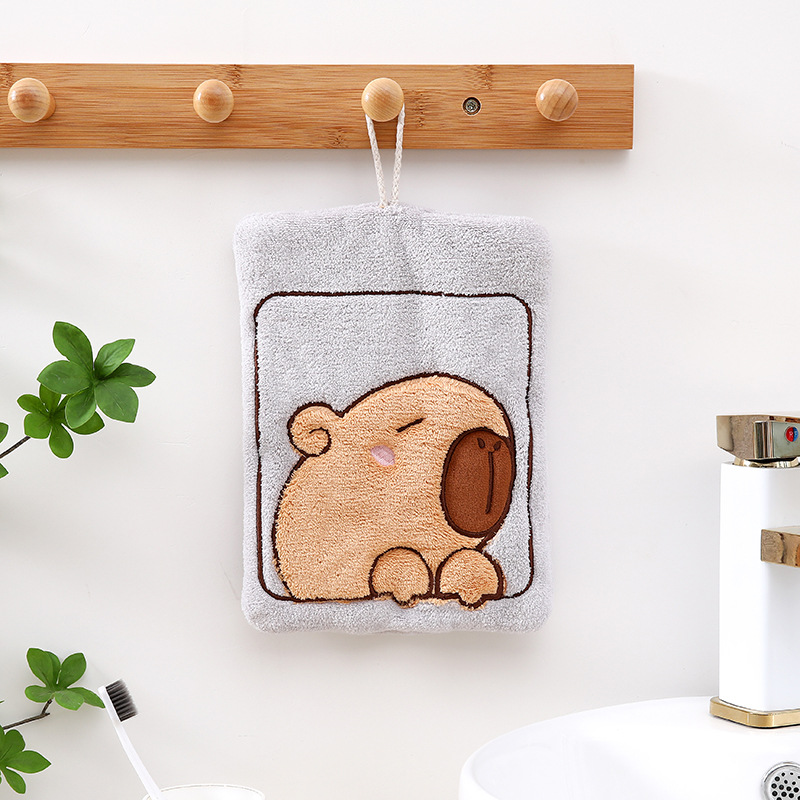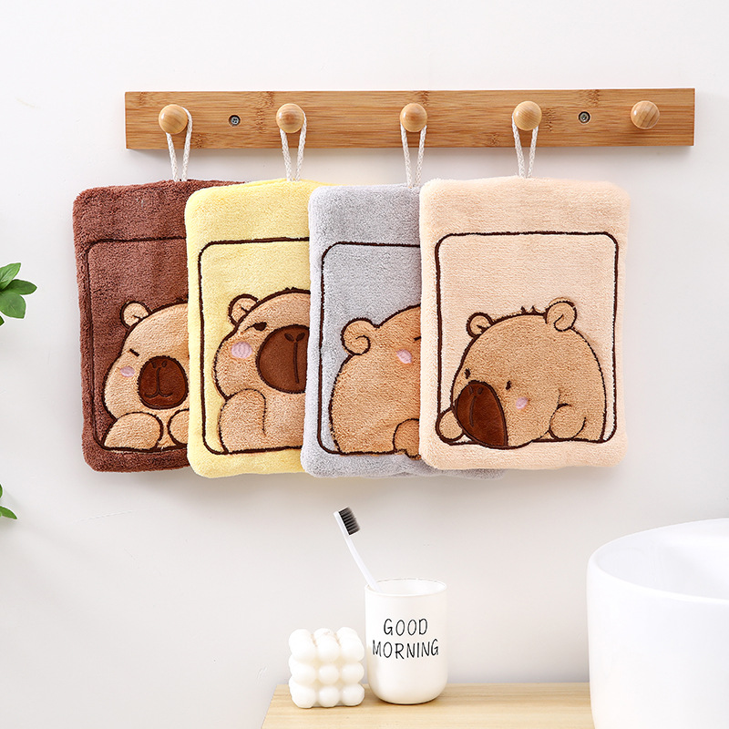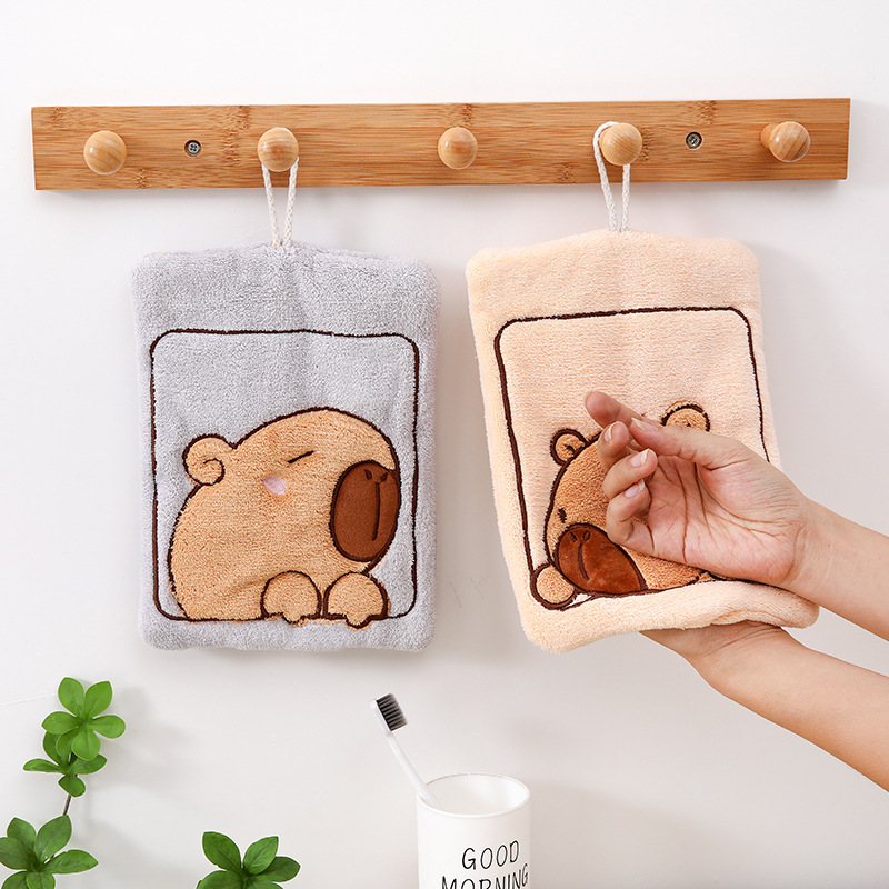 卡皮巴拉厨房擦手巾家用挂式珊瑚绒超强吸水不掉毛卫生间小毛巾