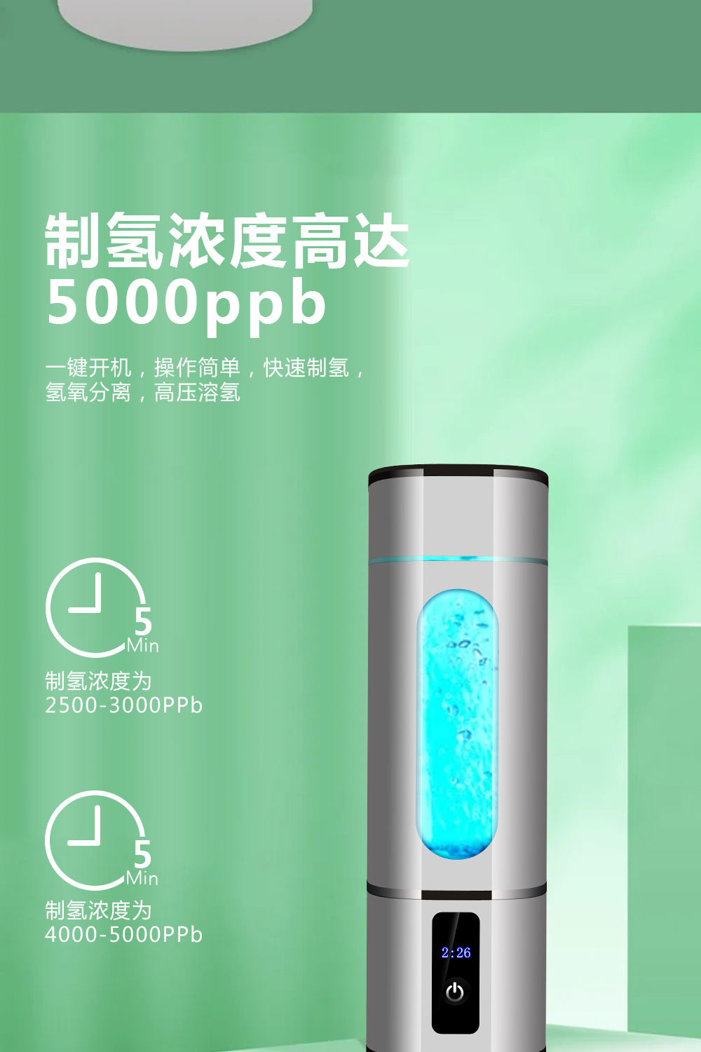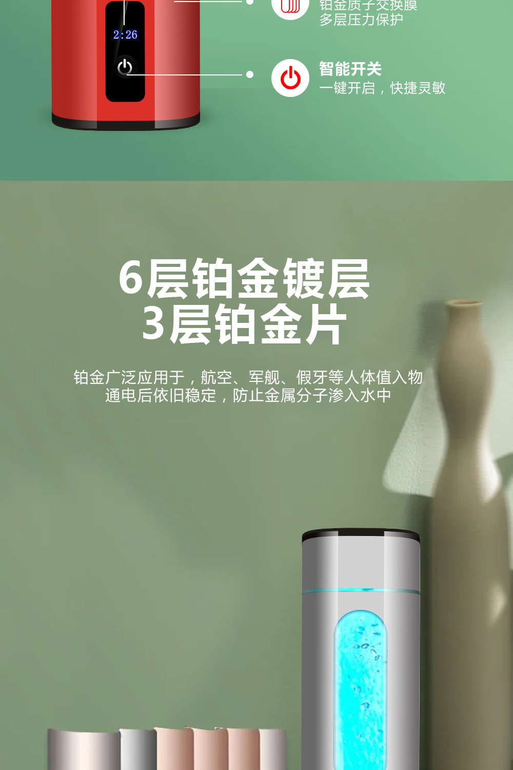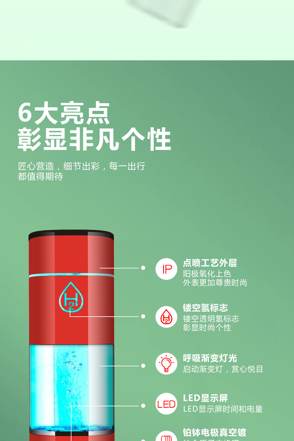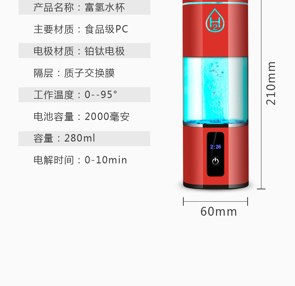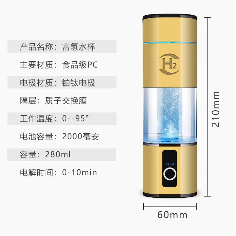富氢水杯高浓度电解水素水杯养生制氢水杯氢氧分离富氢杯礼品水杯