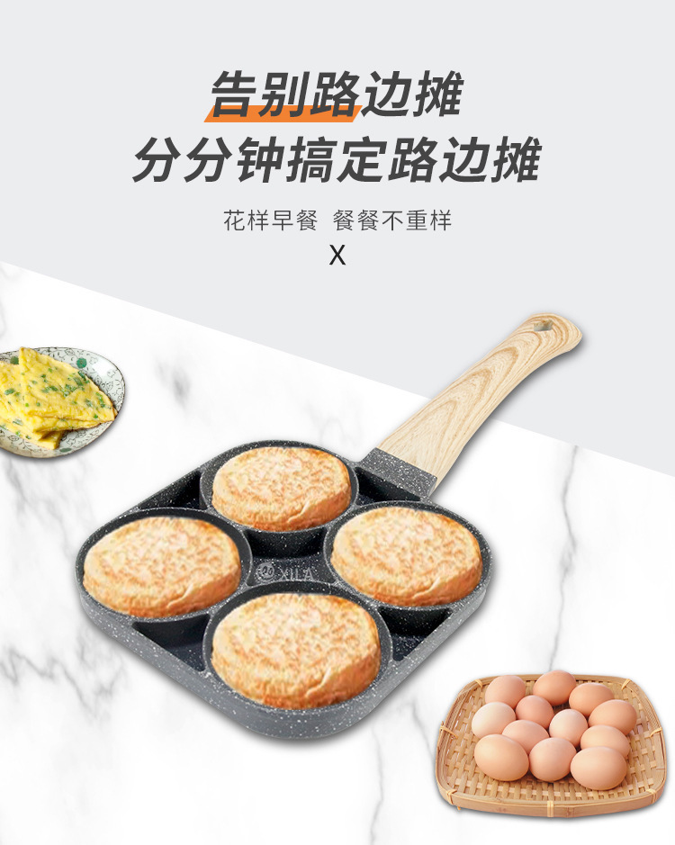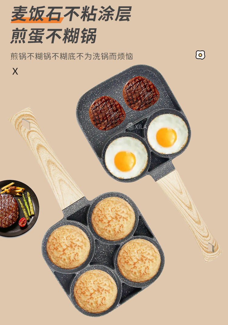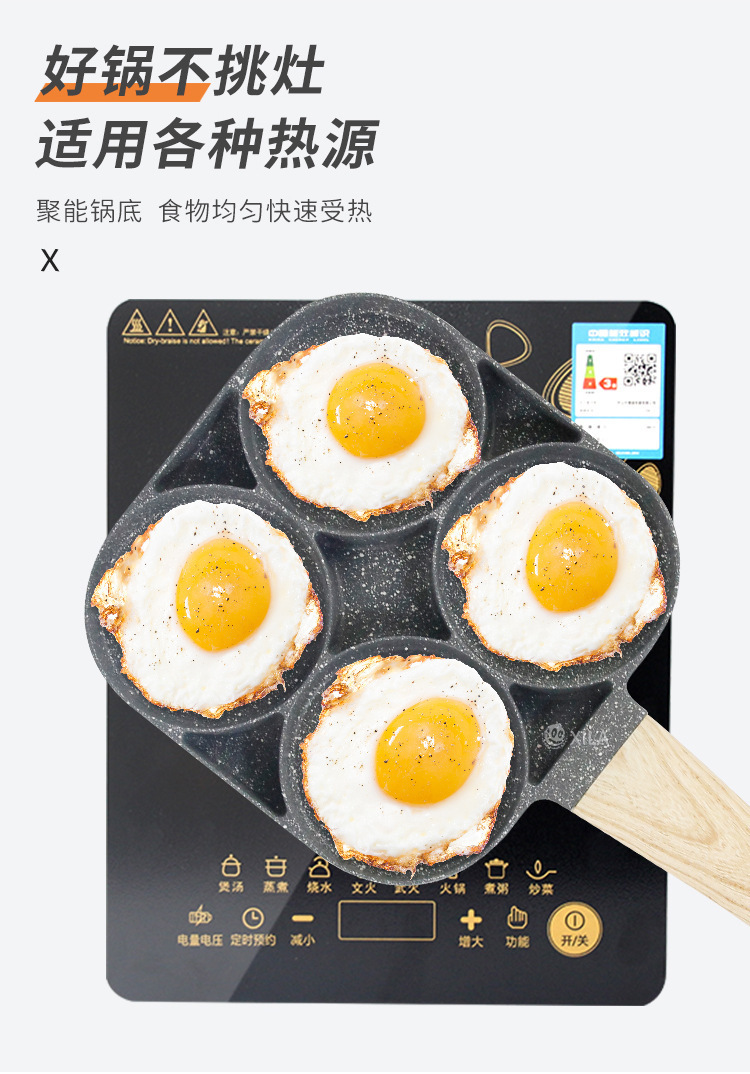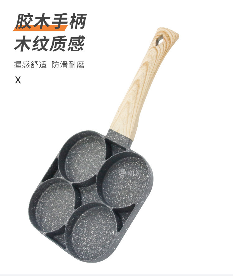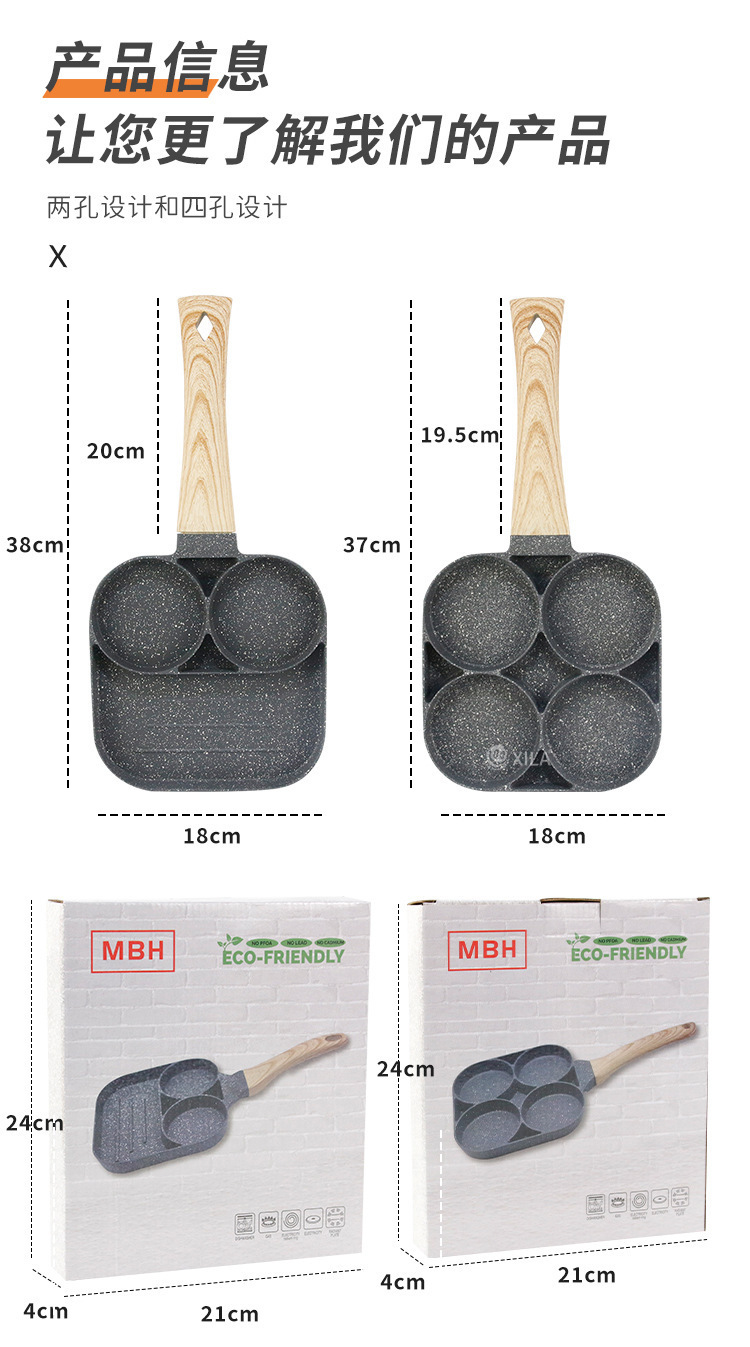 跨境麦饭石四孔煎蛋锅 平底不粘牛排锅 早餐鸡蛋通用煎锅批发代发