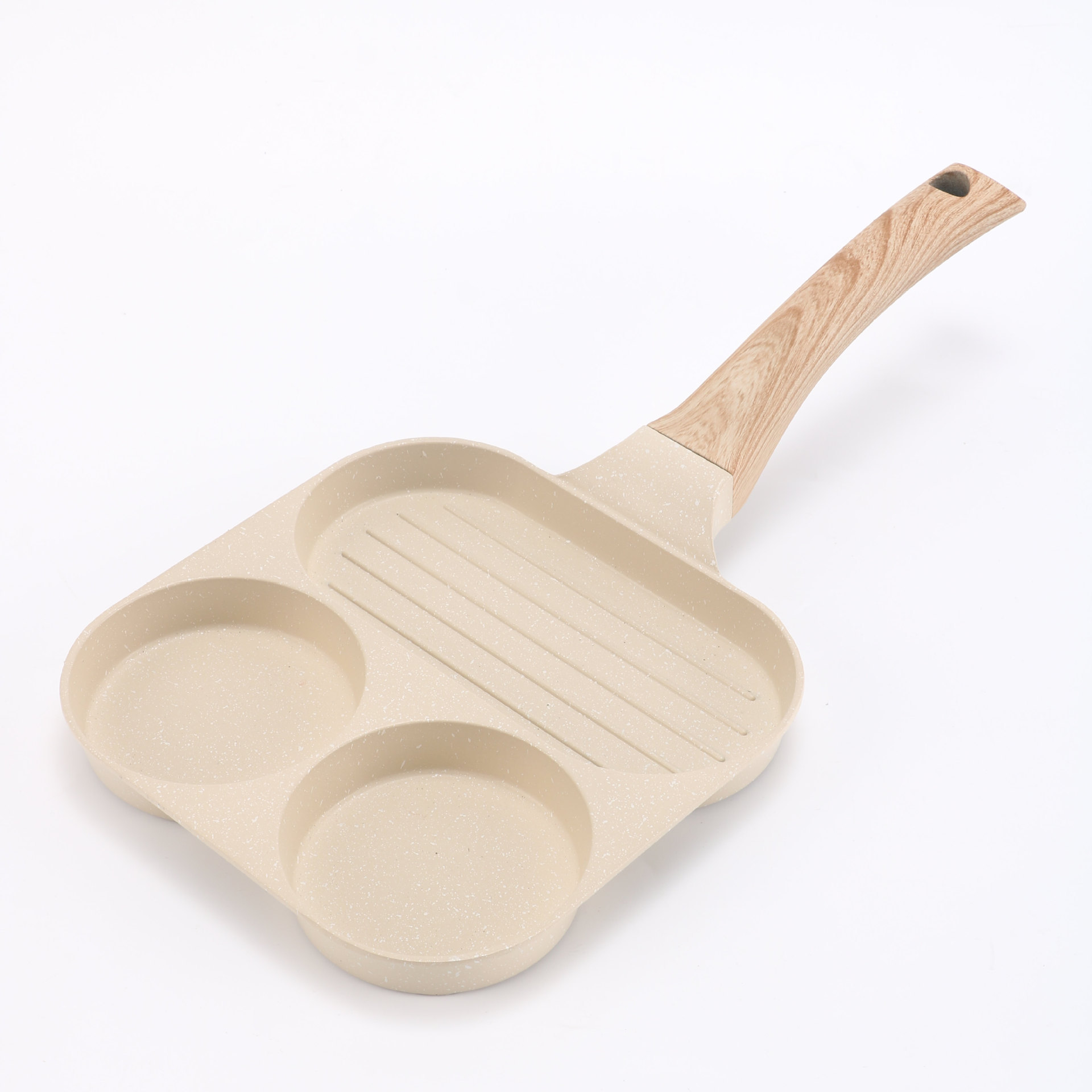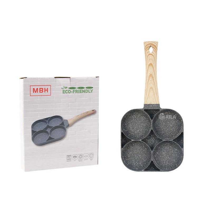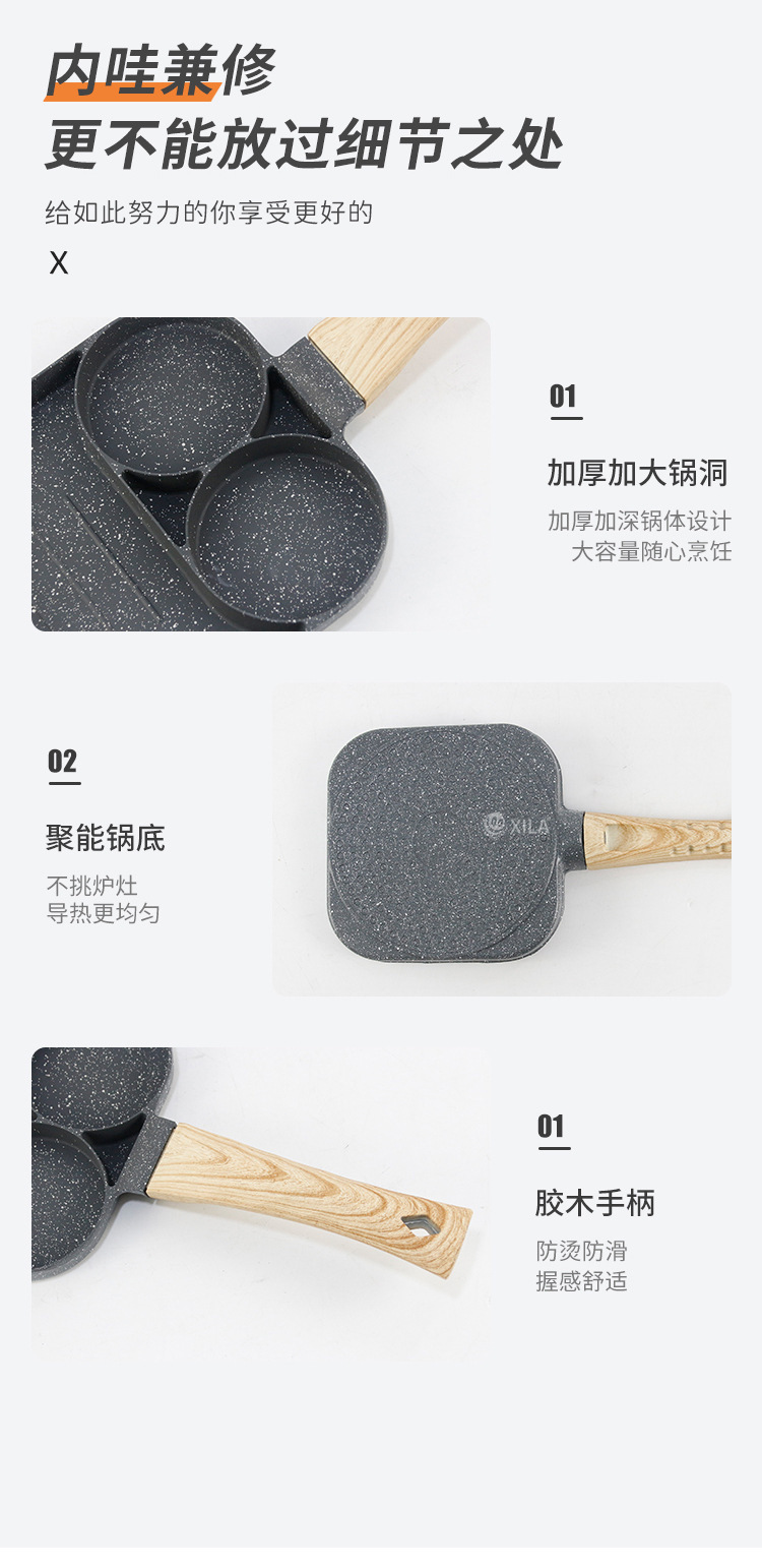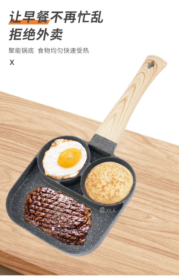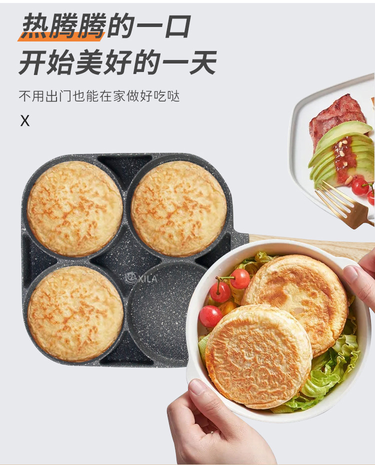 跨境麦饭石四孔煎蛋锅 平底不粘牛排锅 早餐鸡蛋通用煎锅批发代发
