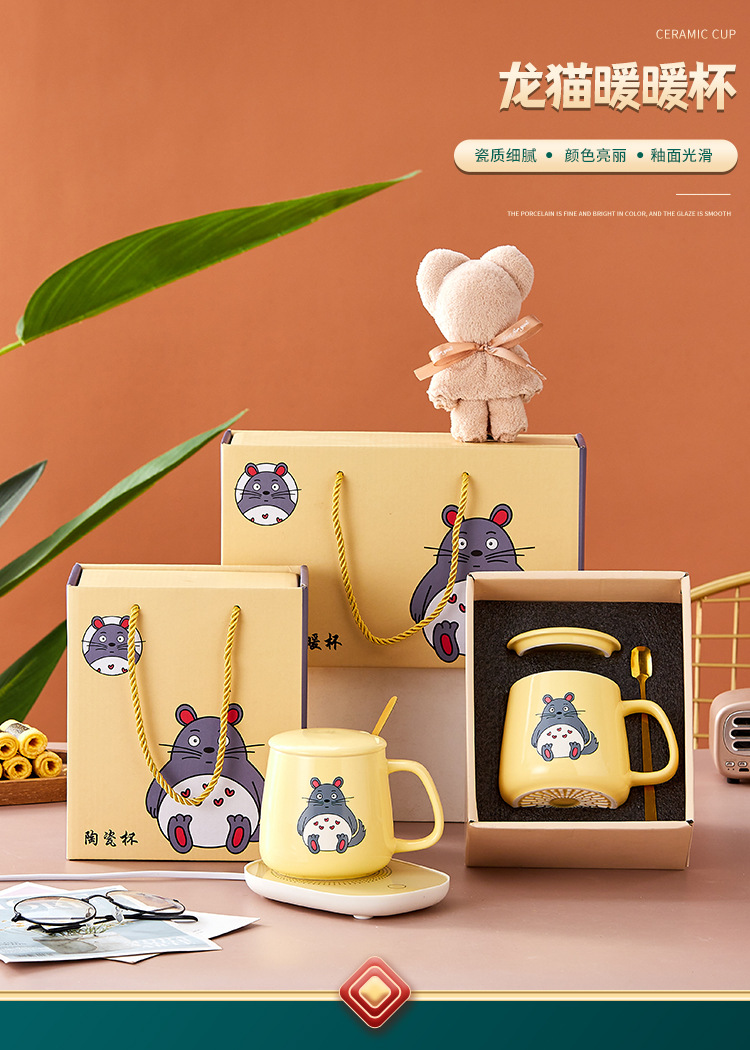 卡通55度恒温暖暖杯套装加热水杯陶瓷马克杯伴手礼小礼品杯子批发