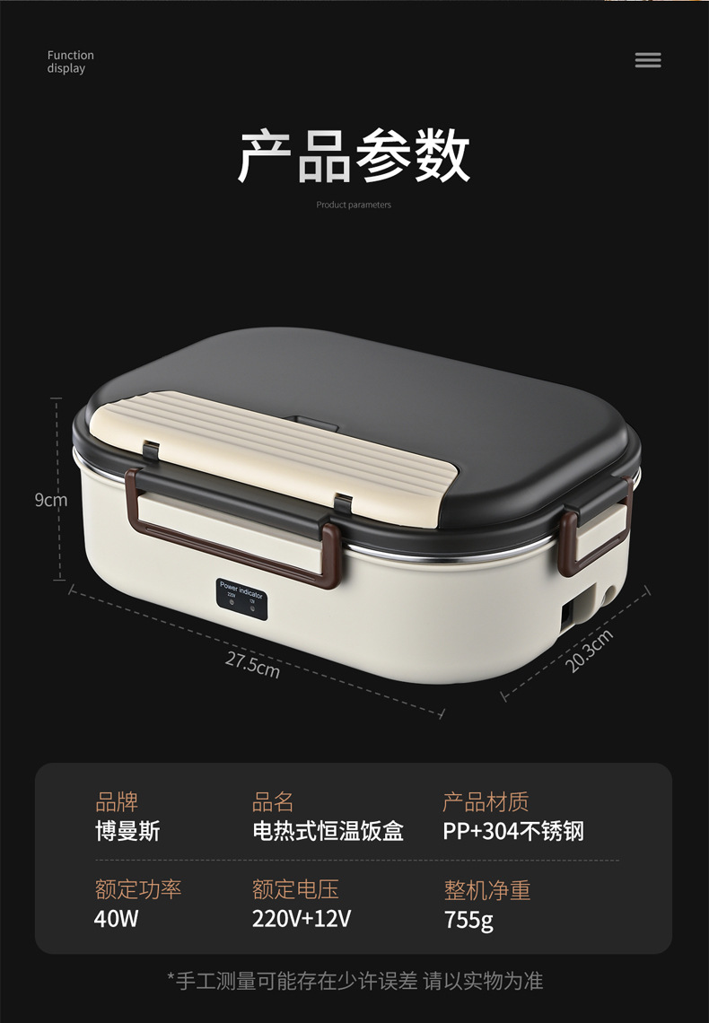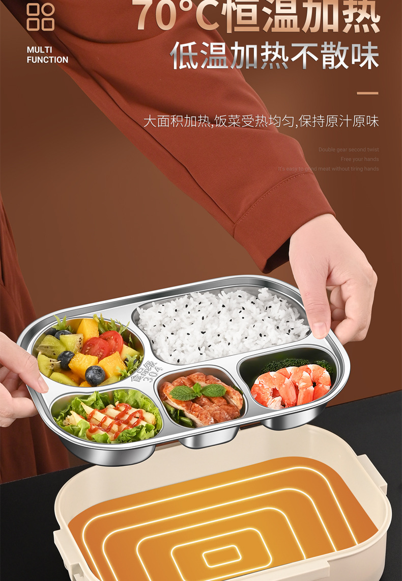 注意:此款产品的原理是插电让底部导热板加热最高到70℃,恒温保持食物温度,并不能代替加热煮熟冷藏食物,经测试,在广东地区冬天需要0.6~1小时左右,广东以北地区则需要1个多小时以上,越偏北地区需要的时间越长,具体视实际地区为准!