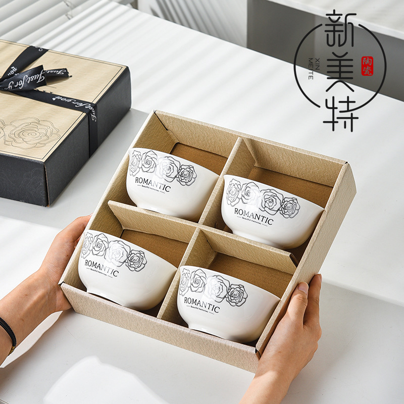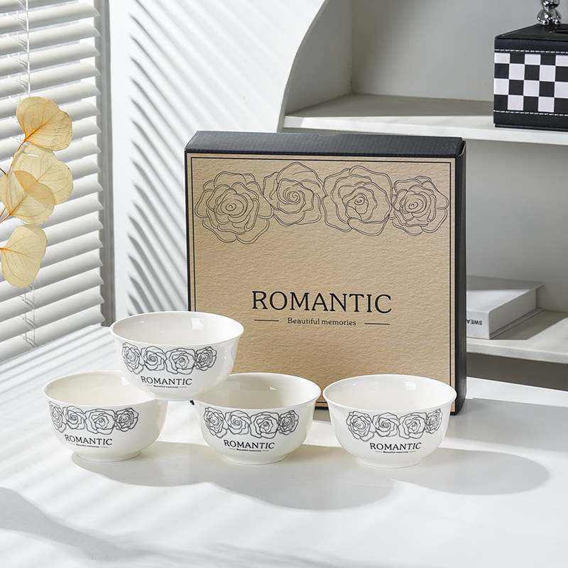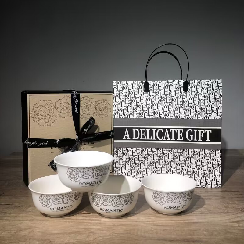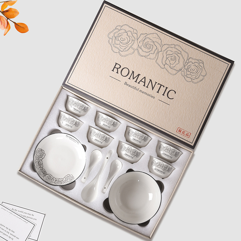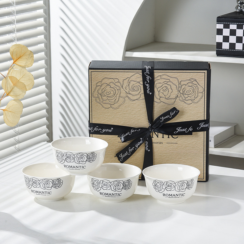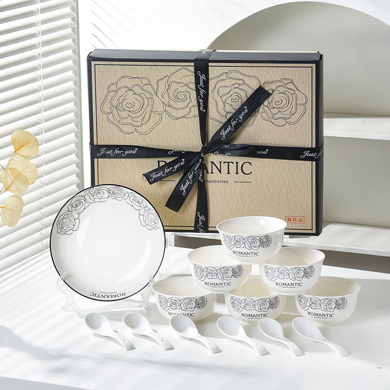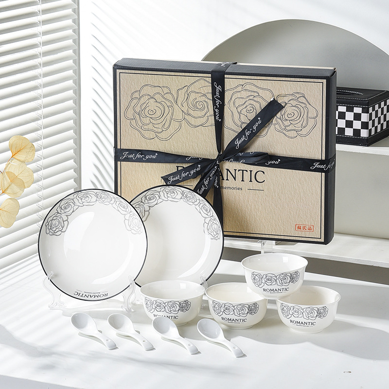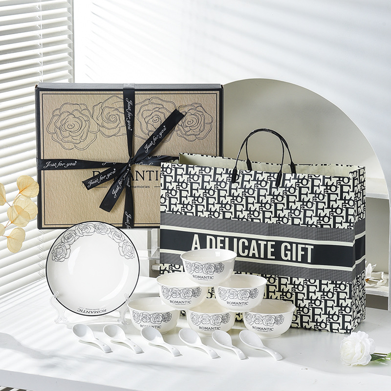 赫本风玫瑰陶瓷餐具碗筷套装伴手礼开业简约礼品家用批发套碗礼盒