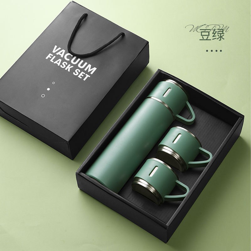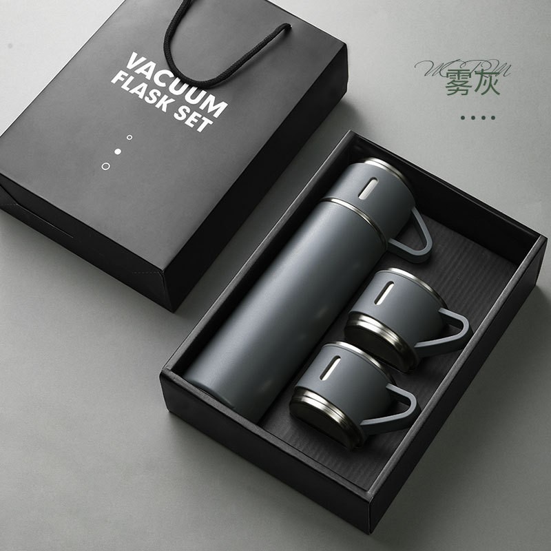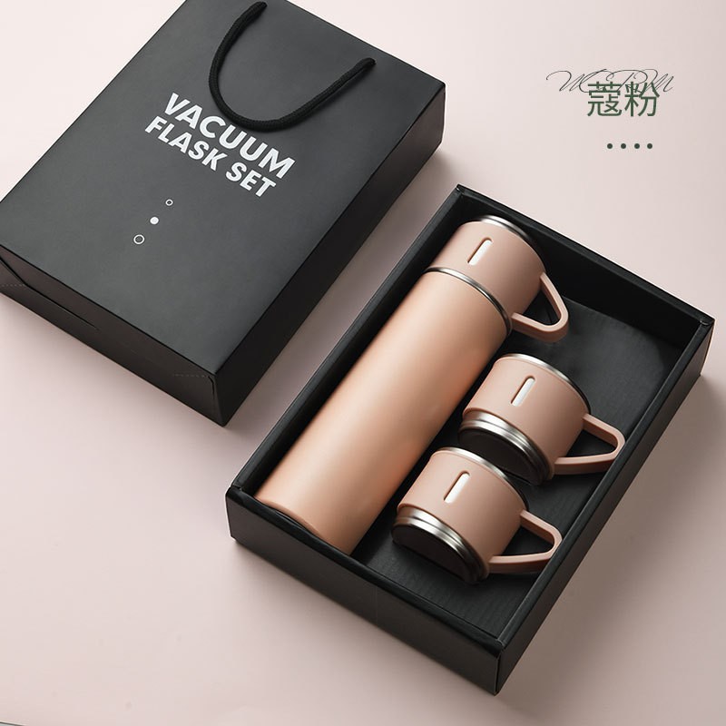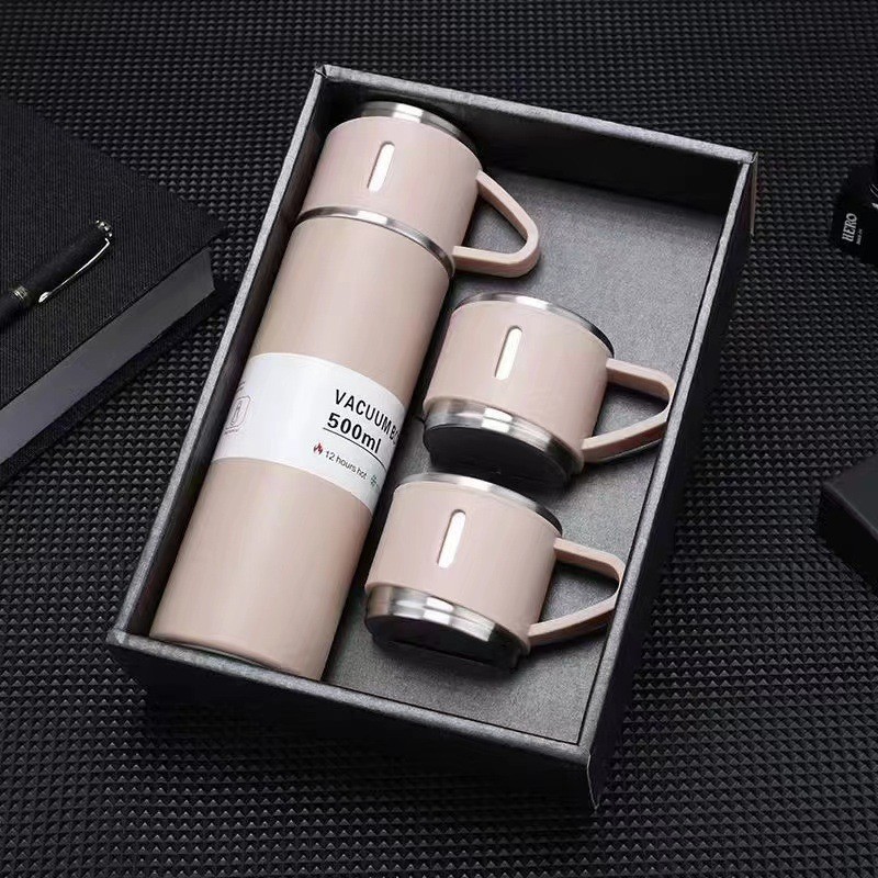 跨境304一杯三盖双用不锈钢真空保温杯水杯全钢子弹头广告礼盒杯