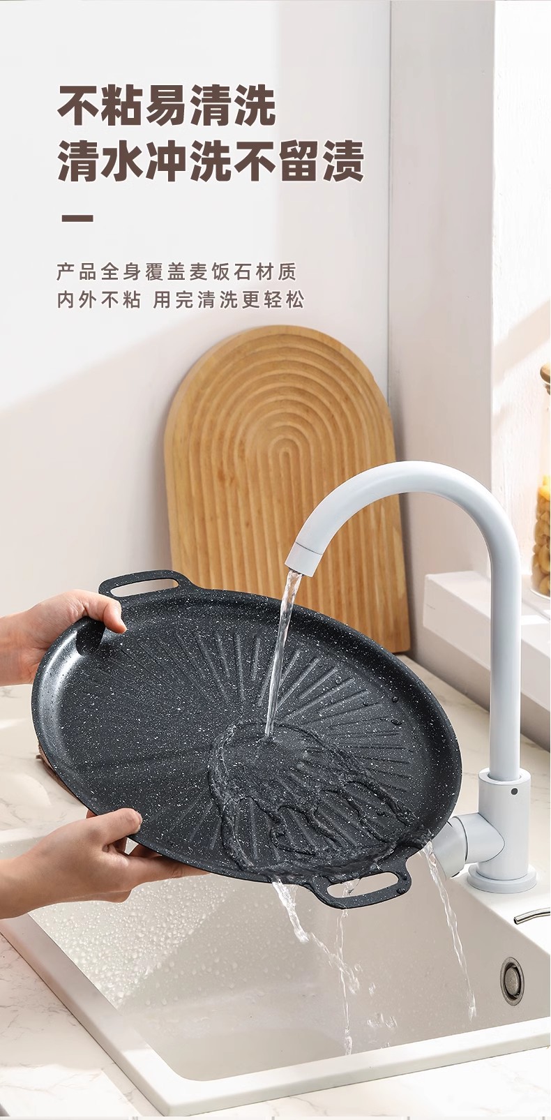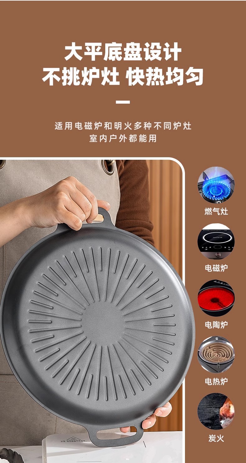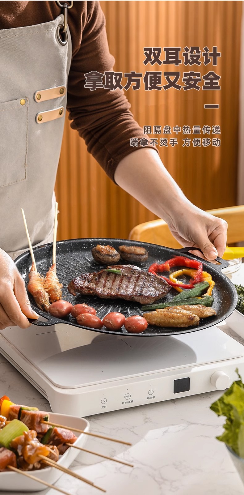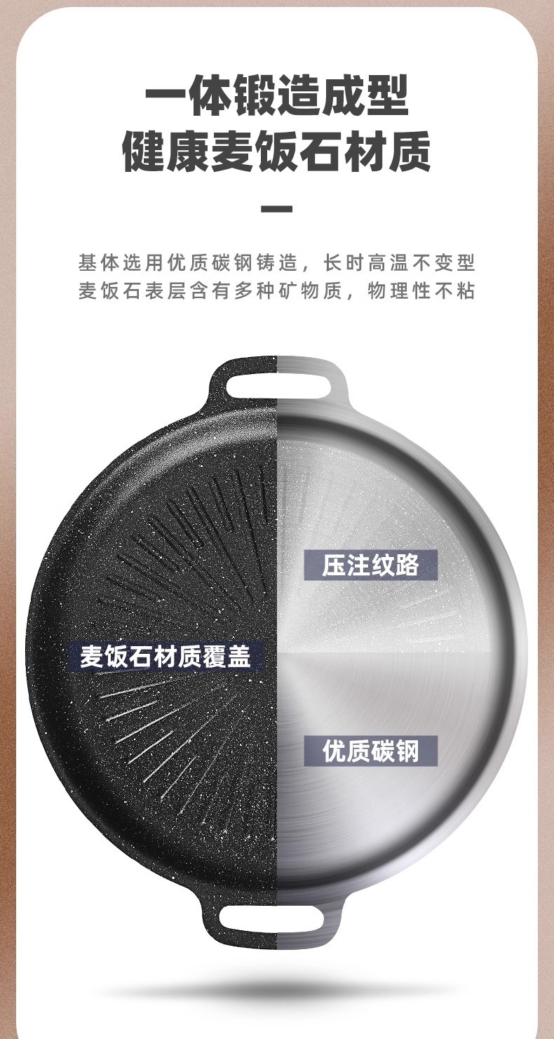 麦饭石不沾烤盘太阳纹烧烤盘韩式铁板烧户外便携烤肉盘电磁炉煎盘
