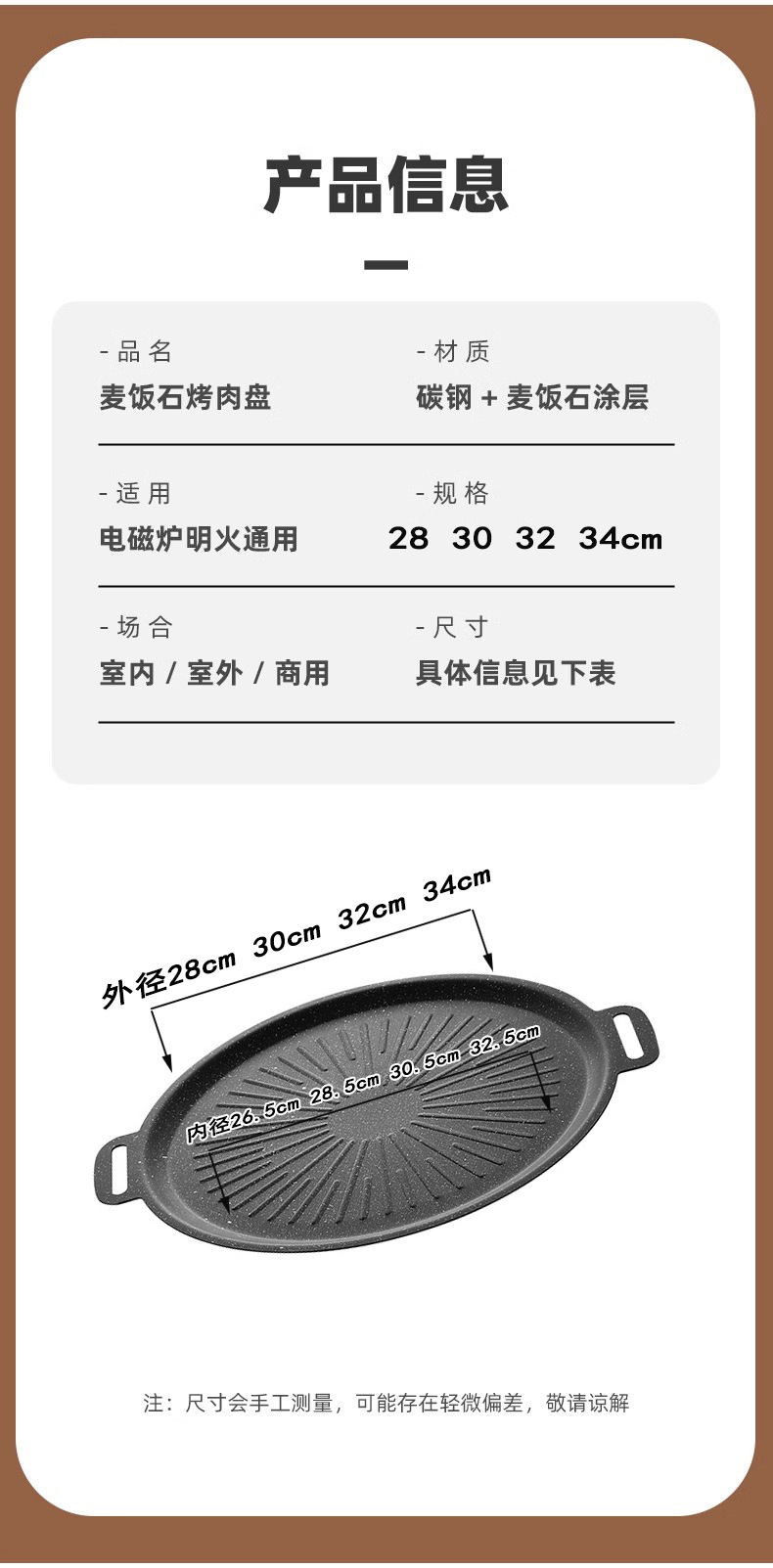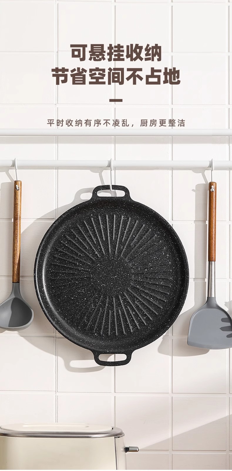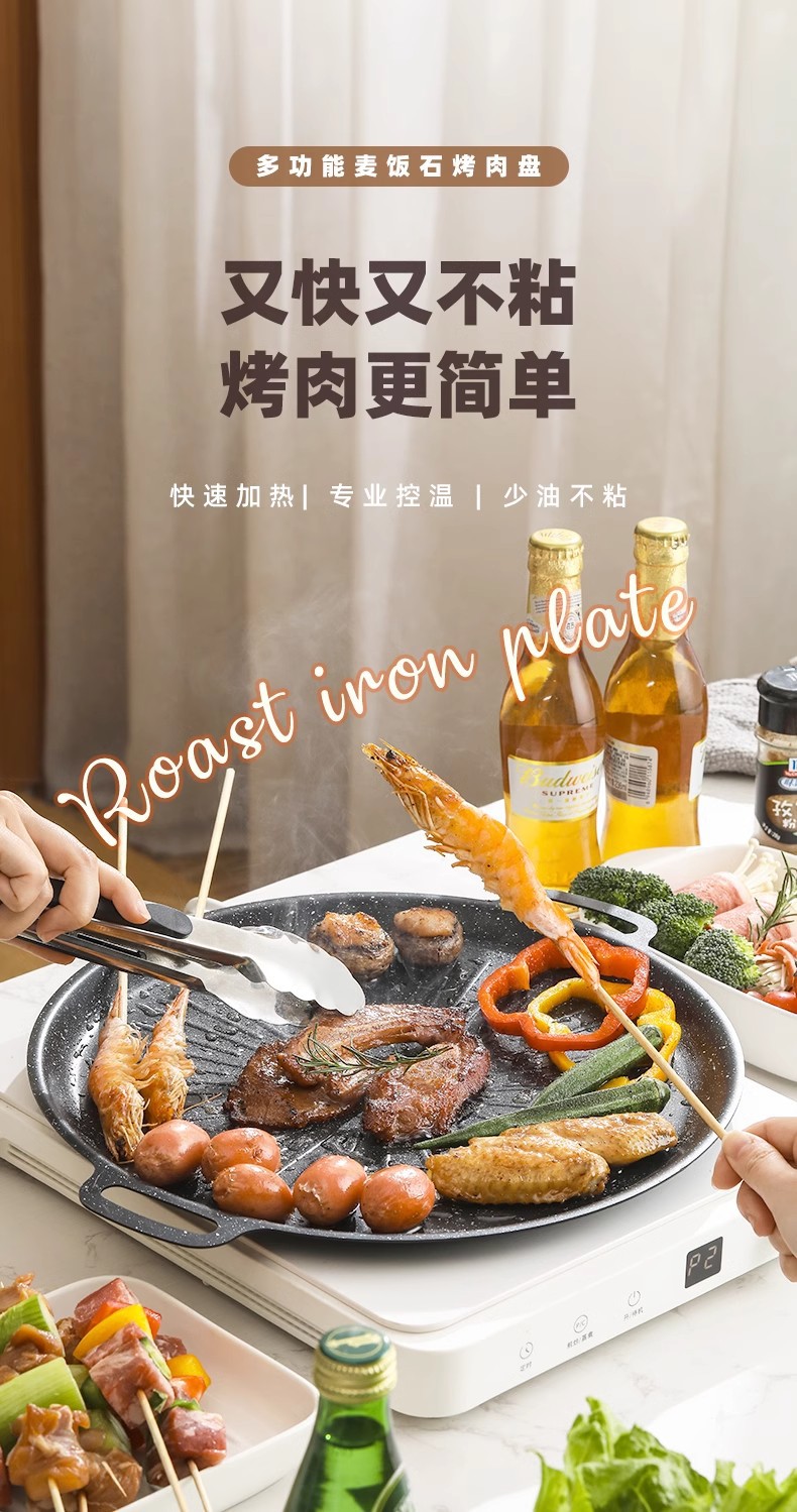 麦饭石不沾烤盘太阳纹烧烤盘韩式铁板烧户外便携烤肉盘电磁炉煎盘