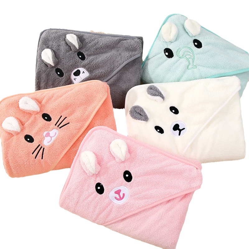 珊瑚绒抱被婴幼儿浴巾刺绣可爱柔软吸水速干可加LOGO来图来样定做