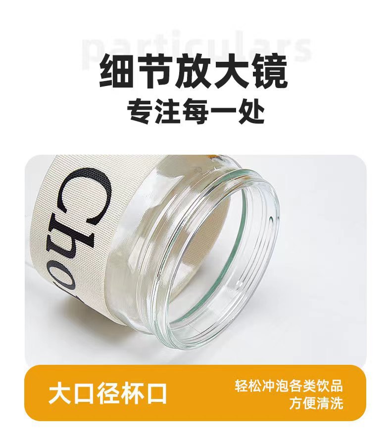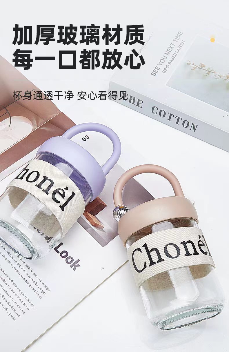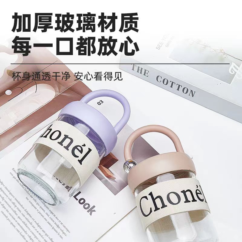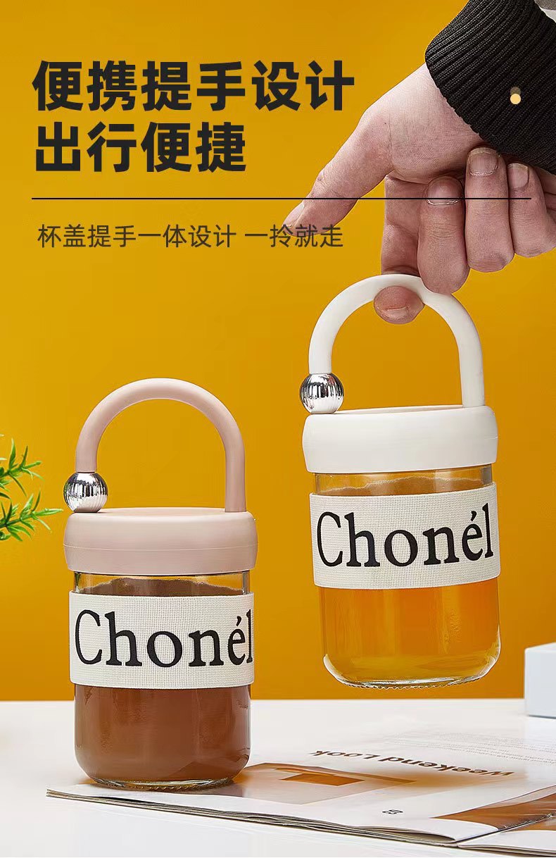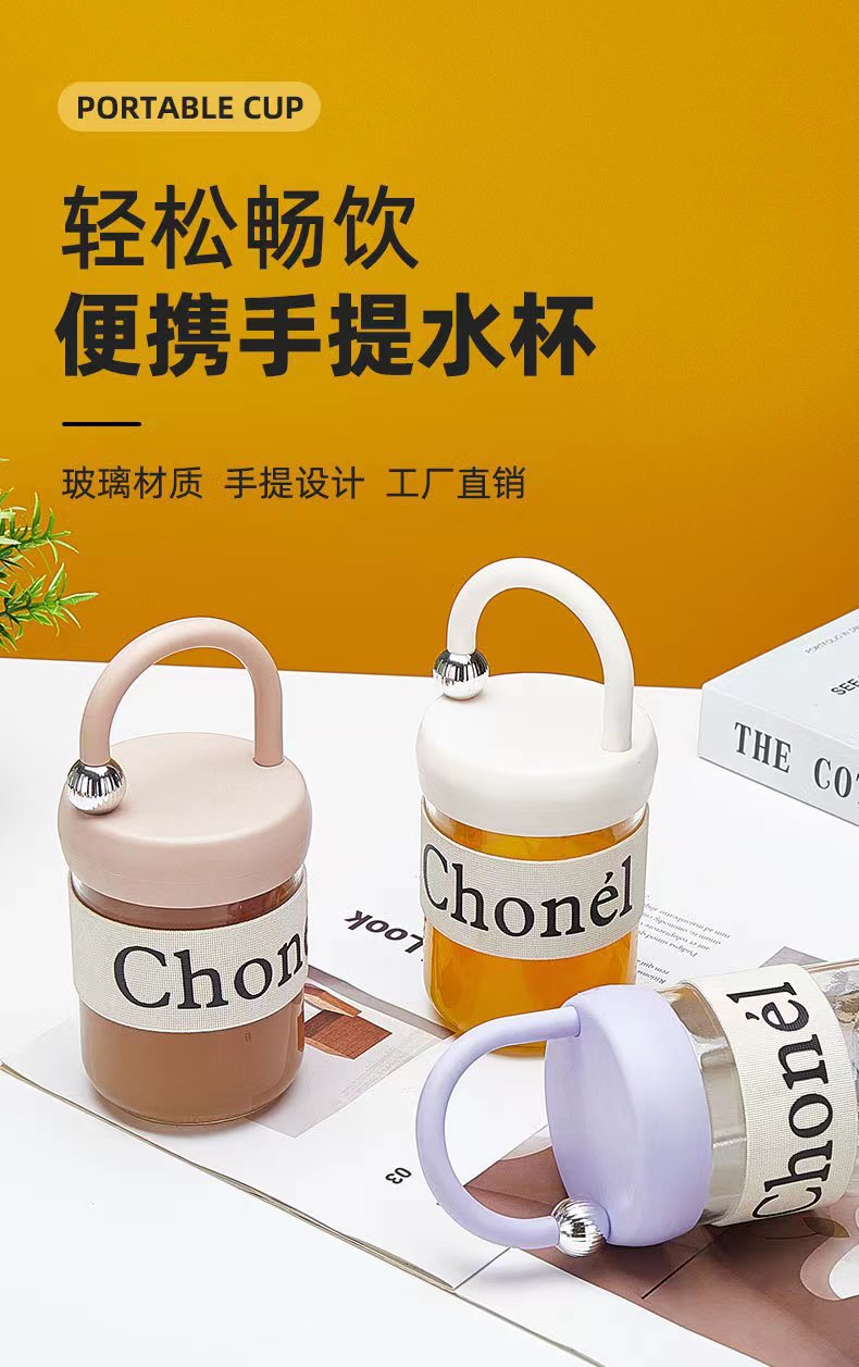 小香风便携提手玻璃杯高颜值水杯隔热网红冷萃咖啡杯办公室泡茶杯