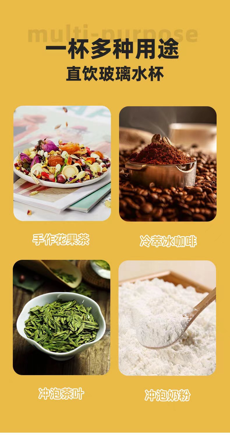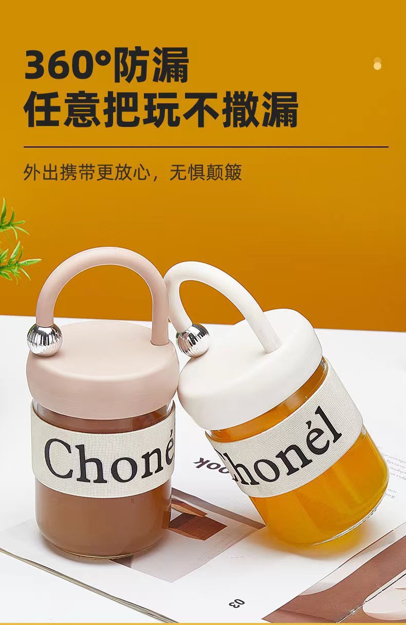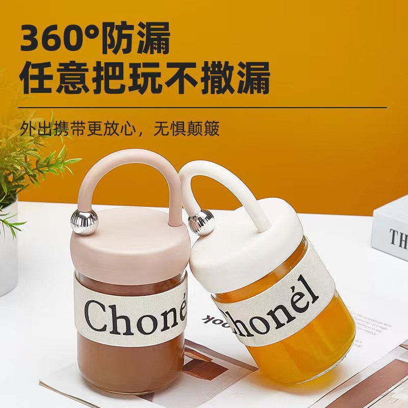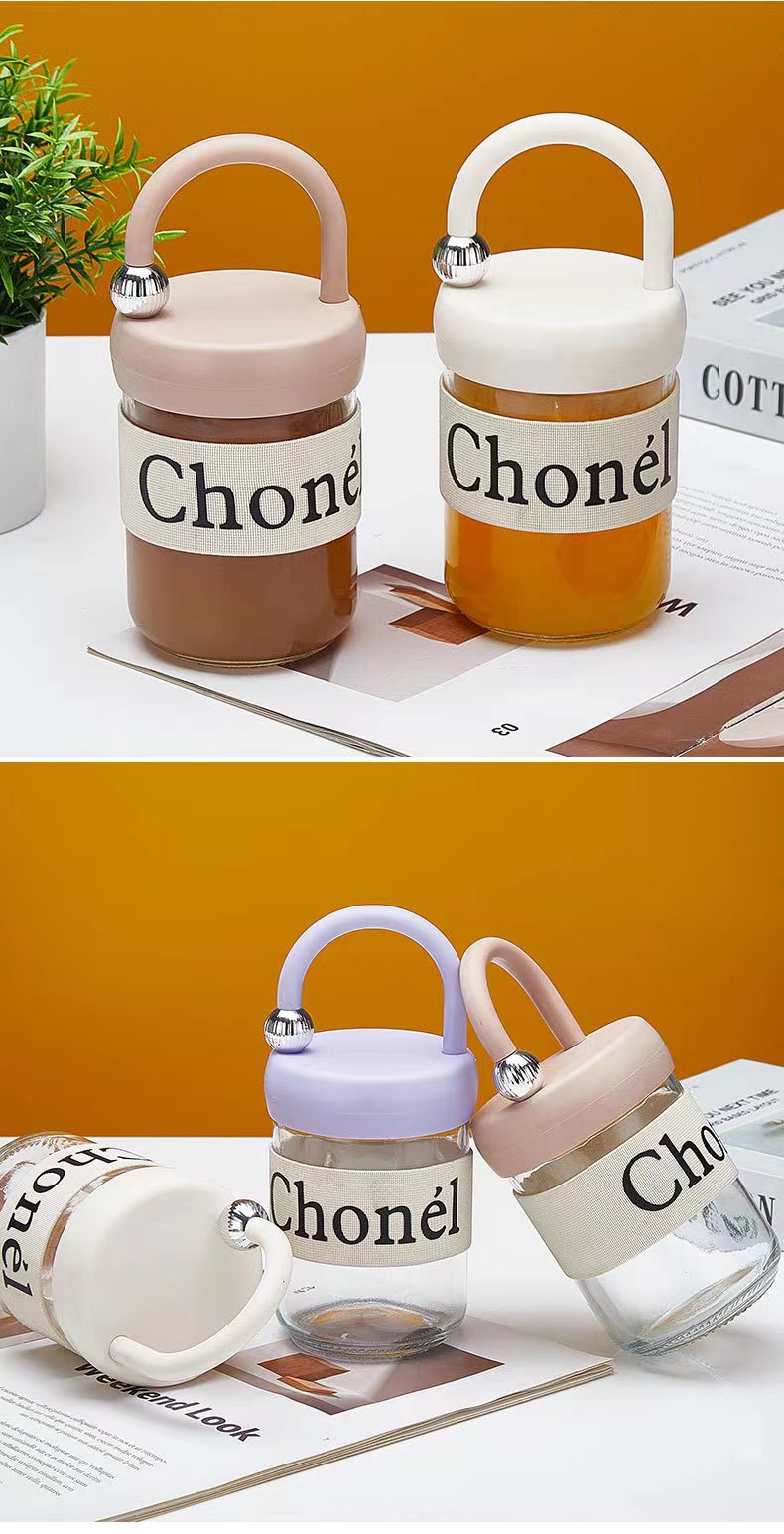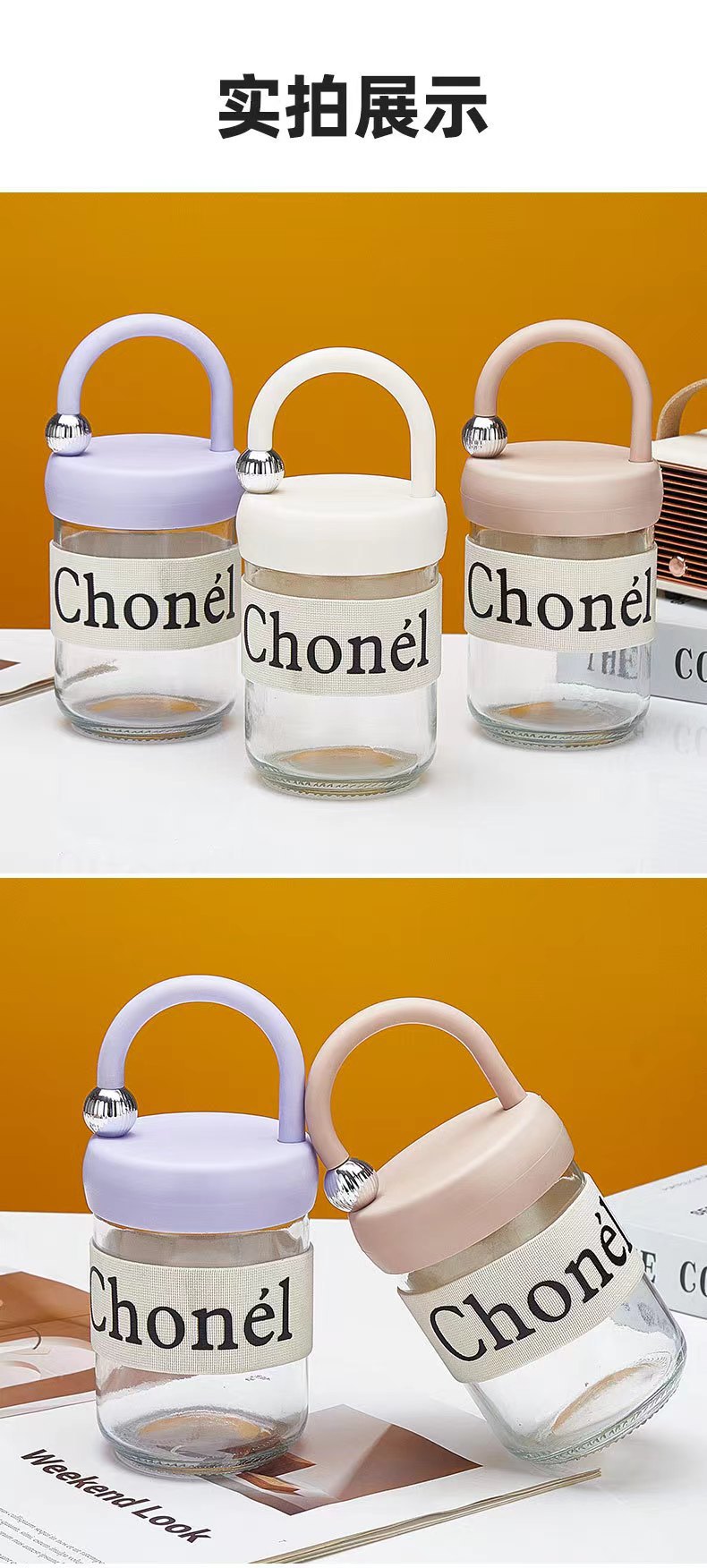 小香风便携提手玻璃杯高颜值水杯隔热网红冷萃咖啡杯办公室泡茶杯