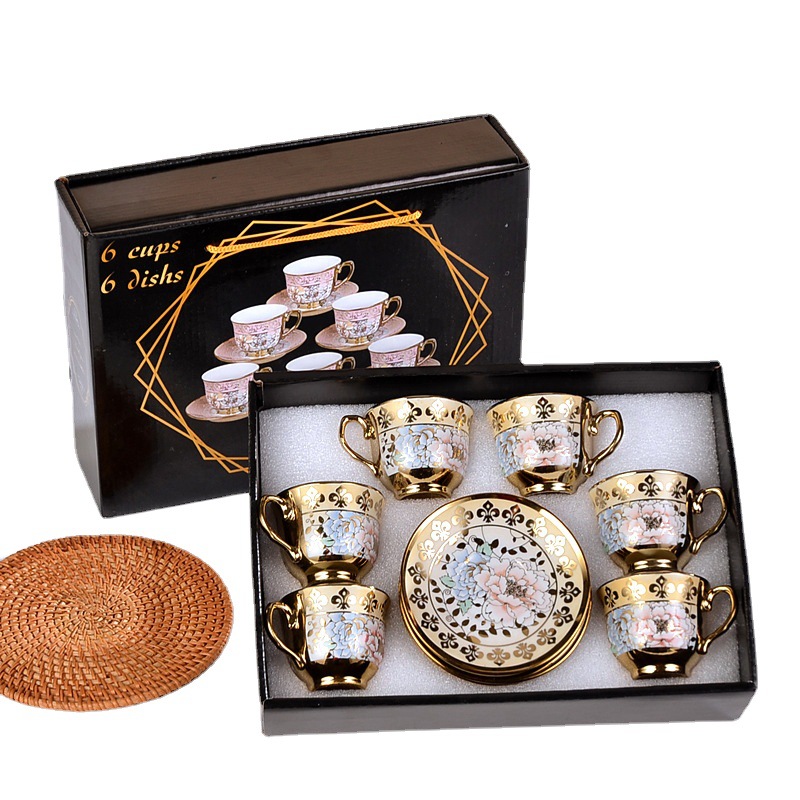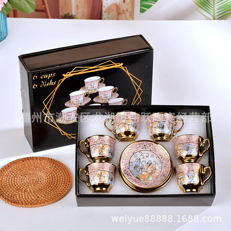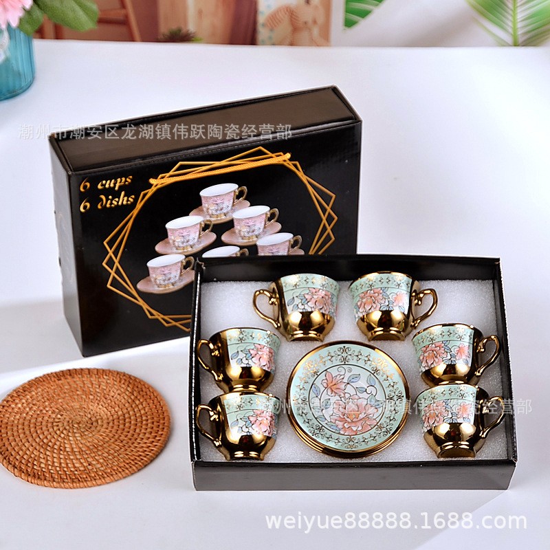 欧式陶瓷杯电镀咖啡杯碟套装跨境马克杯会销创意礼品伴手礼印LOGO