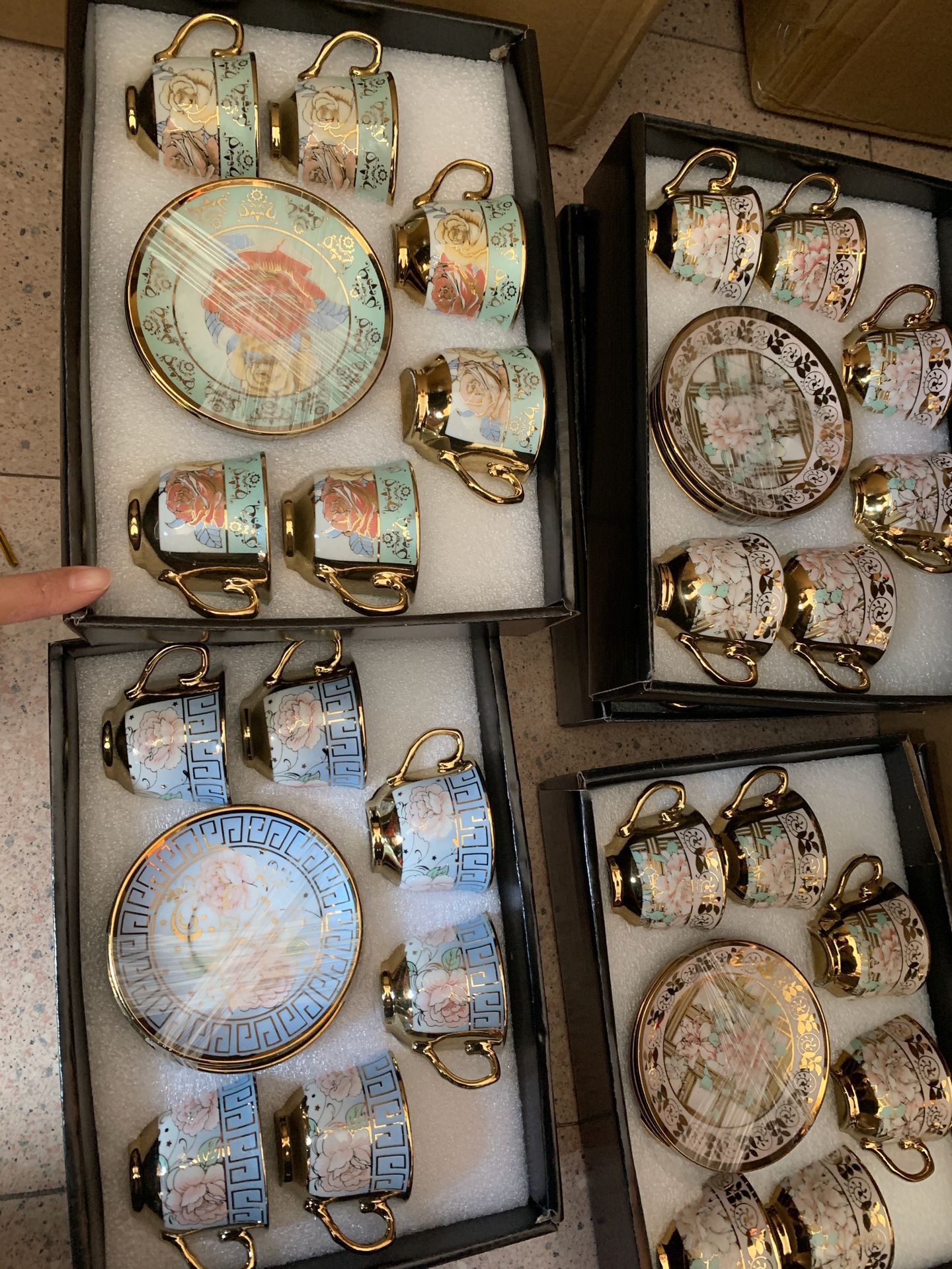 欧式电镀陶瓷茶具套装镀金咖啡杯碟会销礼品陶瓷杯壶套装LOGO