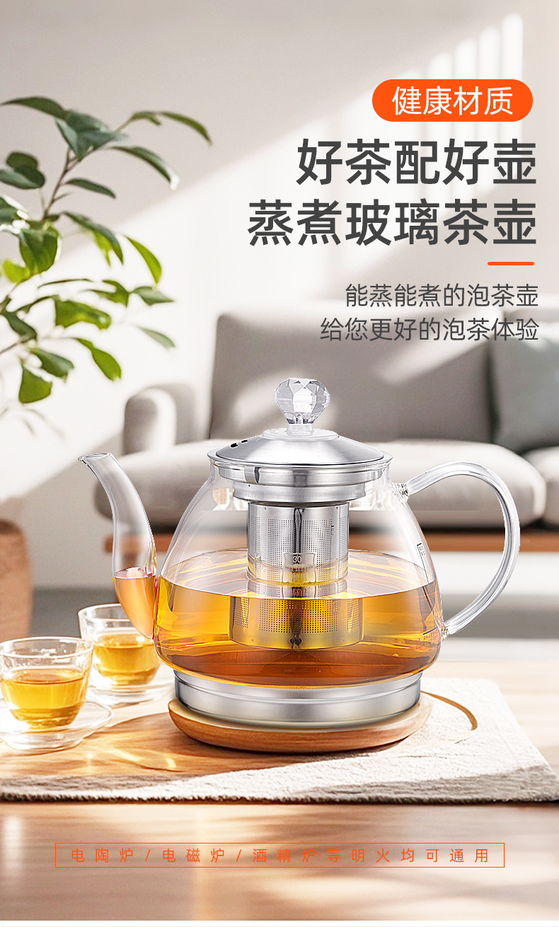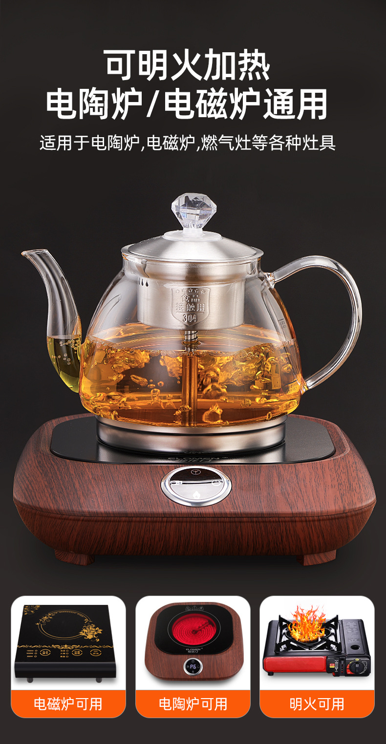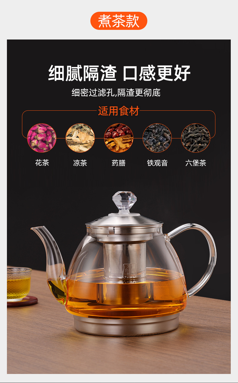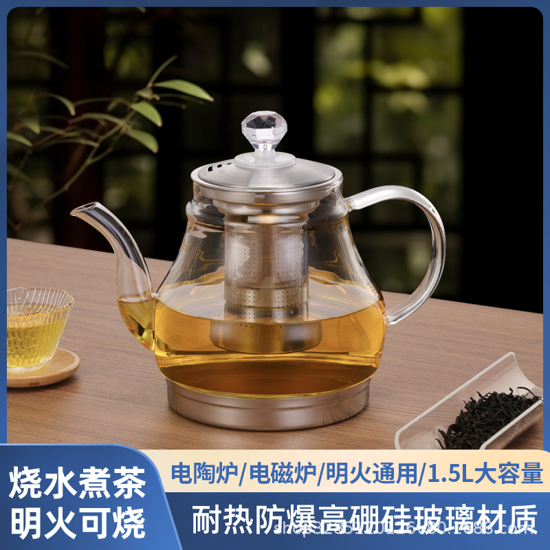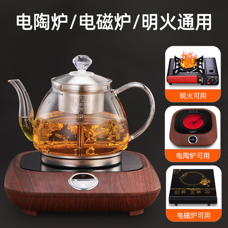 新款电磁炉电陶炉专用加厚玻璃茶壶煮茶蒸茶器耐高温平底泡茶单壶
